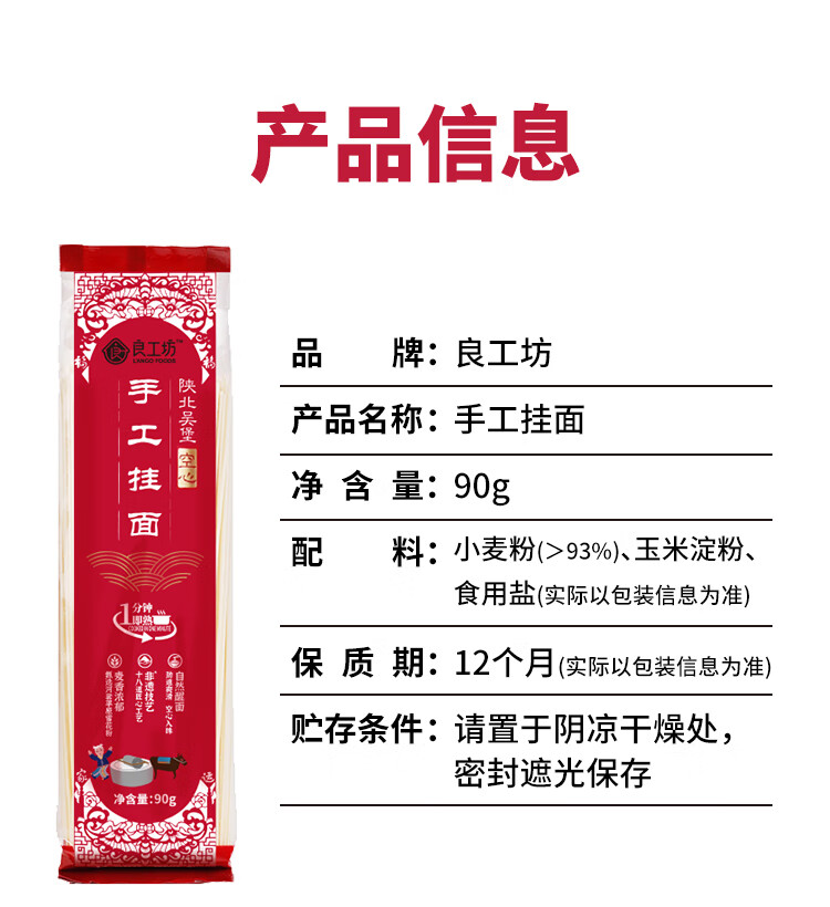 良工坊手工挂面90g面条拉面速食面空心面手工面无添加挂面独立小包装