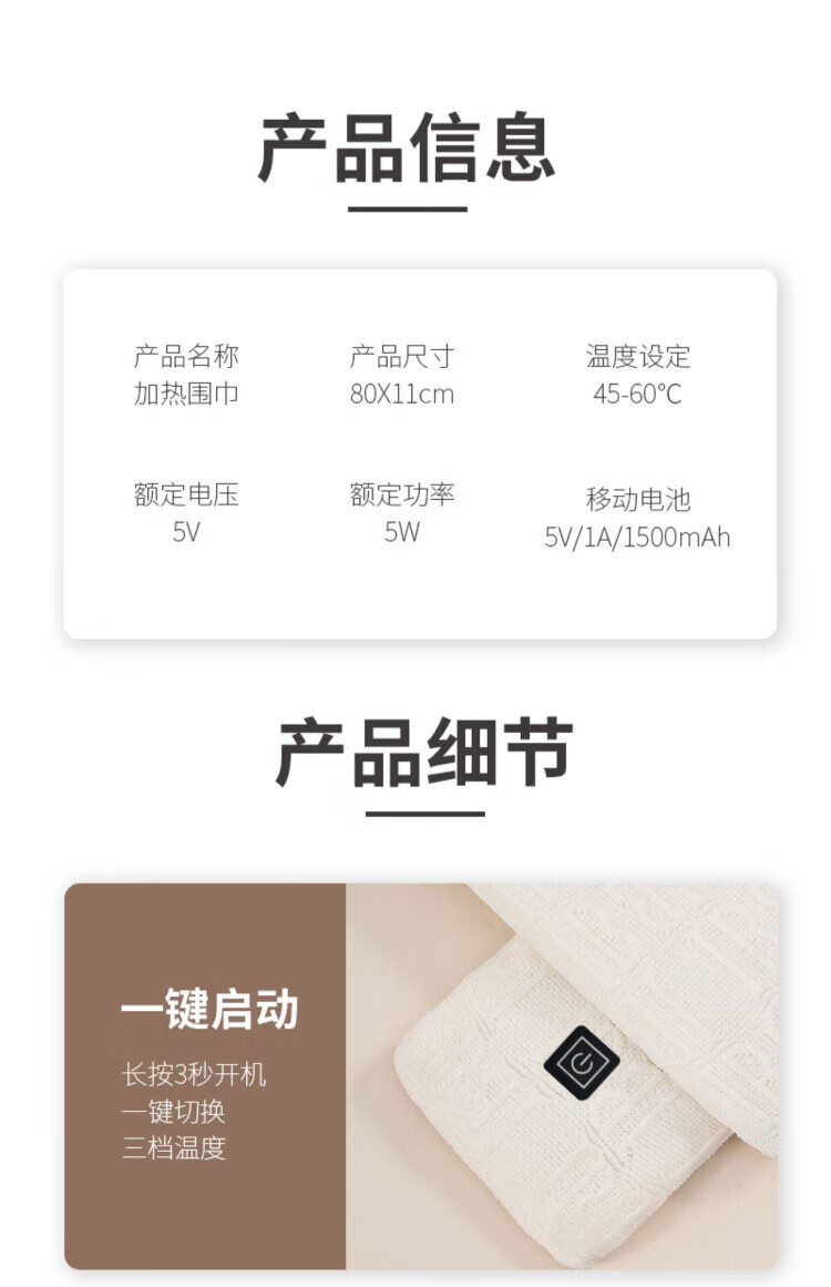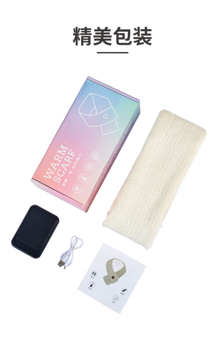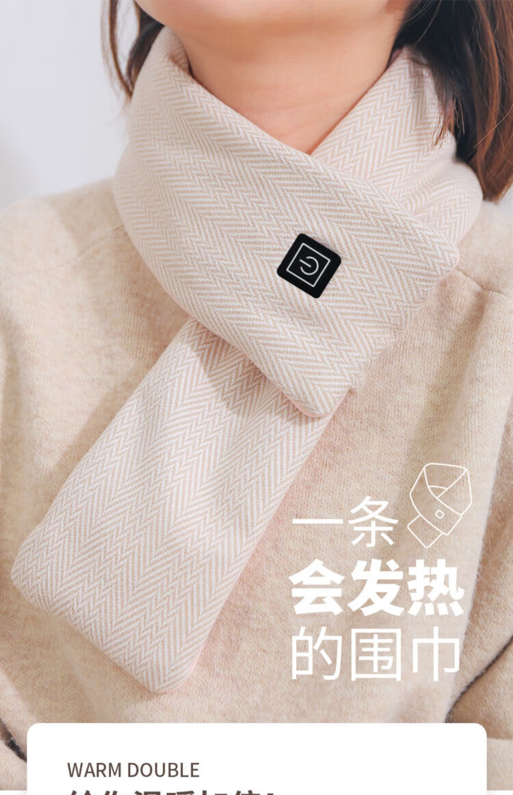 WCZ德国石墨烯加热围脖发热围巾女冬季2025新款护颈男款围脖女生送礼 发热围巾【米色】礼盒装1500毫安