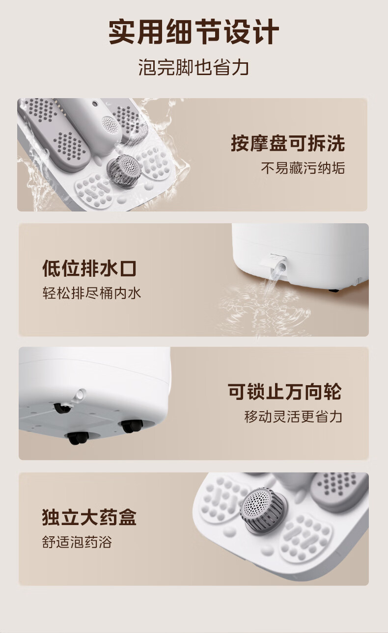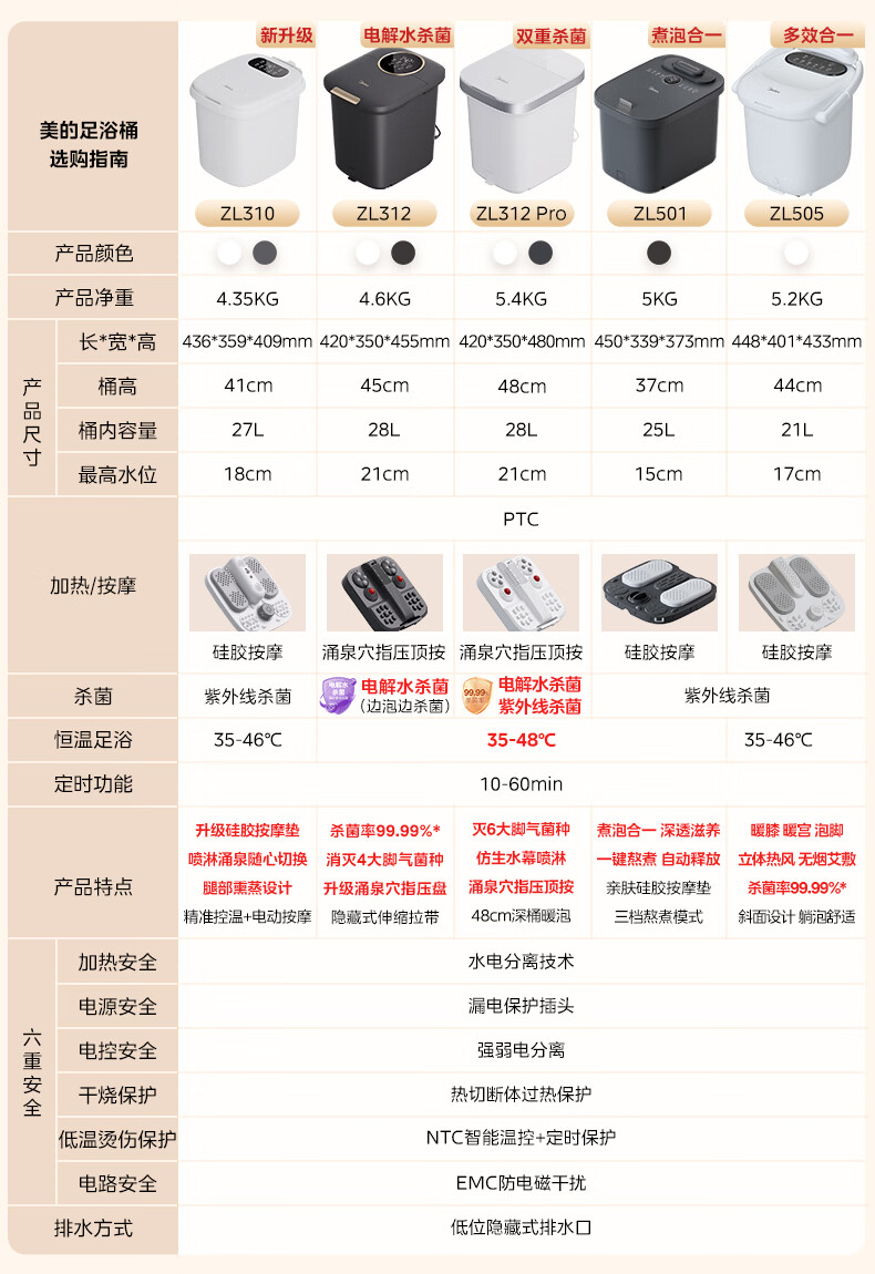 美的(Midea)泡脚桶杀菌足浴盆加热暖脚自动按摩保暖洗脚盆熏蒸暖泡喷淋新年礼物生日送男女友长辈 ZL310温泉桶