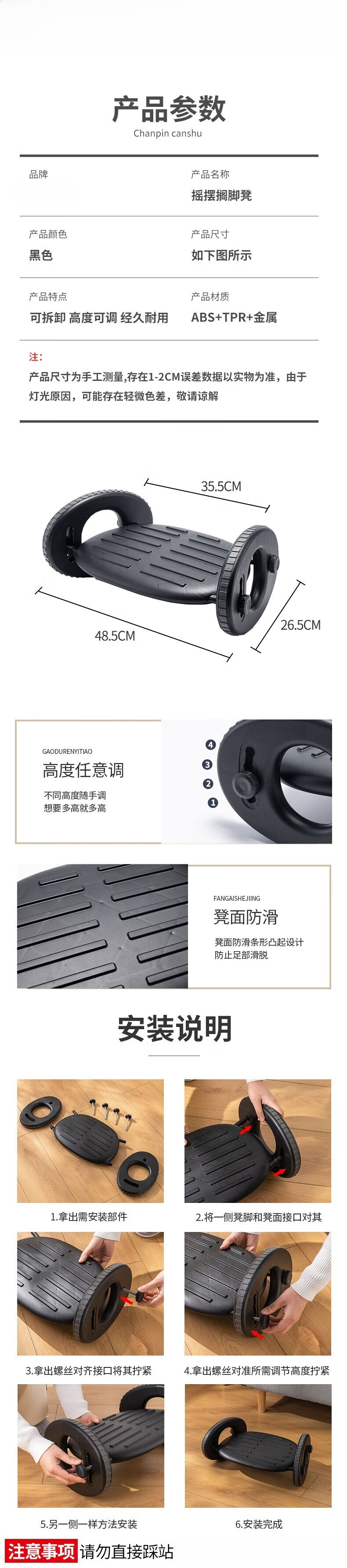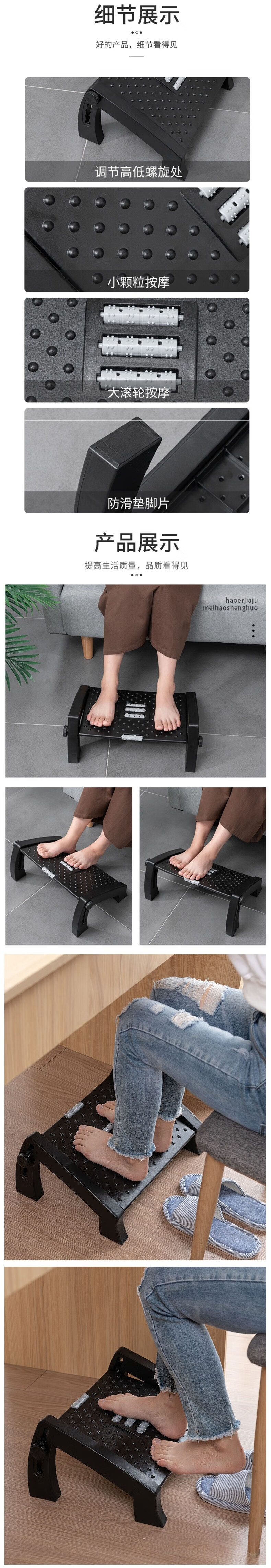 办公室脚凳新款脚踏板防翘二郎腿垫脚踩脚踏放脚踩脚蹬搁 可摇款黑色按摩滚轮丨加厚防滑丨