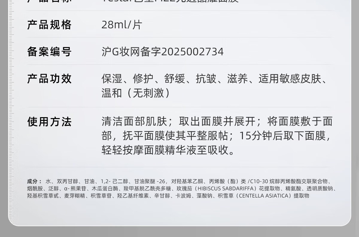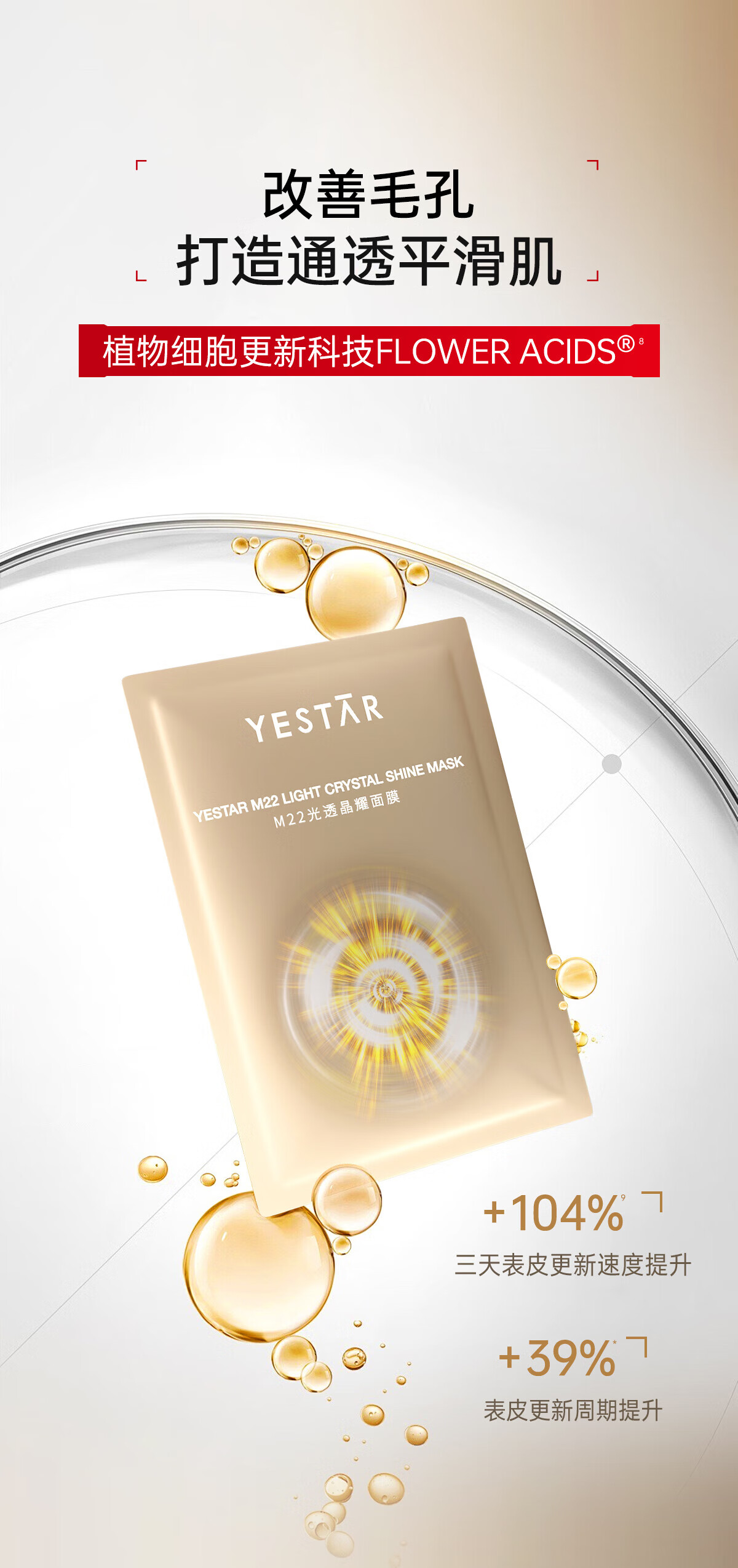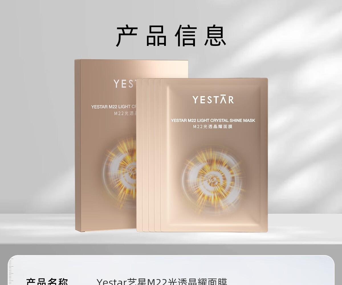 YestarM22光透晶耀面膜 滋养修护舒缓 补水保湿敏感肌可用 5片/盒 2盒+同款1片+水光7片