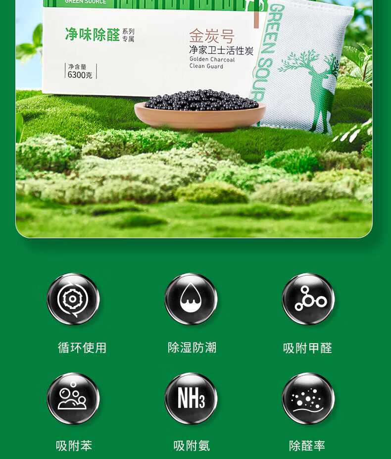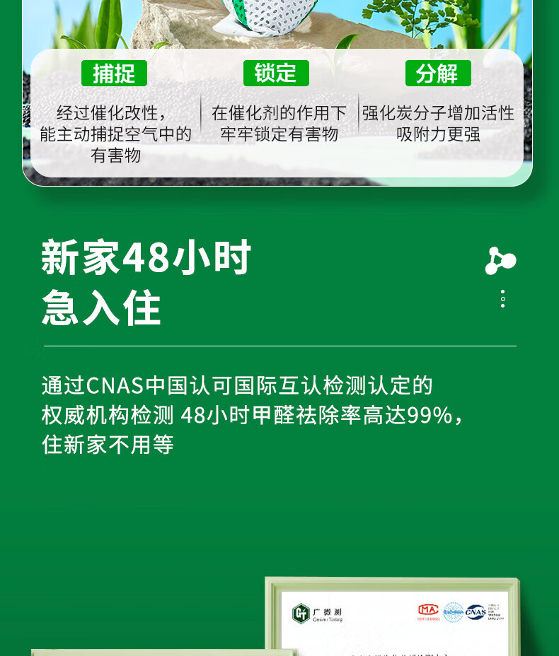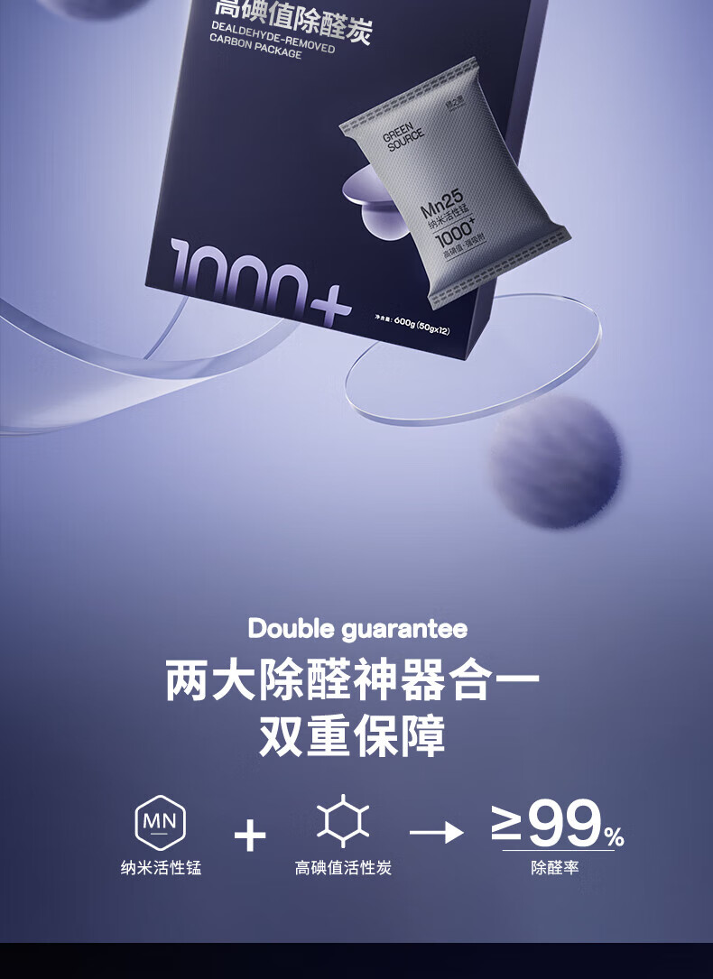 绿之源 活性炭除甲醛活性炭去甲醛炭包去甲醛新房汽车除味竹碳包除味 幻彩·超净因子丨除醛炭盒丨1罐