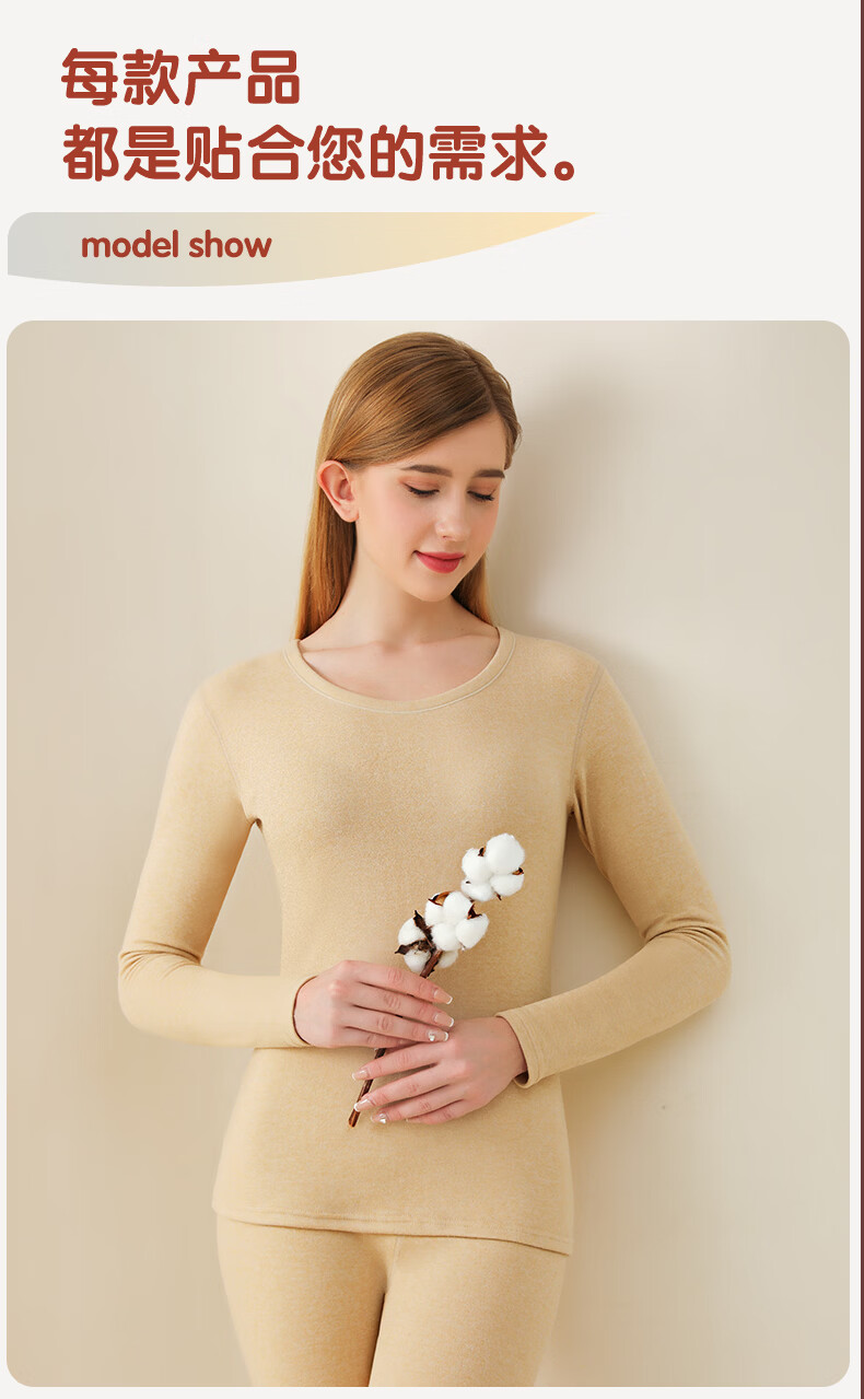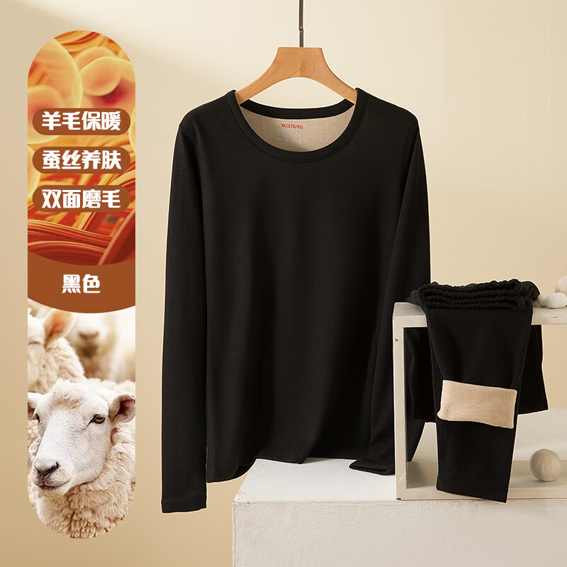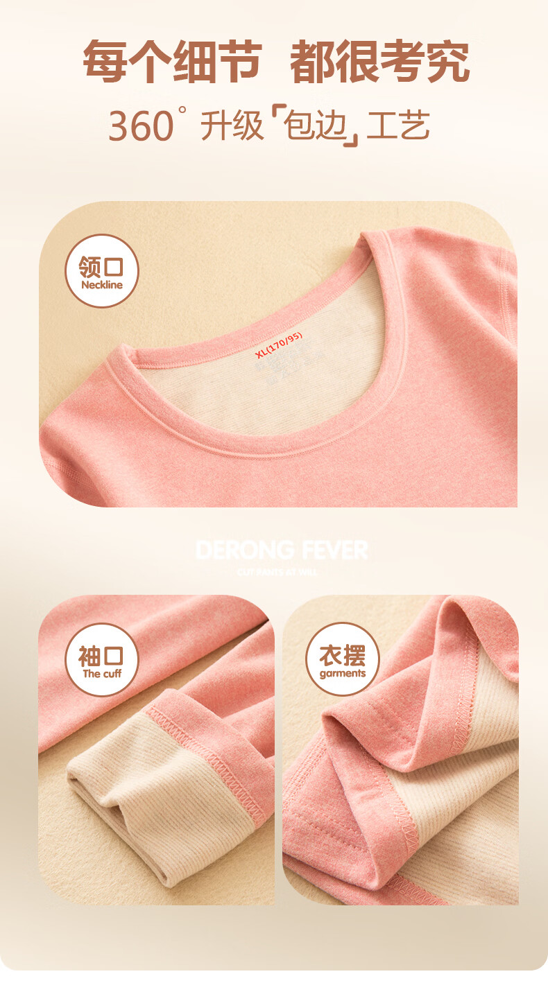 EMZ鄂尔多斯女士山羊绒保暖内衣套装双面绒无痕发热打底衫打底裤新款 包边套装暖柔肤 3XL (建议150-165斤)