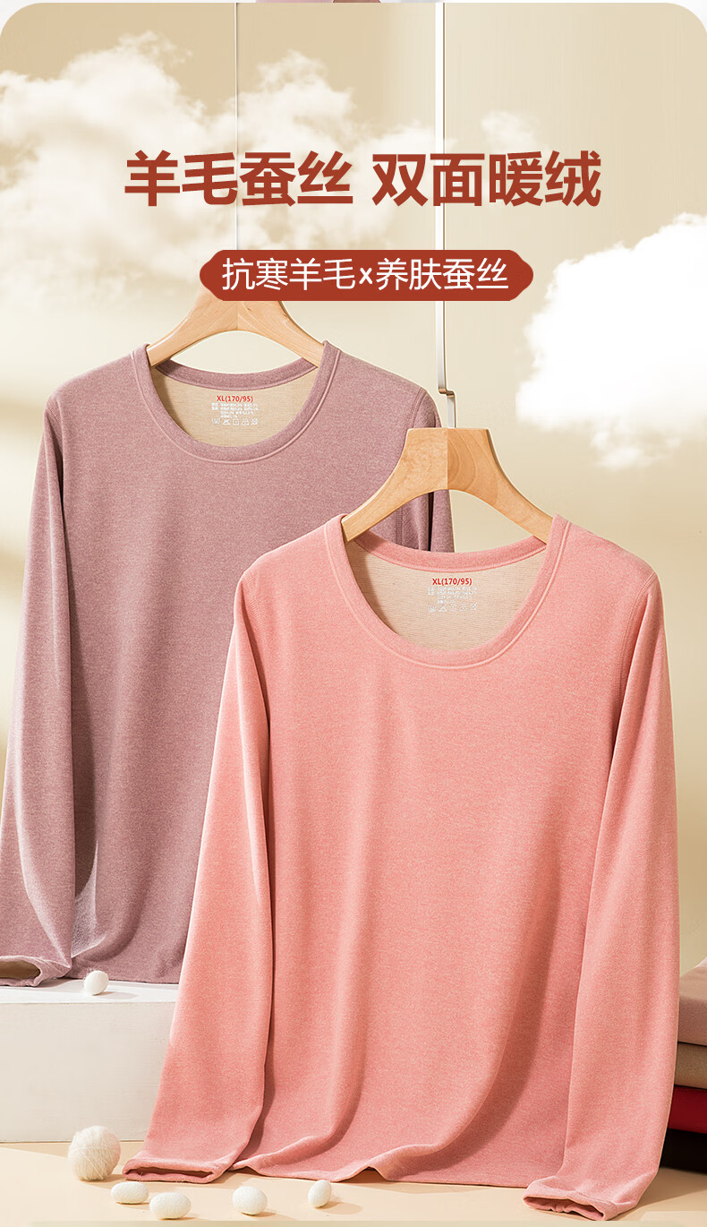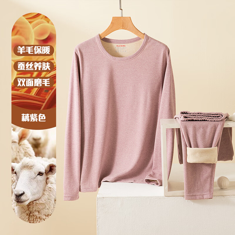 LIVS保暖内衣女加绒加厚超柔亲肤修身女士秋衣秋裤套装 藕紫色【羊毛+蚕丝】(套装) 3XL 身高(160-170cm) 体重(120-135斤)
