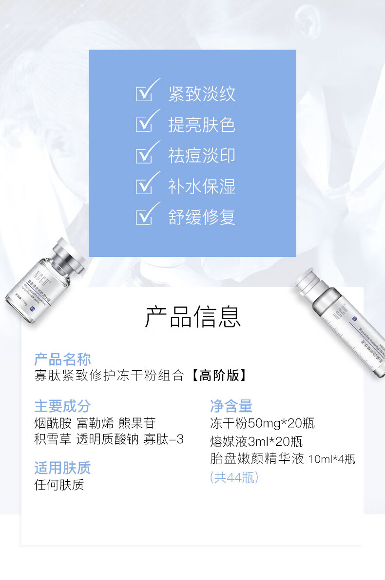 NCCU赋活修护冻干粉收缩毛孔精华液寡肽原液痘坑富勒烯原液44瓶套盒装 44瓶/一套