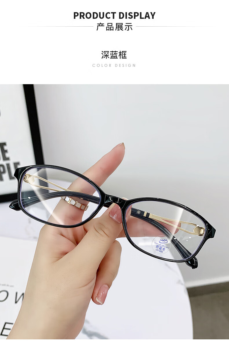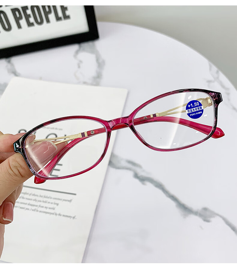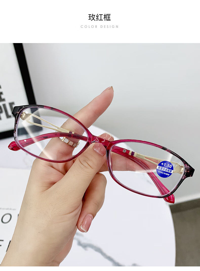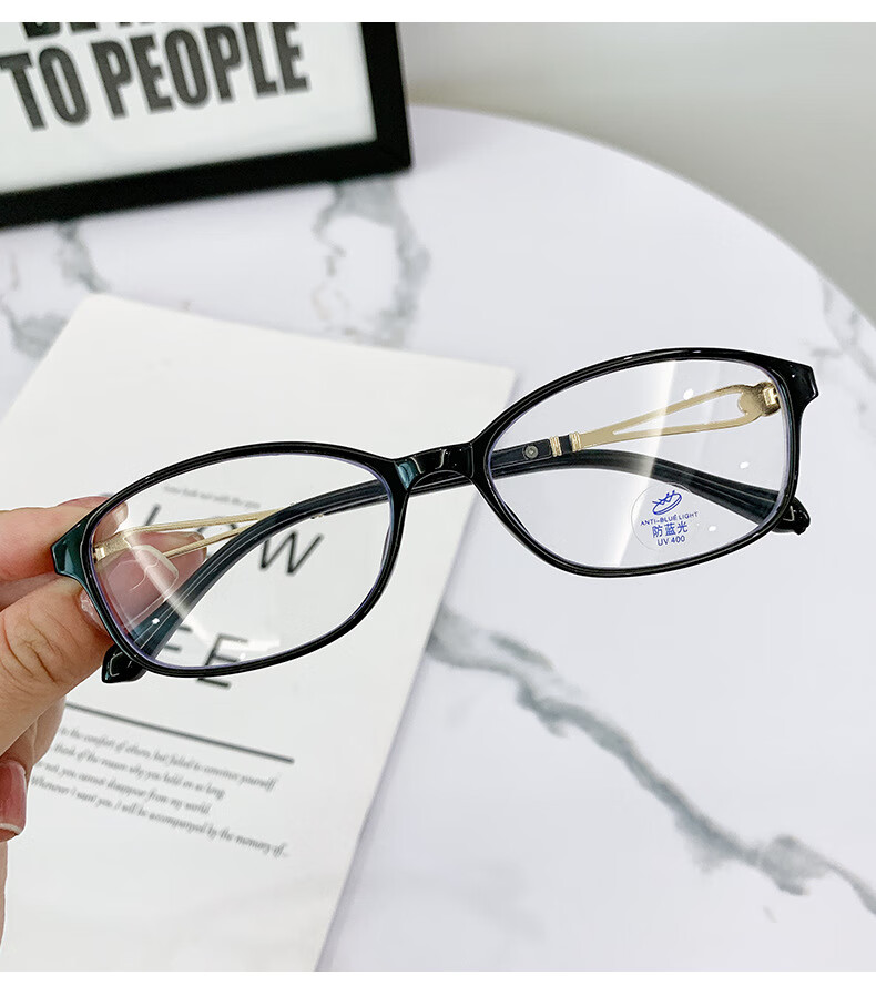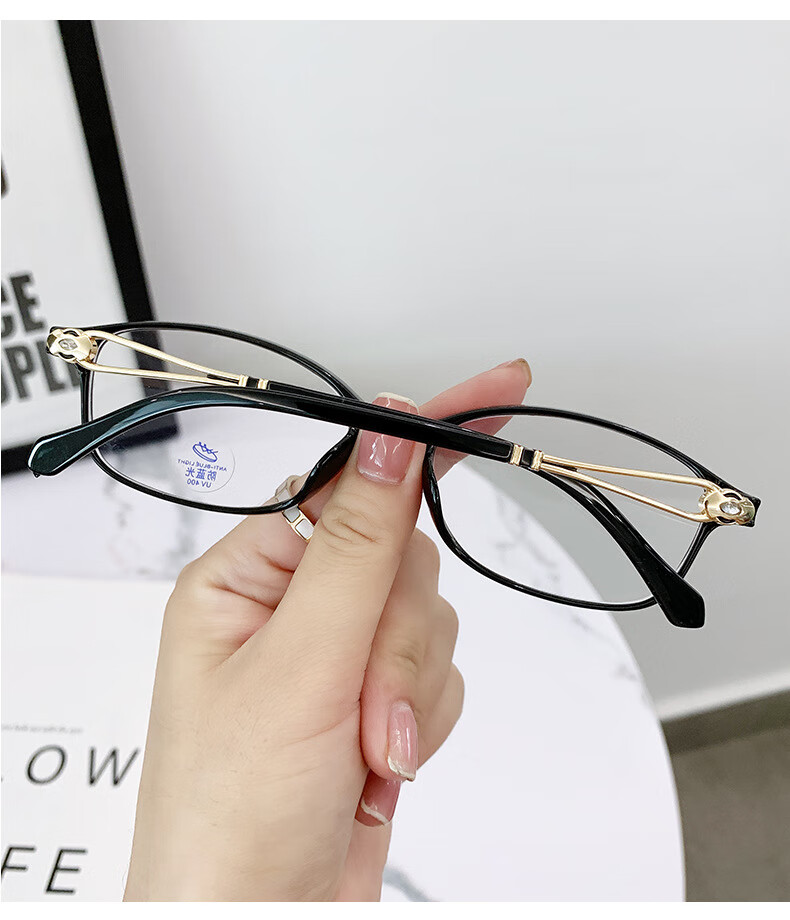 明雪菀绮新款防蓝光女士优雅时尚潮款中老年人老花眼镜网红潮款老视镜 亮黑 防蓝光 1.56左右眼不同防蓝光100-600度定制