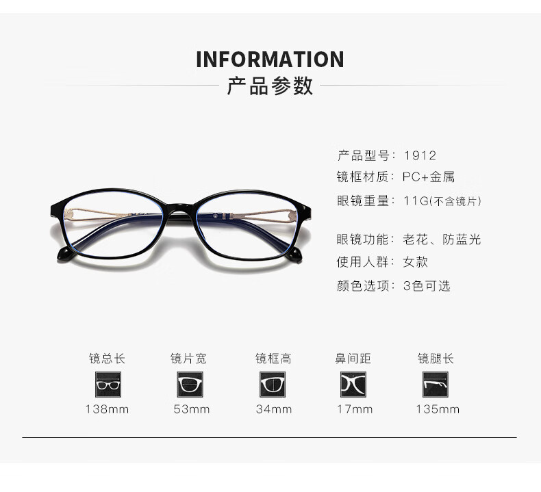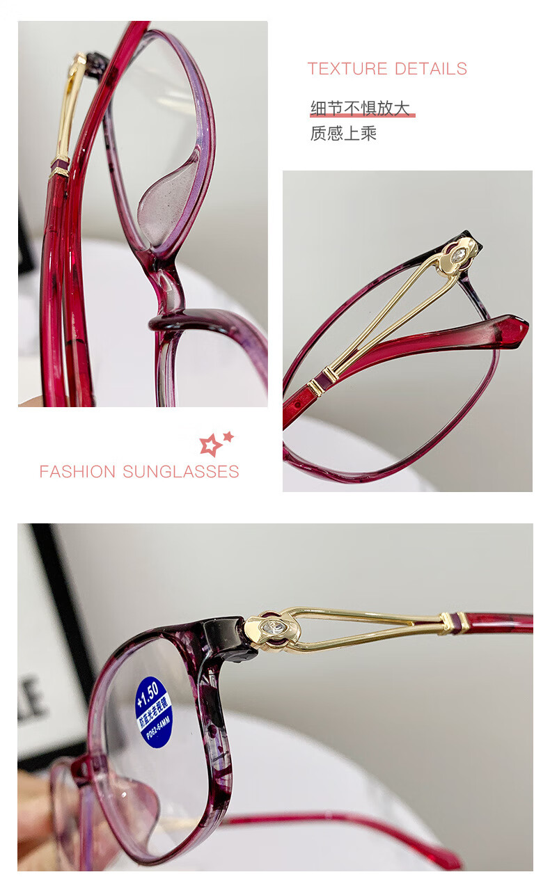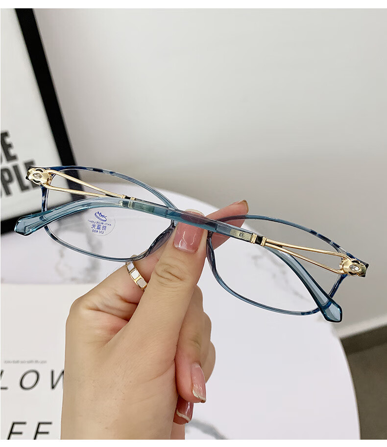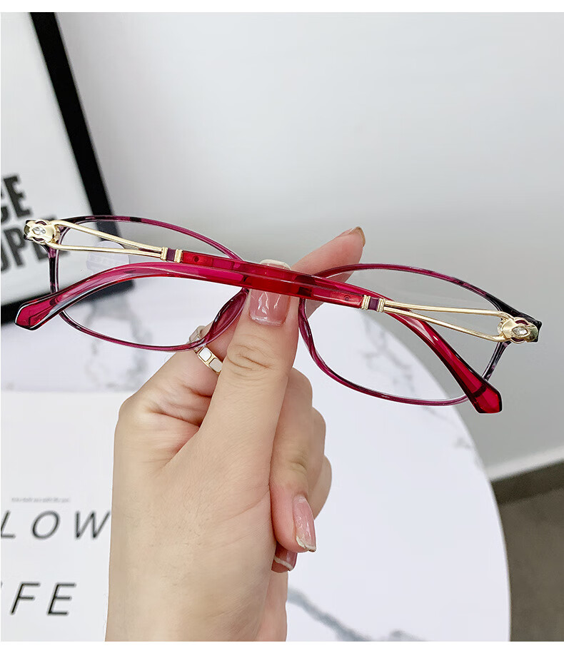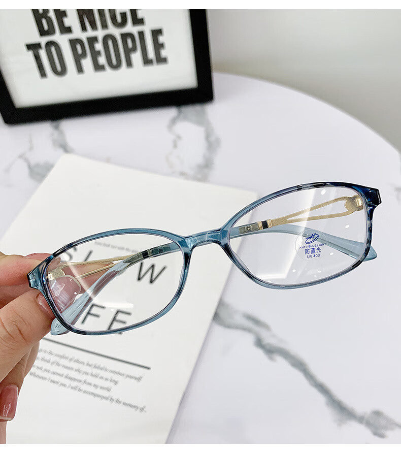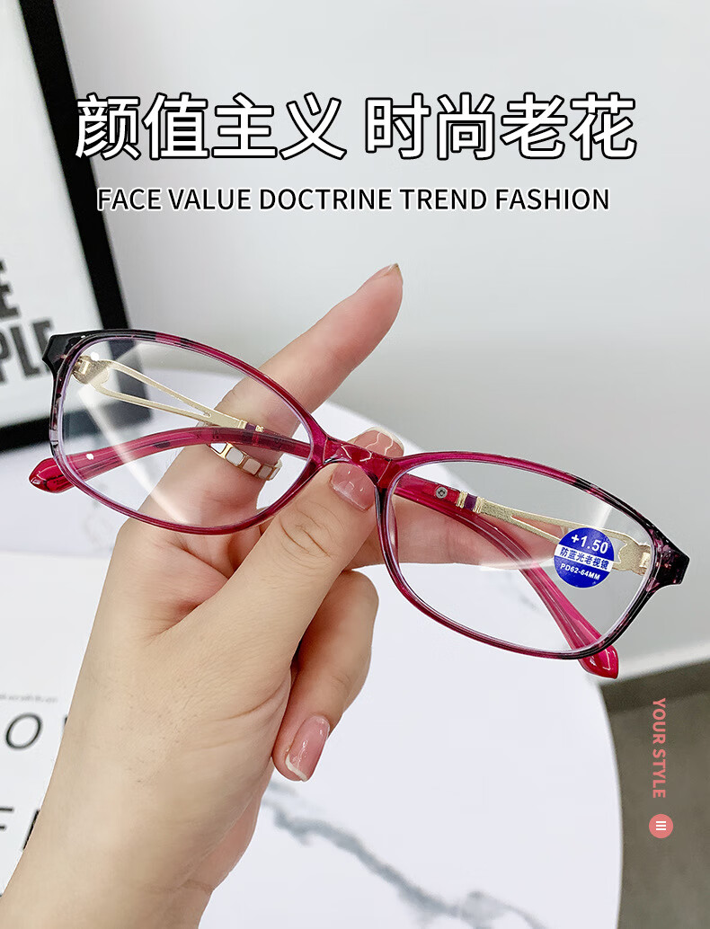 明雪菀绮新款防蓝光女士优雅时尚潮款中老年人老花眼镜网红潮款老视镜 亮黑 防蓝光 1.56左右眼不同防蓝光100-600度定制