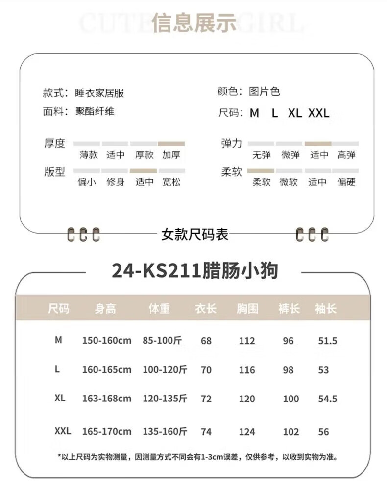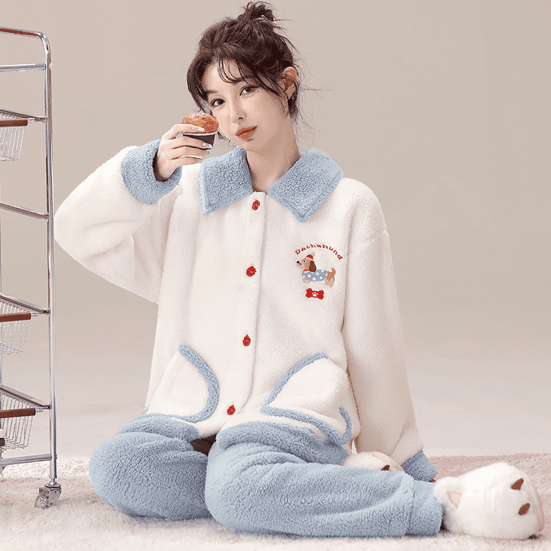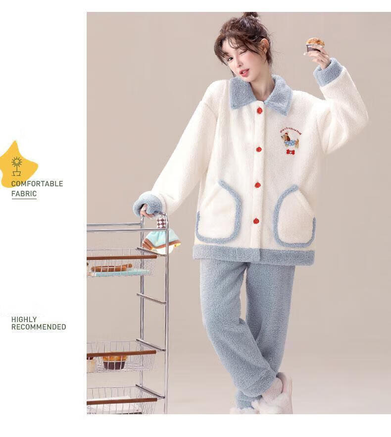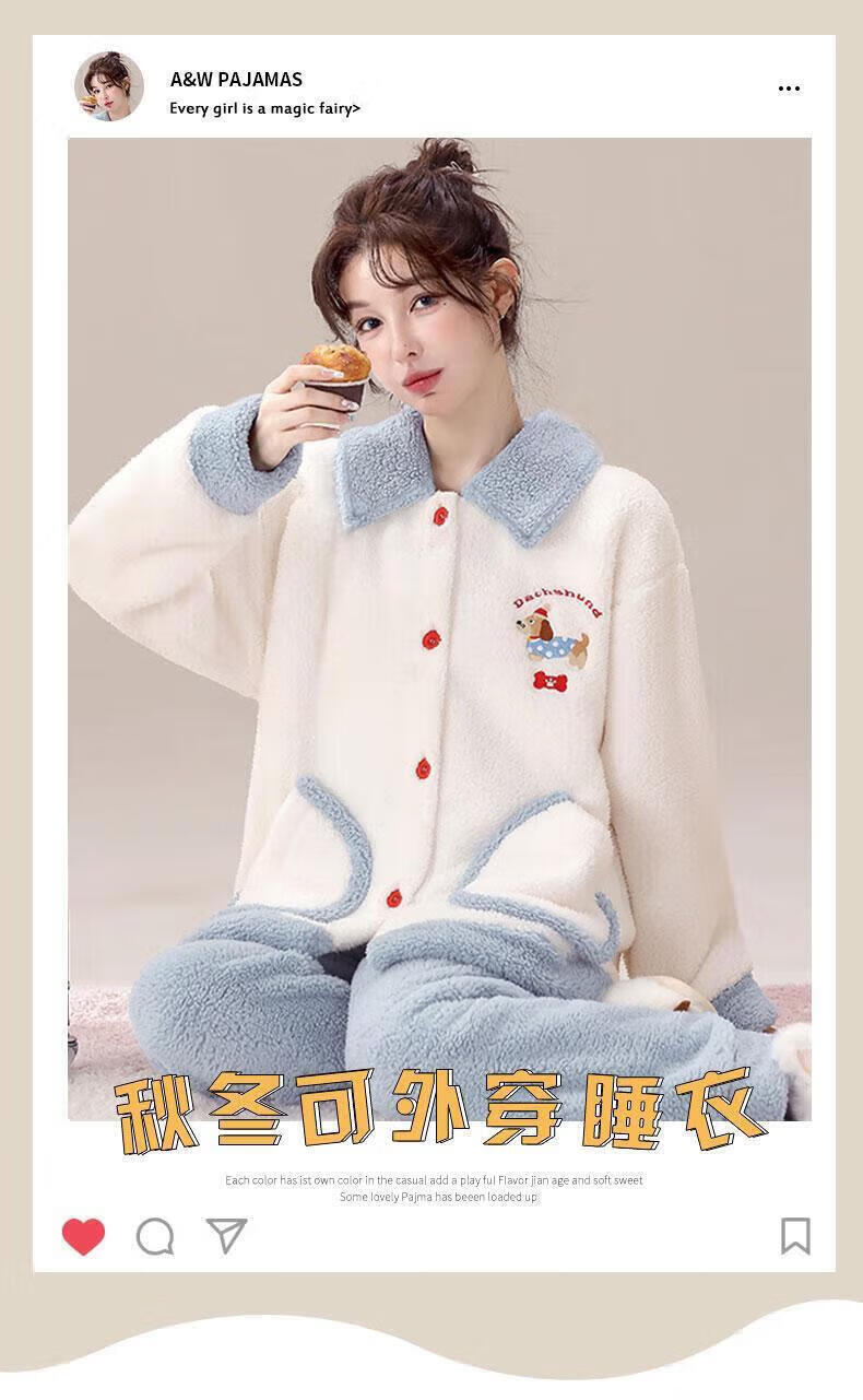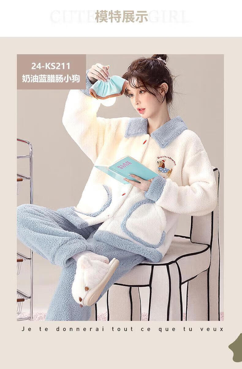 雪中飞(SNOWFLYING)珊瑚绒睡衣甜美可爱两件套秋冬天新款女士法兰绒保暖家居服可外穿 NSJLY-KS215蓝色腊肠小狗 2XL 【建议135-160斤】