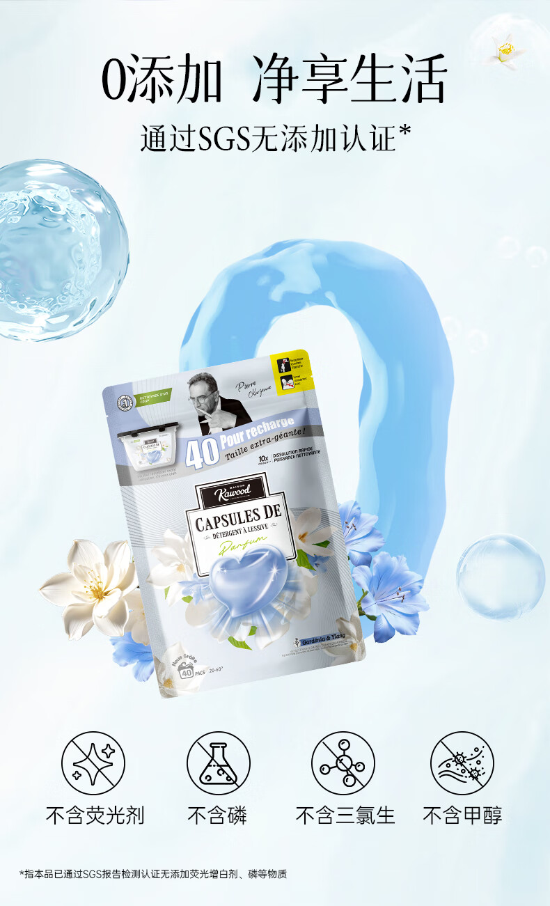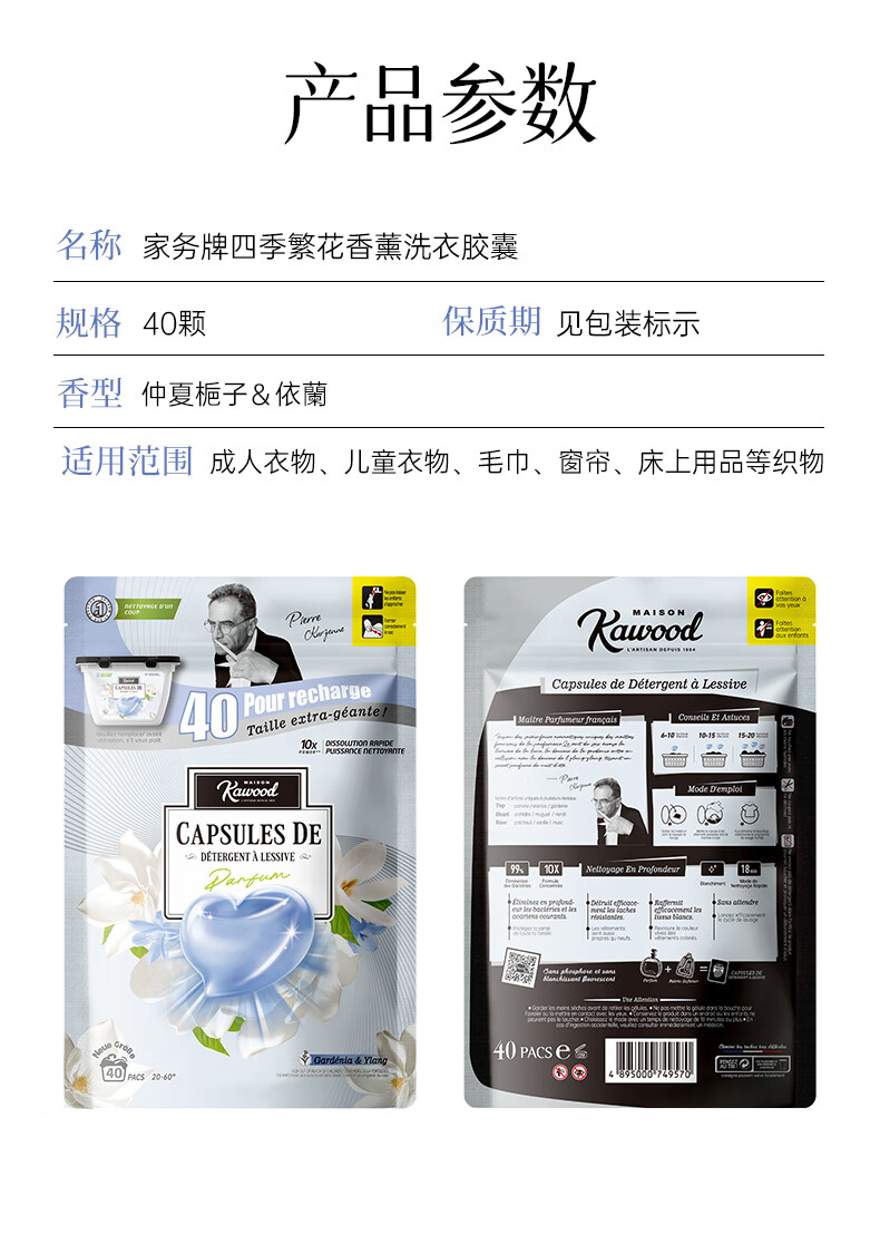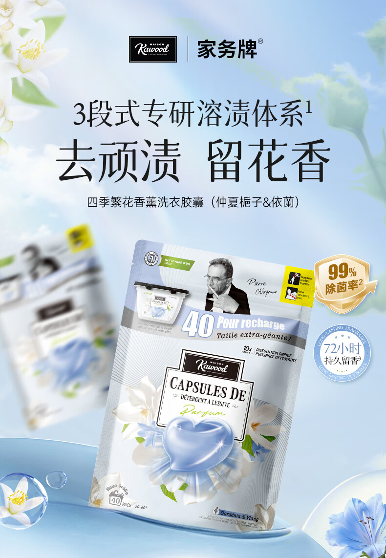 家务KAWOOD四季繁华洗衣胶囊40颗袋装除菌除螨10倍洁净 持久留香孕婴可用 2袋80颗【栀子&依兰】+超留香洗衣凝珠20颗