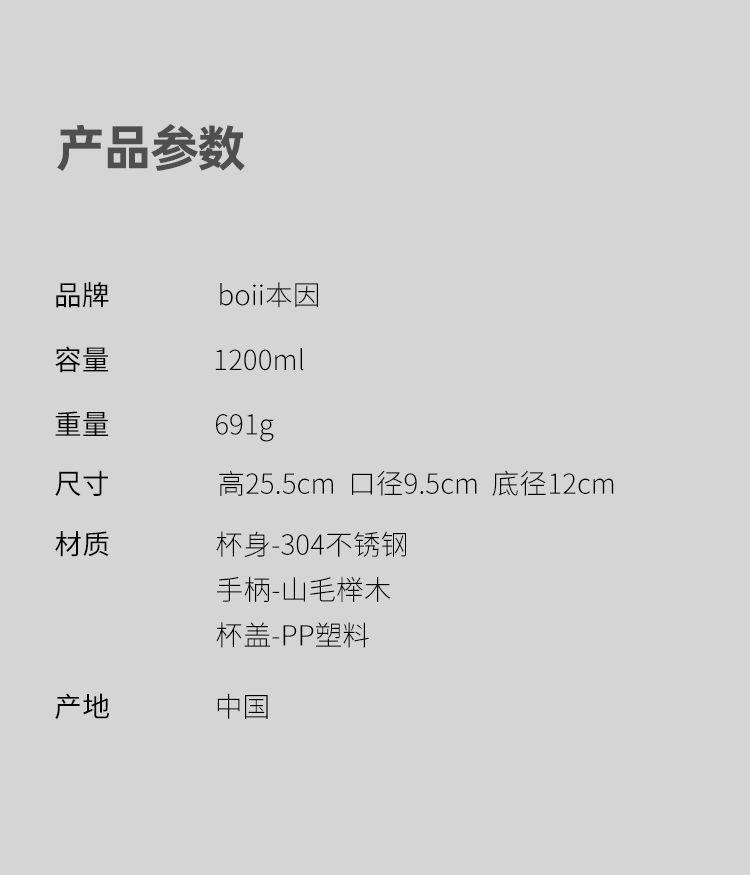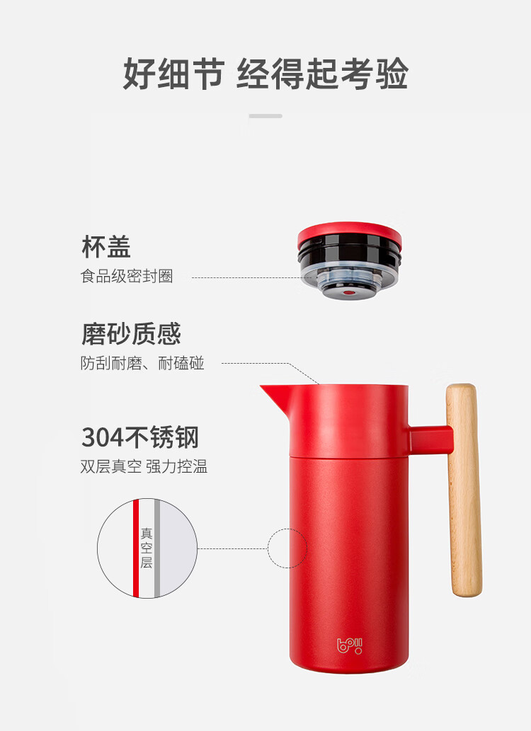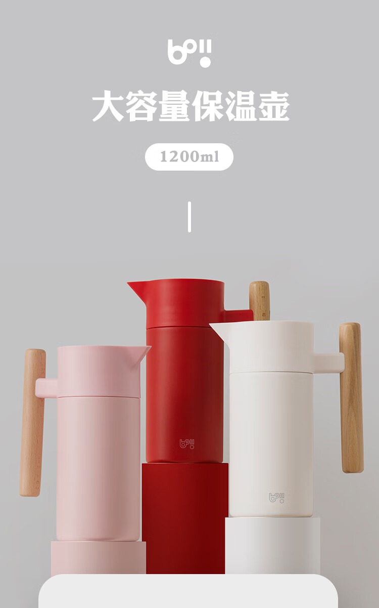 本因Boii保温壶家用保温水壶大容量便携热水瓶热水壶保温瓶暖水壶 檀木黑1.3L