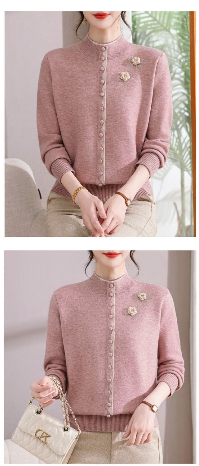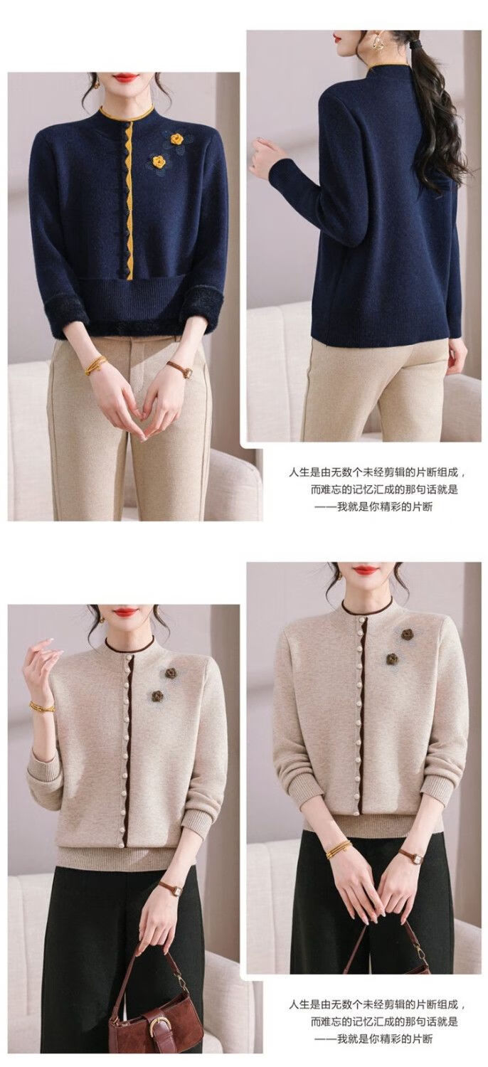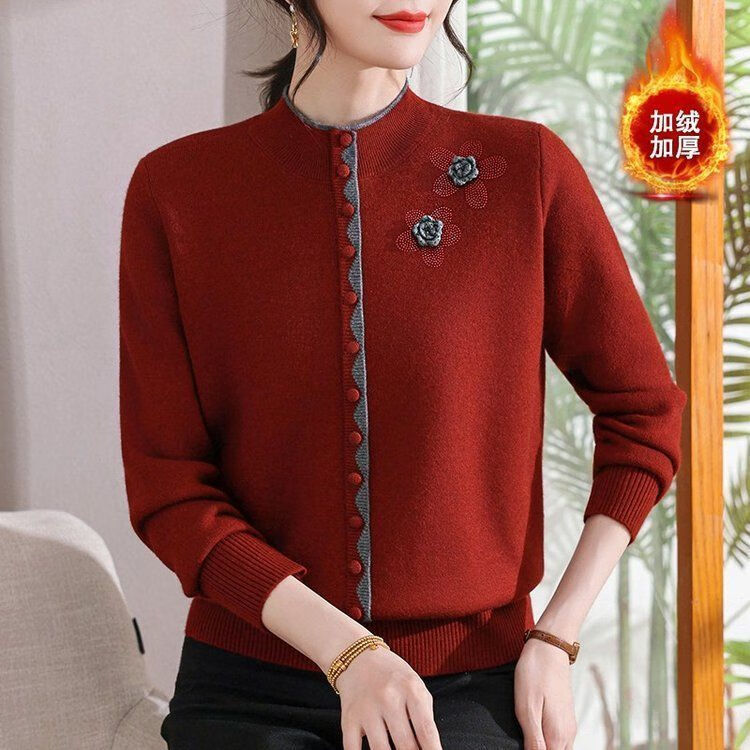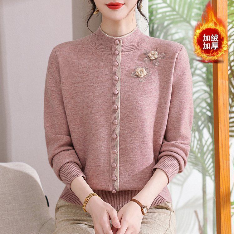 啄木鸟(TUCANO)妈M妈装秋冬加绒加厚毛衣一体绒针织打底衫中年老年宽松内搭保暖 灰色保暖一体绒 M (建议90-100斤)