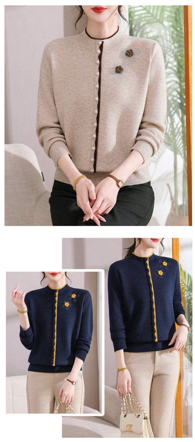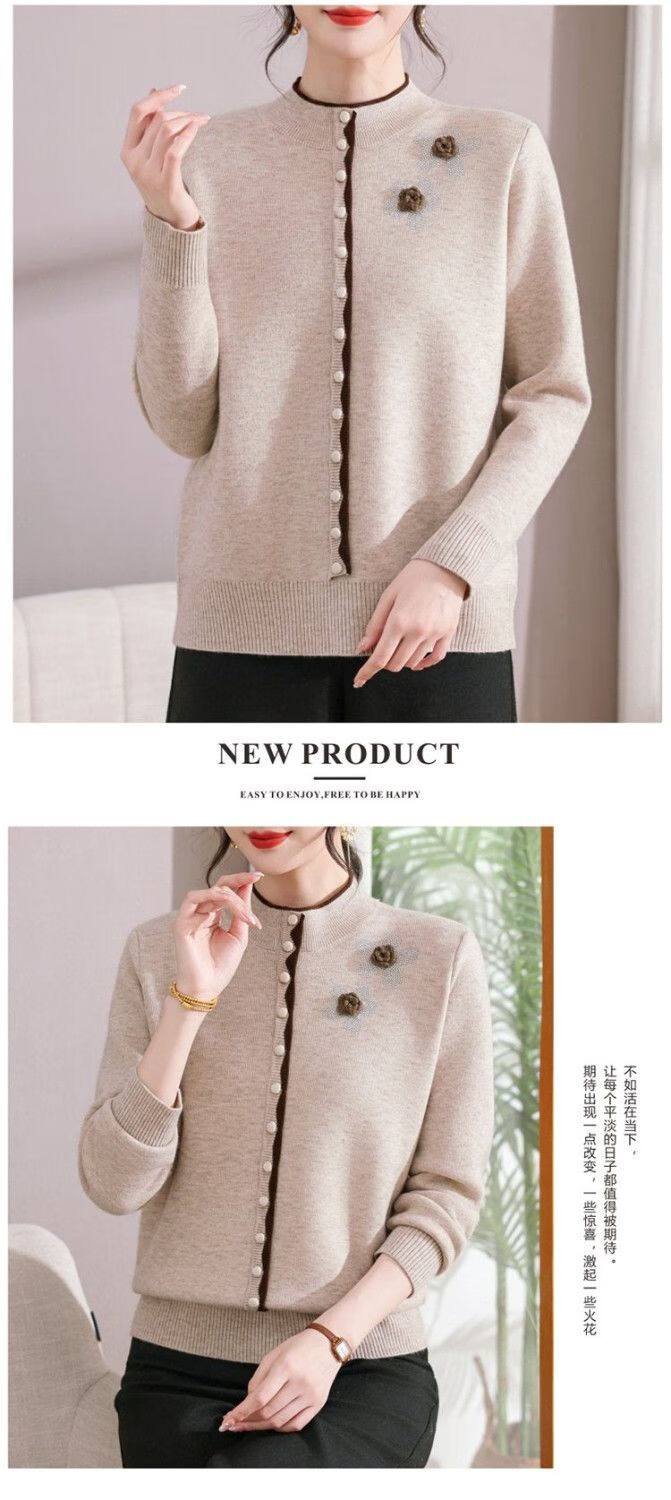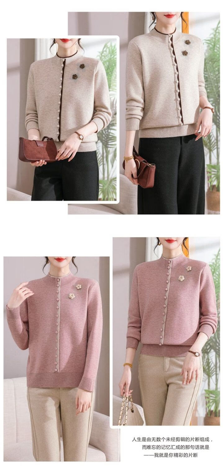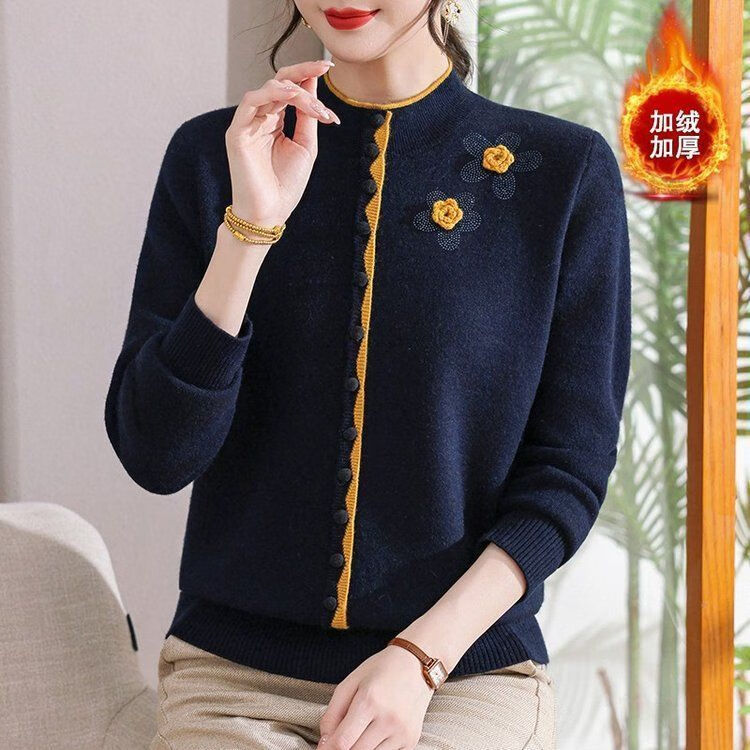 啄木鸟(TUCANO)妈M妈装秋冬加绒加厚毛衣一体绒针织打底衫中年老年宽松内搭保暖 灰色保暖一体绒 M (建议90-100斤)