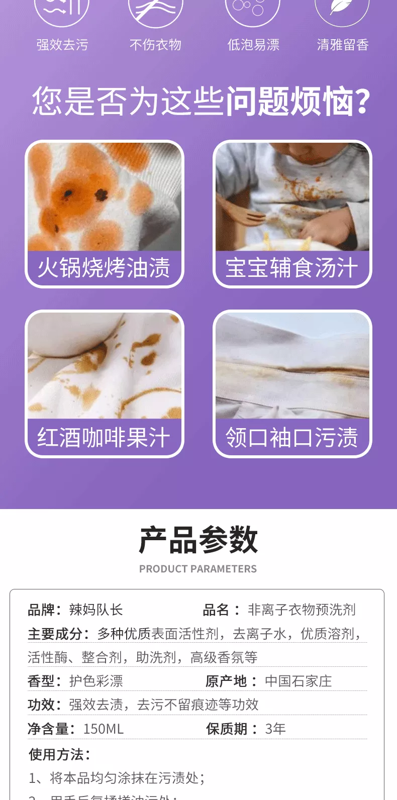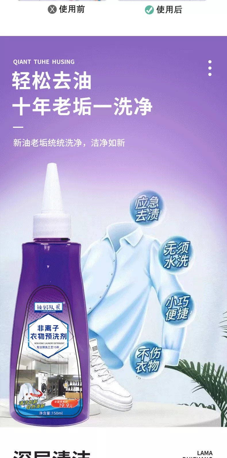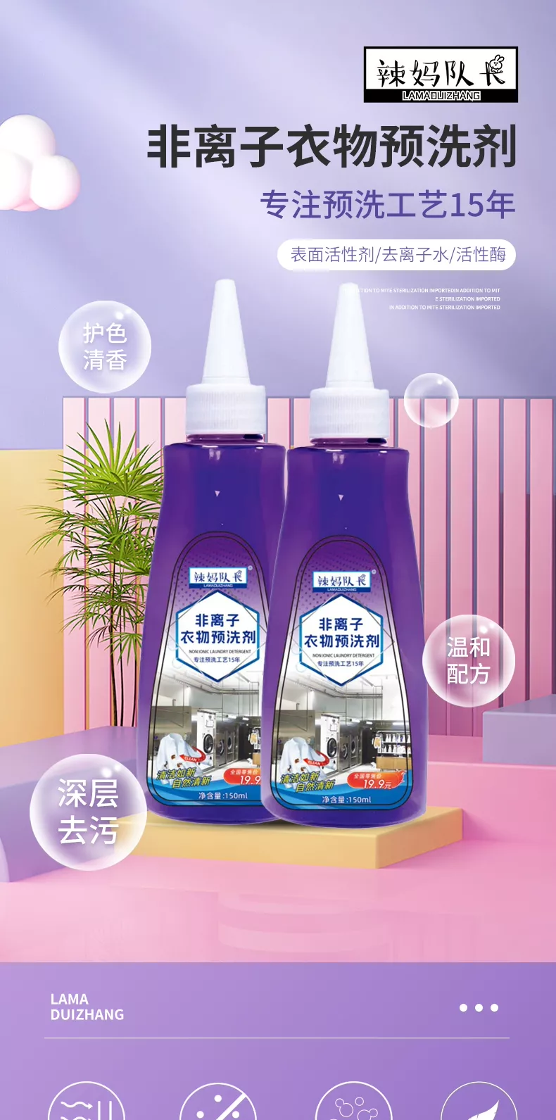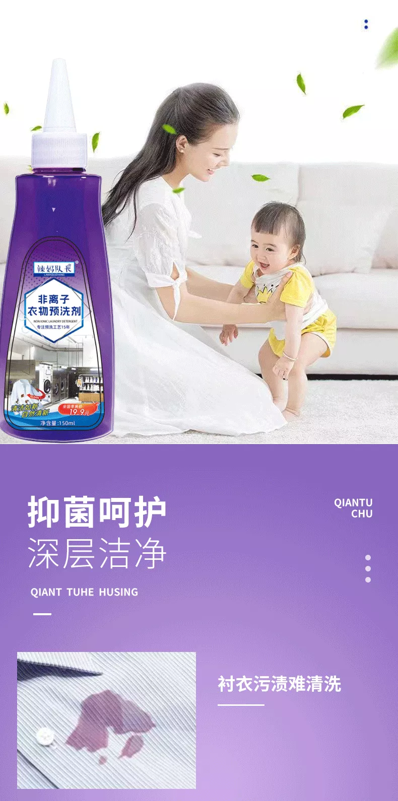 辣妈队长【优选】非离子衣物预洗剂去污 5瓶装