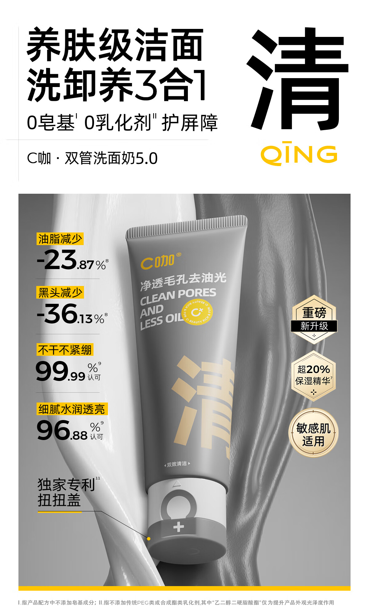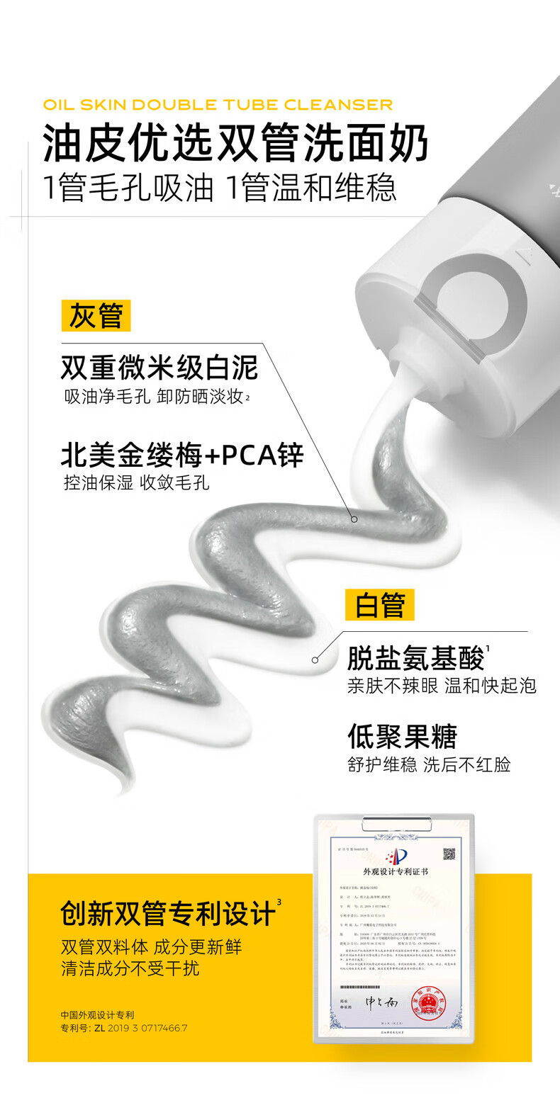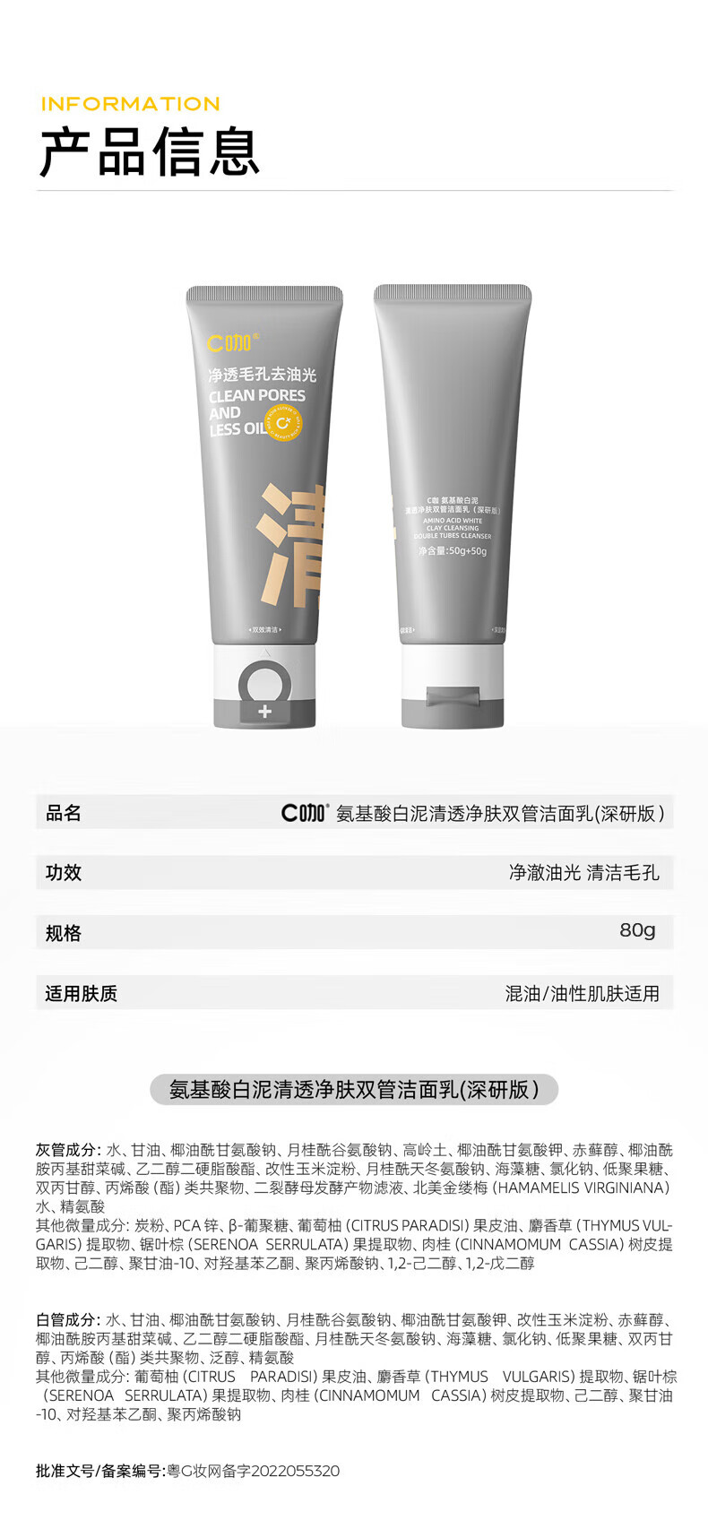 C咖双管洗面奶80g氨基酸清洁控油洁面乳去黑头角质新年礼物