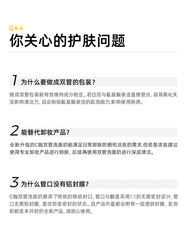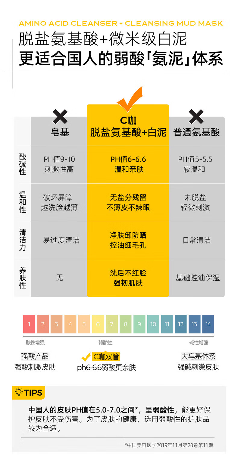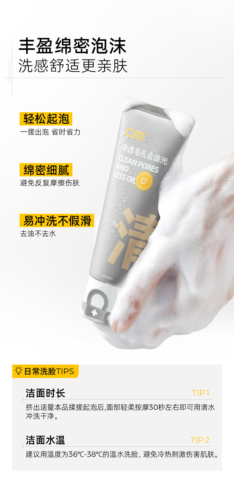 C咖双管洗面奶80g氨基酸清洁控油洁面乳去黑头角质新年礼物
