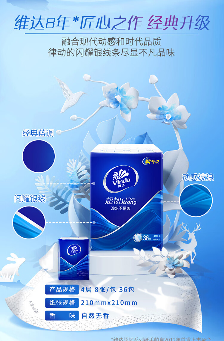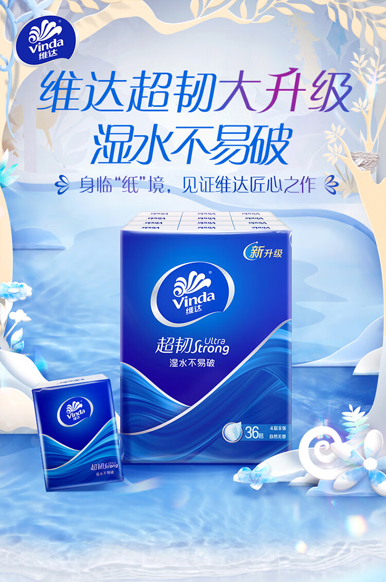 维达(Vinda)超韧手帕纸4层8张*36包 便携装小包旅行款 无香易撕餐巾纸随心囤