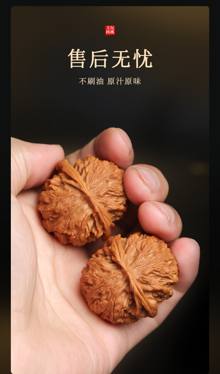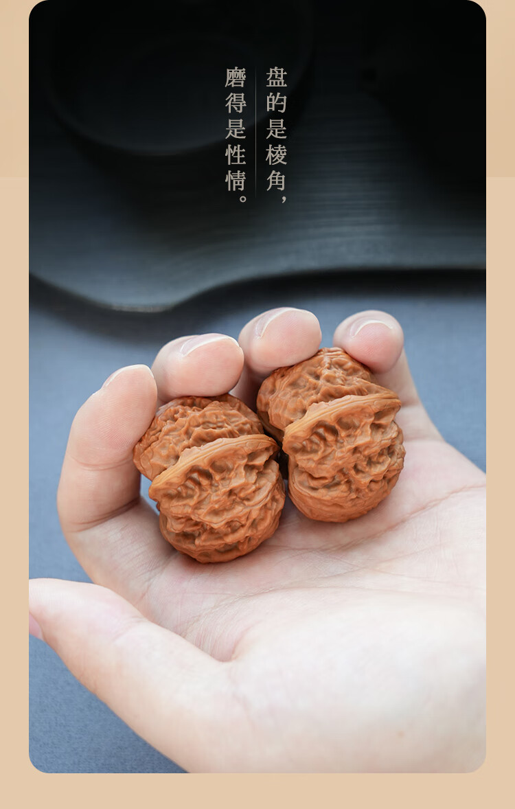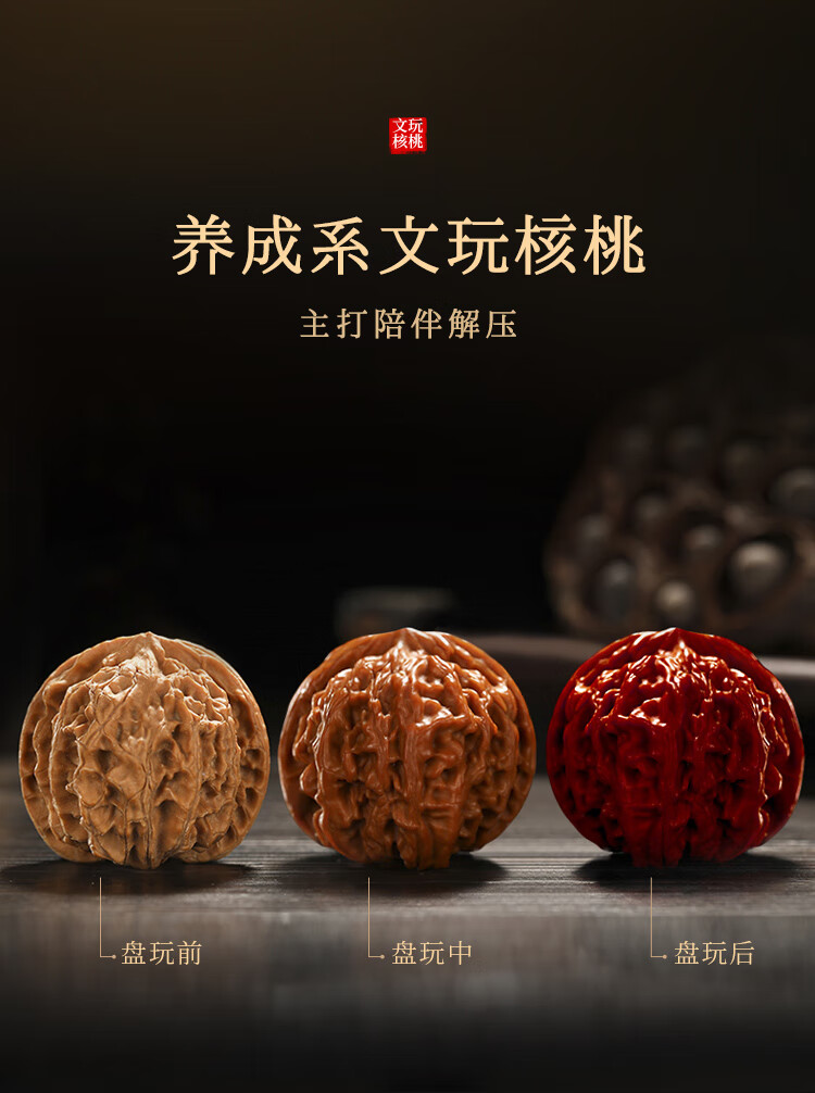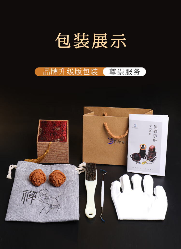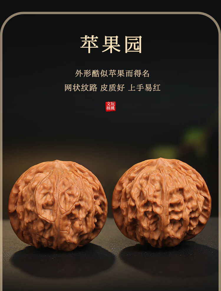 月印百川 核桃文玩苹果园古玩麻核桃手把件礼物约38-39mm+盘玩礼包