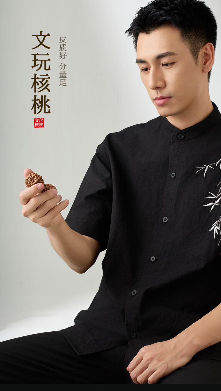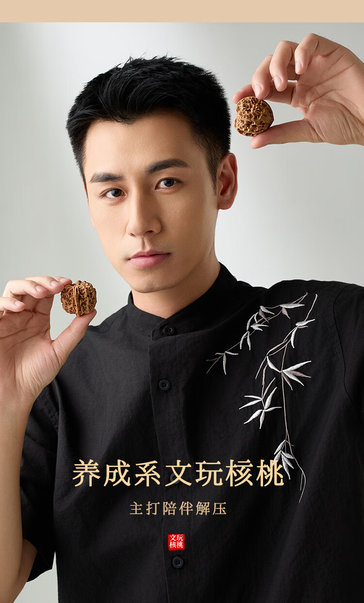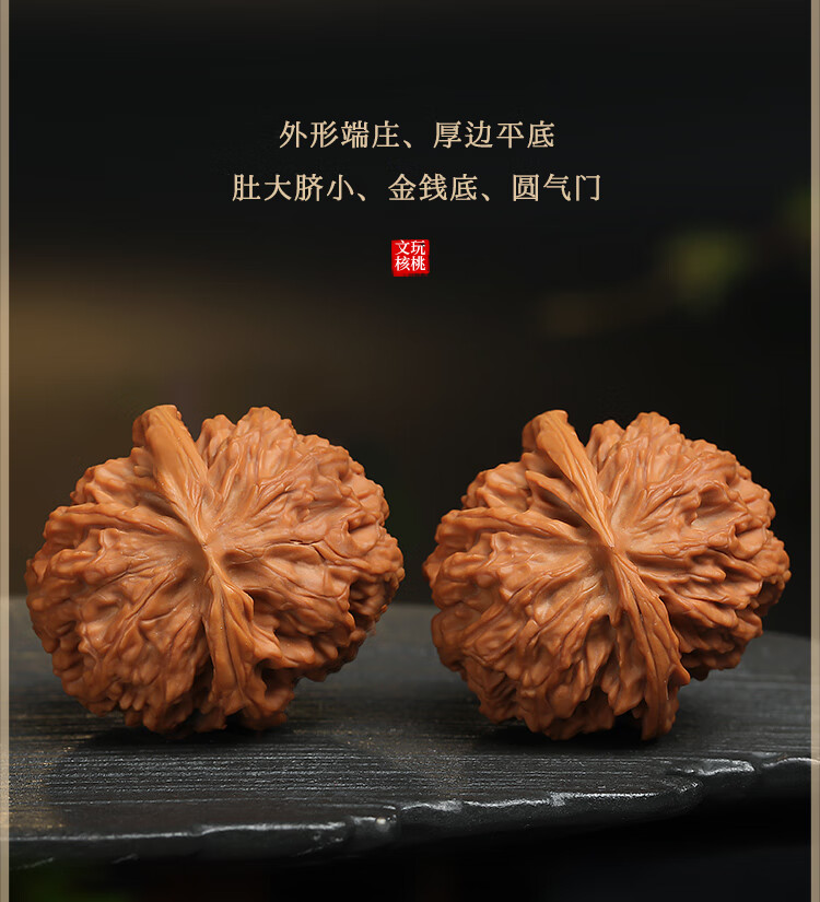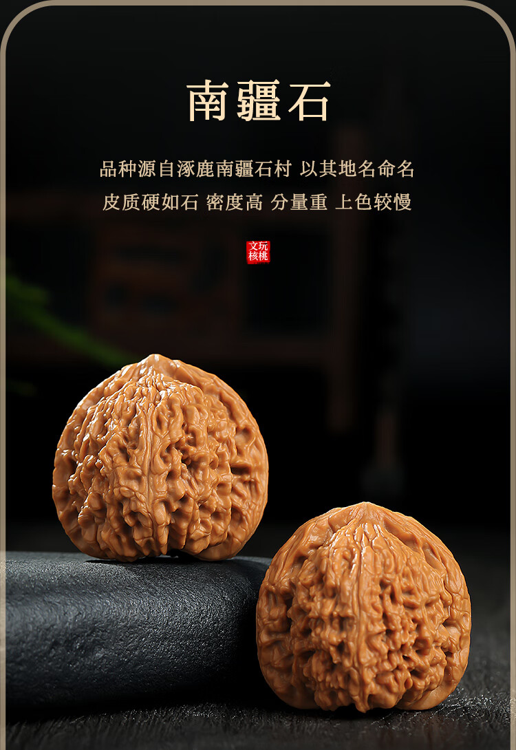 月印百川 核桃文玩苹果园古玩麻核桃手把件礼物约38-39mm+盘玩礼包