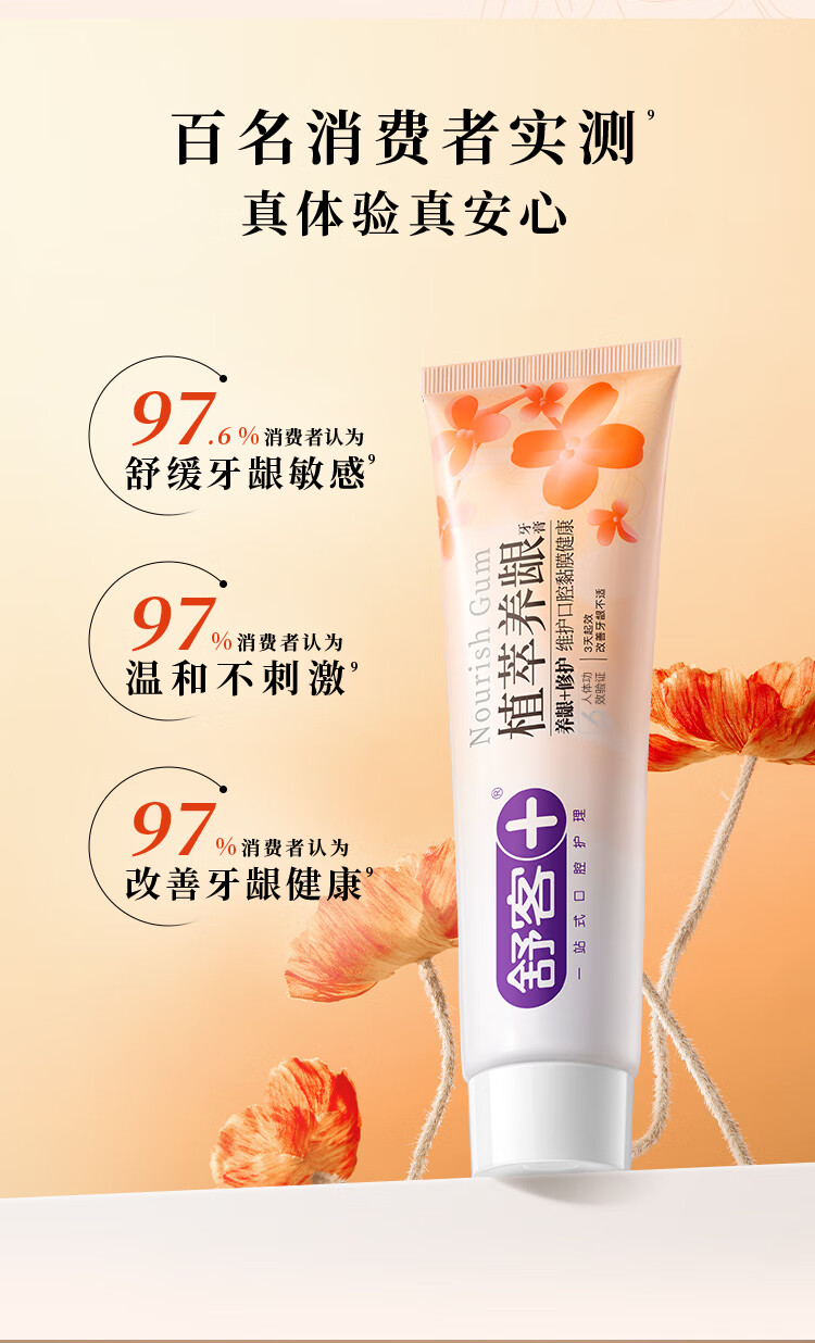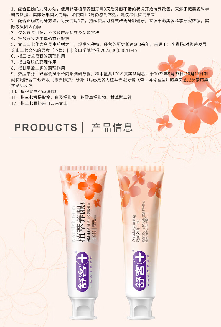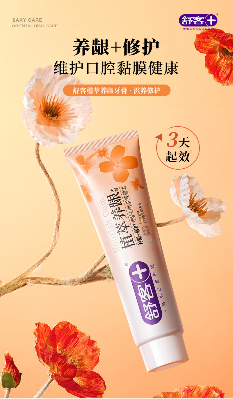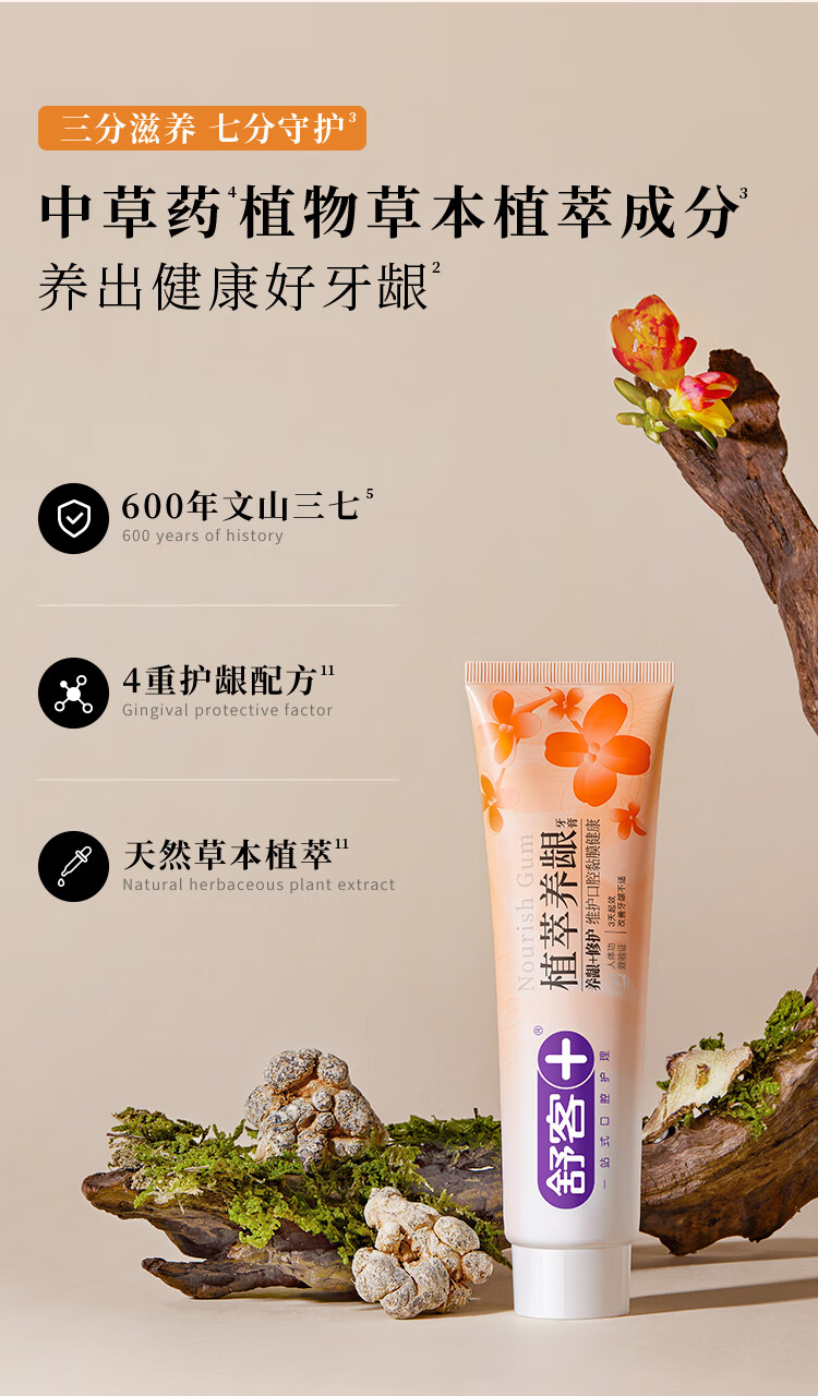 舒客植萃养龈修护滋养牙龈牙周植物三七草本牙膏180g【临期清仓】