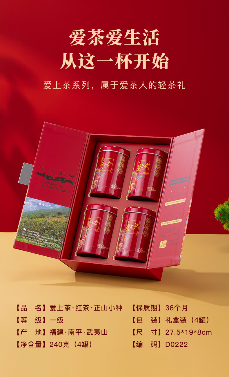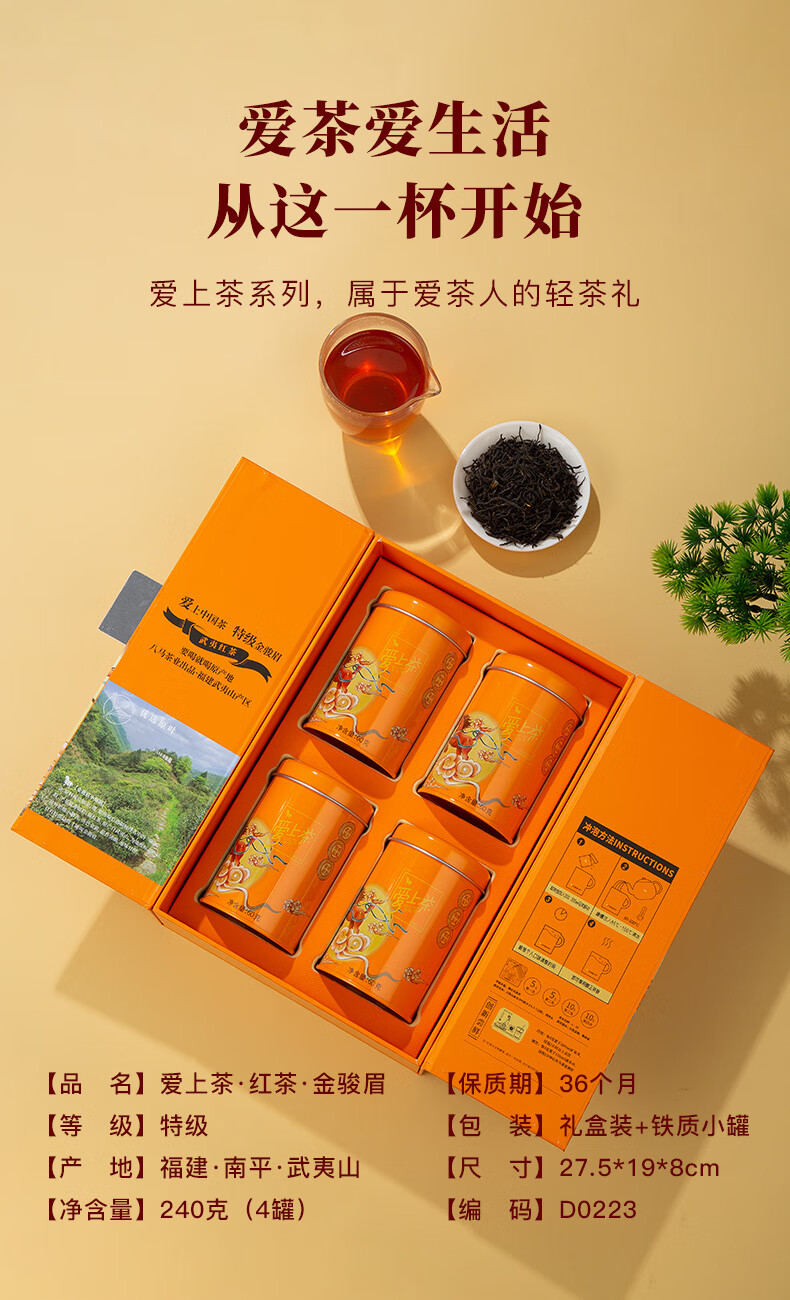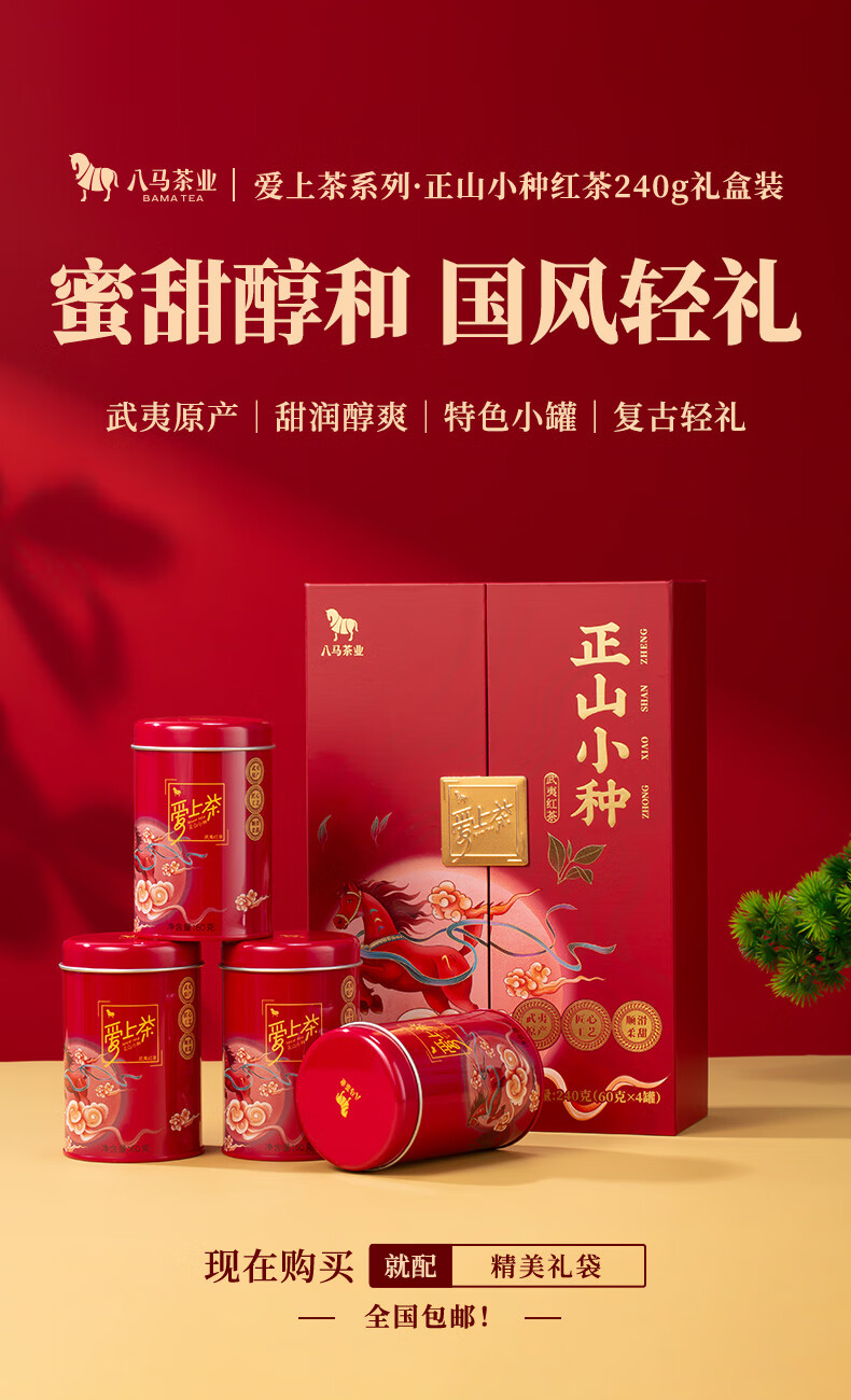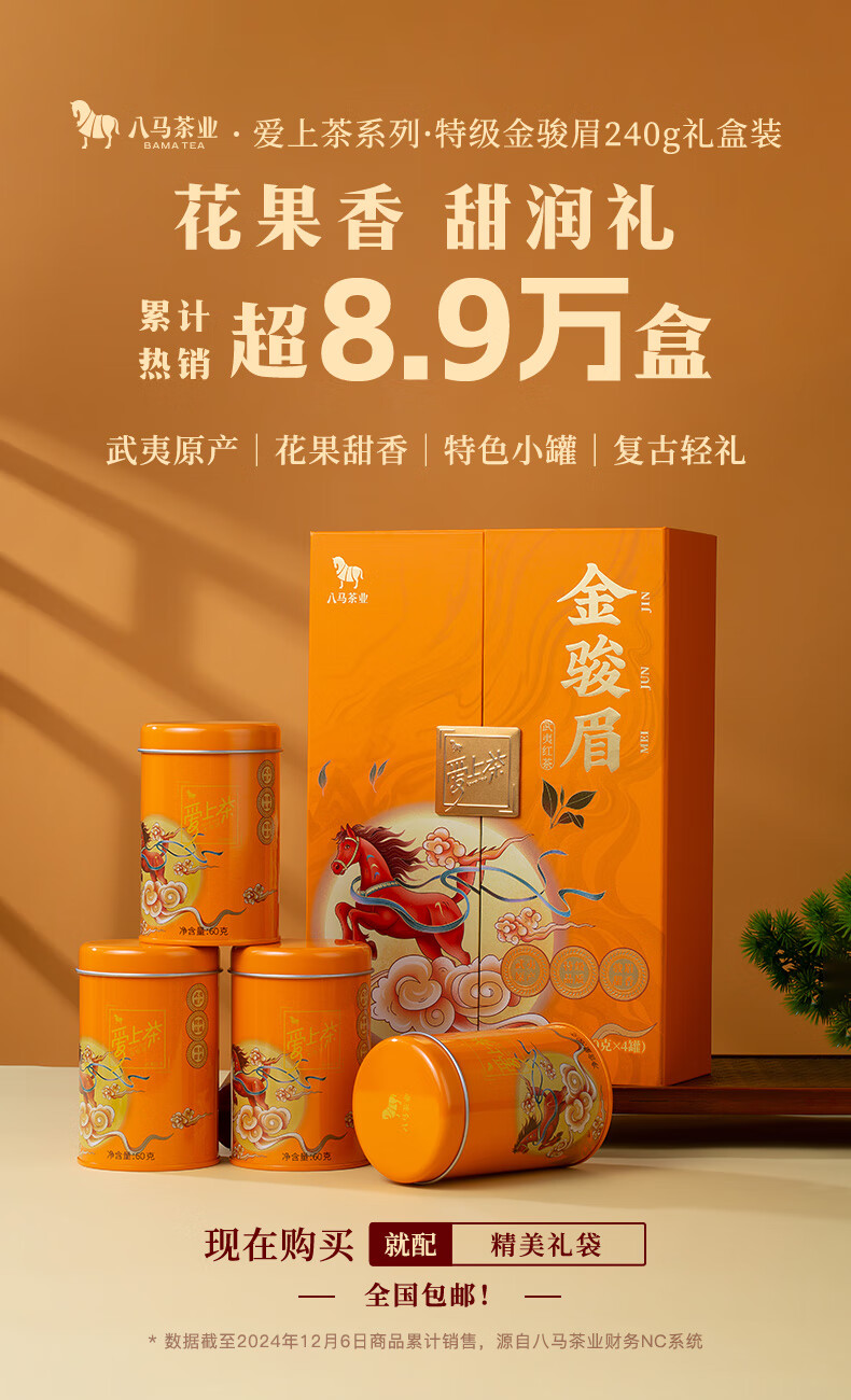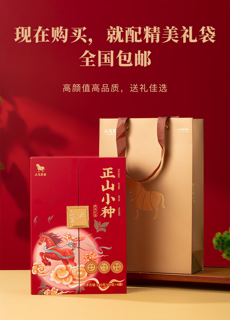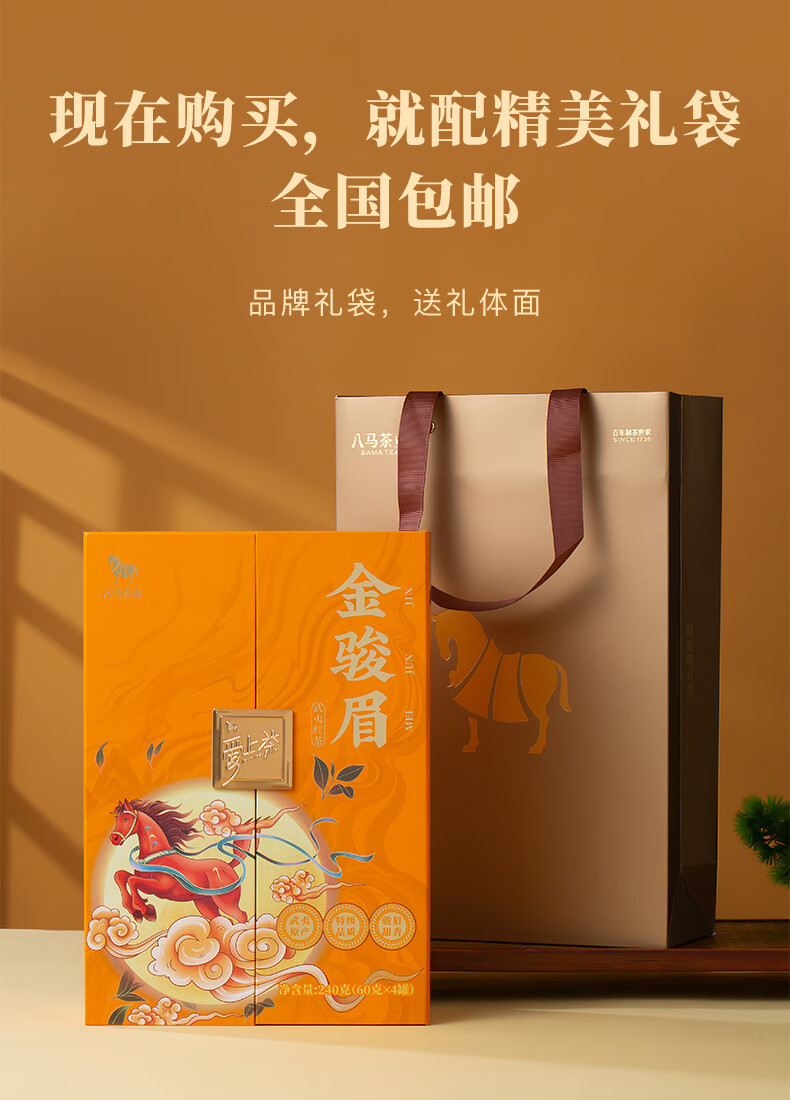 八马茶业 武夷红茶 金骏眉/正山小种 爱上茶 送礼茶叶 礼盒装 送礼袋 【金骏眉】240g