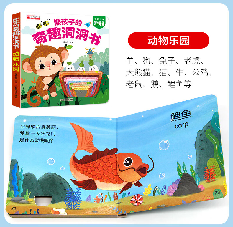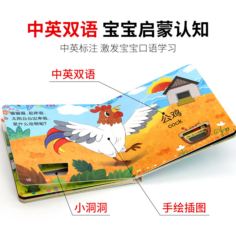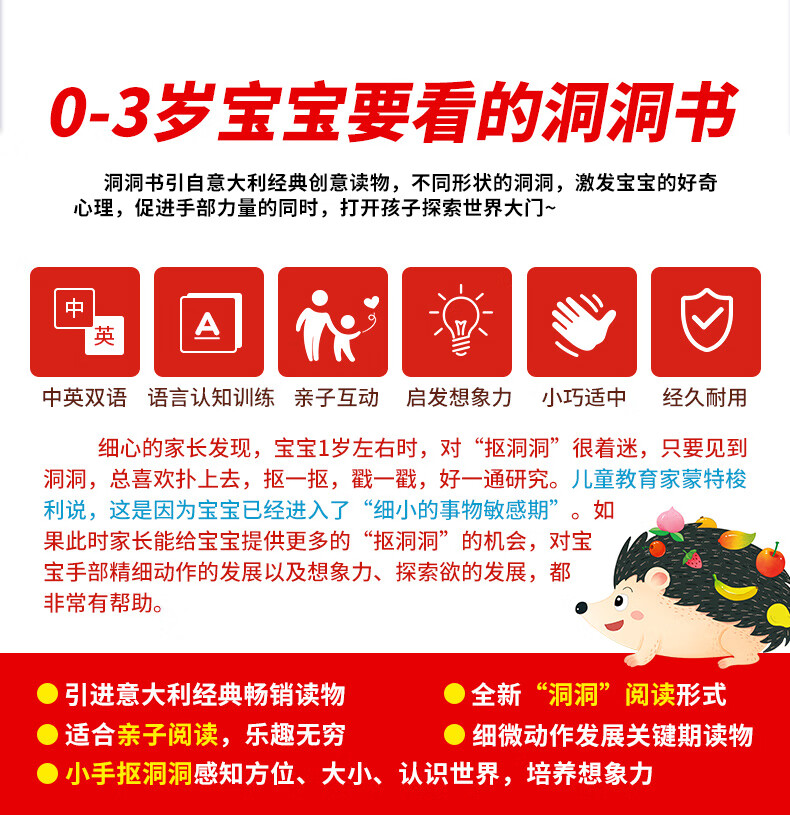【中英双语】0-3岁宝宝早教洞洞书婴儿早教撕不烂宝宝绘本故事书0-1-2-3岁幼儿园启蒙认知早教书幼儿交通工具识字幼儿益智启蒙玩具书 0-3岁奇趣洞洞书 超值童书 【中英双语】奇趣洞洞书-动物乐园
