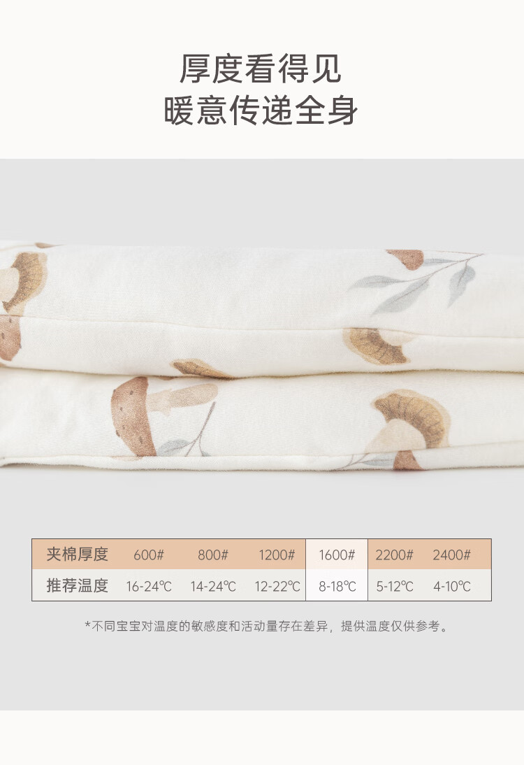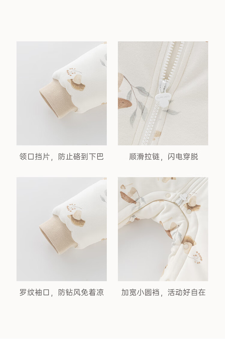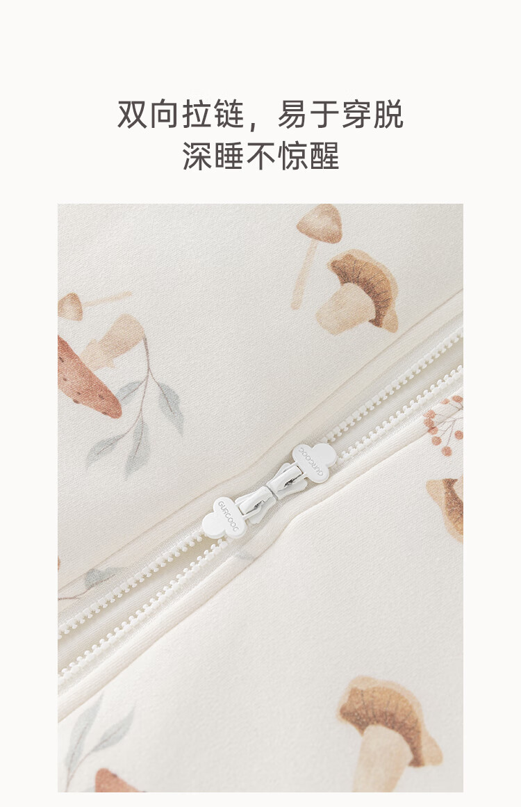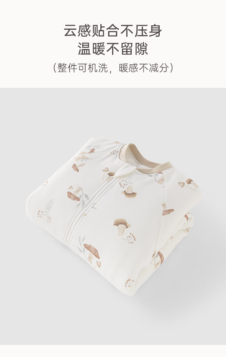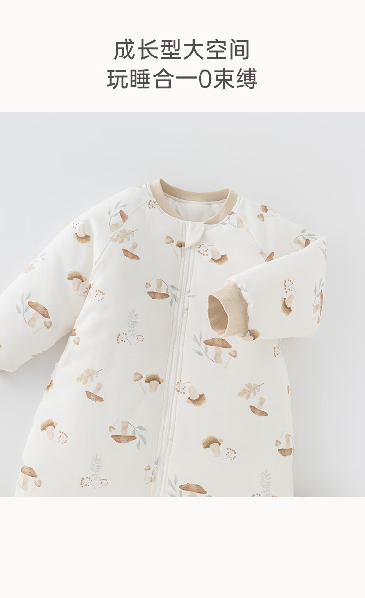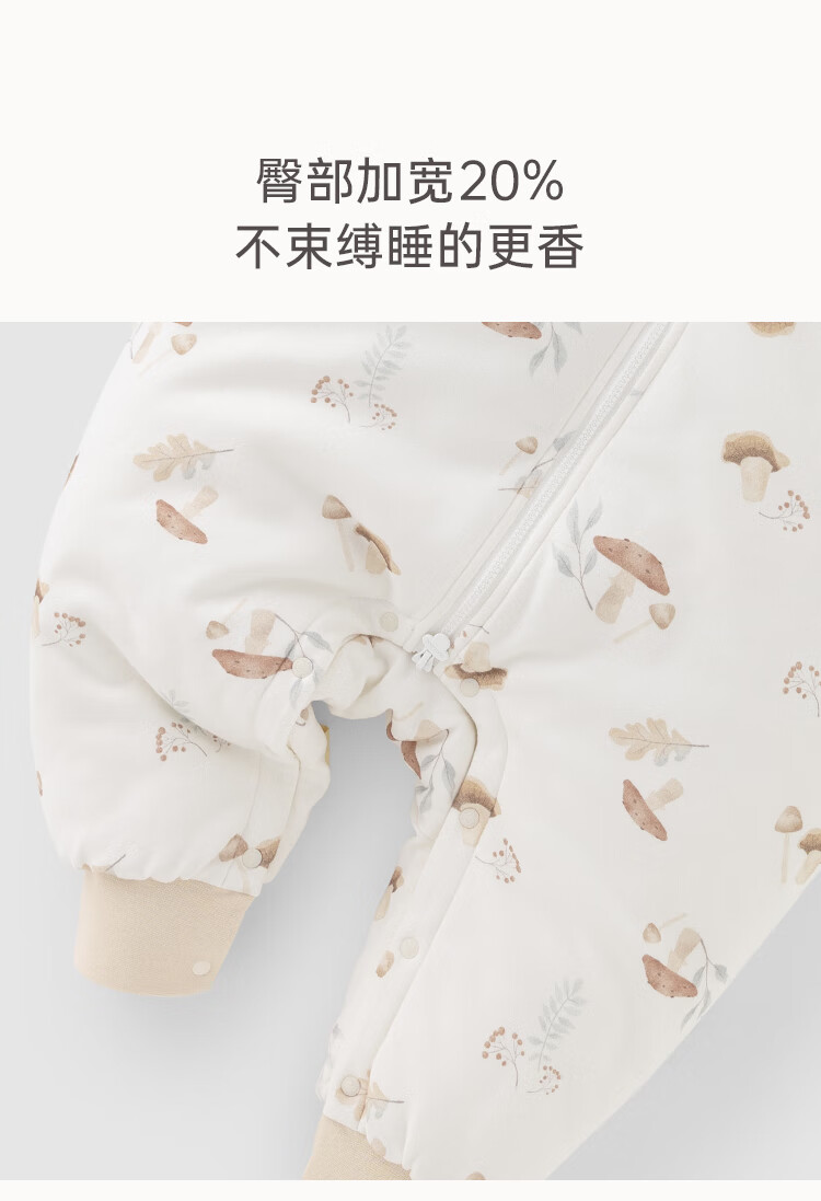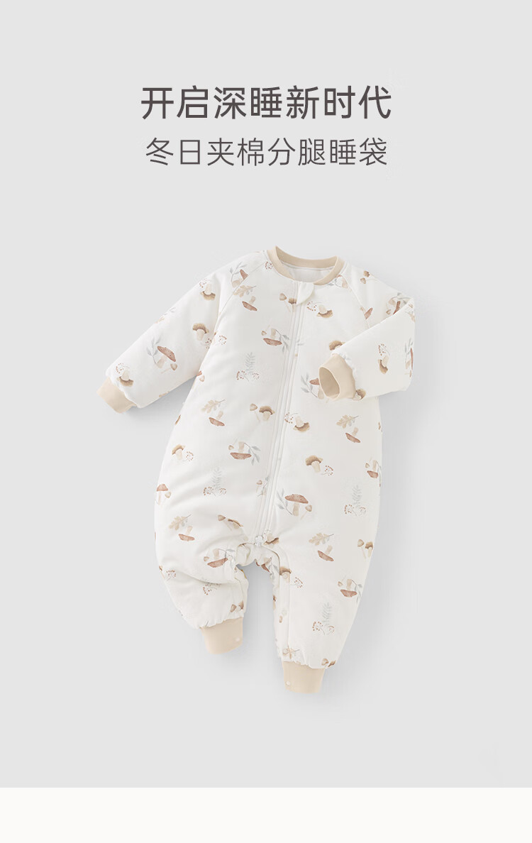 乖奇熊秋冬季儿童夹棉分腿式睡袋保暖加厚宝宝连体睡衣服婴幼儿防踢被子 奶白蘑菇乐园 38cm 92* (L)