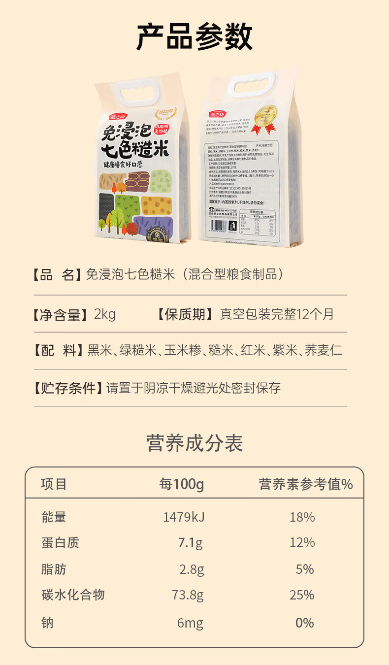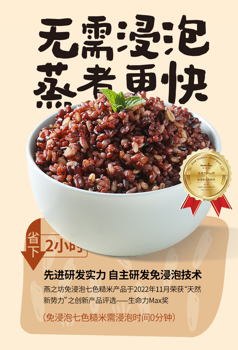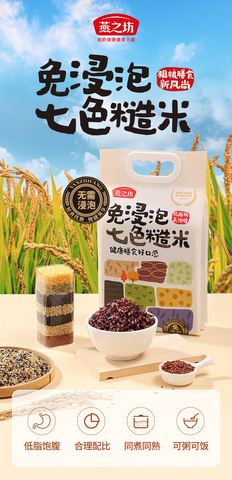 燕之坊免浸泡七色糙米4斤粗粮杂粮米饭低脂饱腹同煮同熟绿糙米紫米黑米