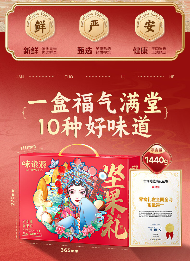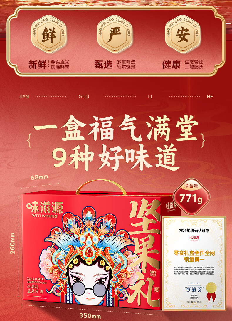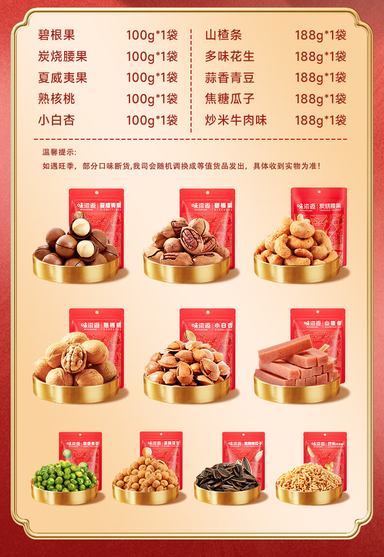 味滋源坚果礼盒节日送礼夏威夷果每日坚果炒货零食大礼包干果礼盒 1406g坚果礼盒/10件