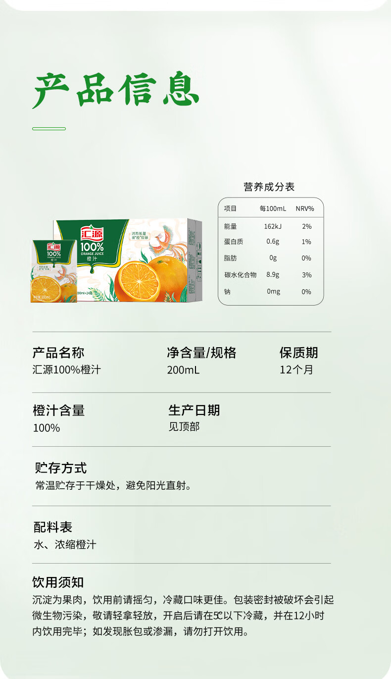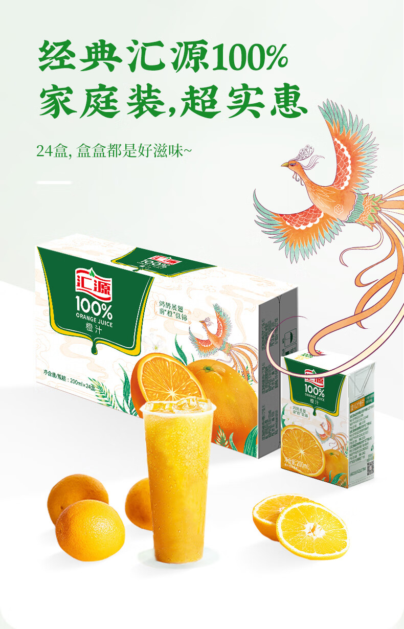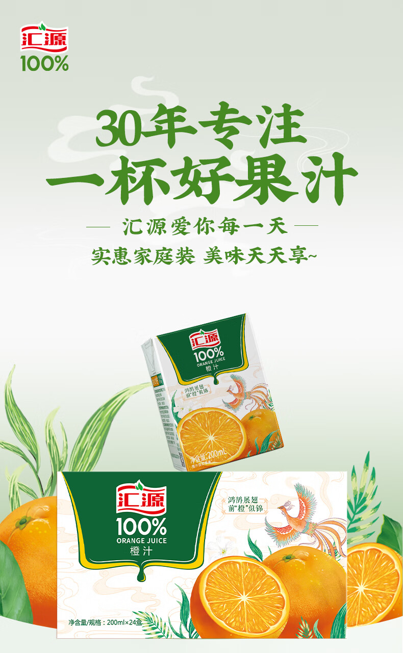 汇源100%橙汁整箱果汁健康饮料200ml*24盒囤货节日年货节送礼宴请