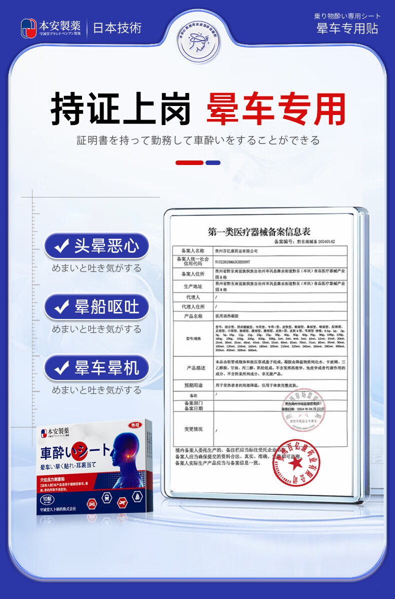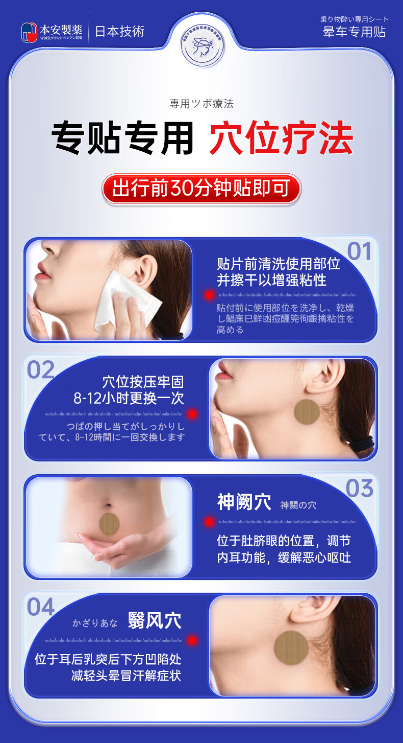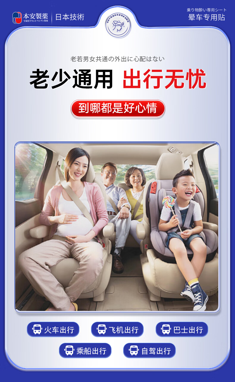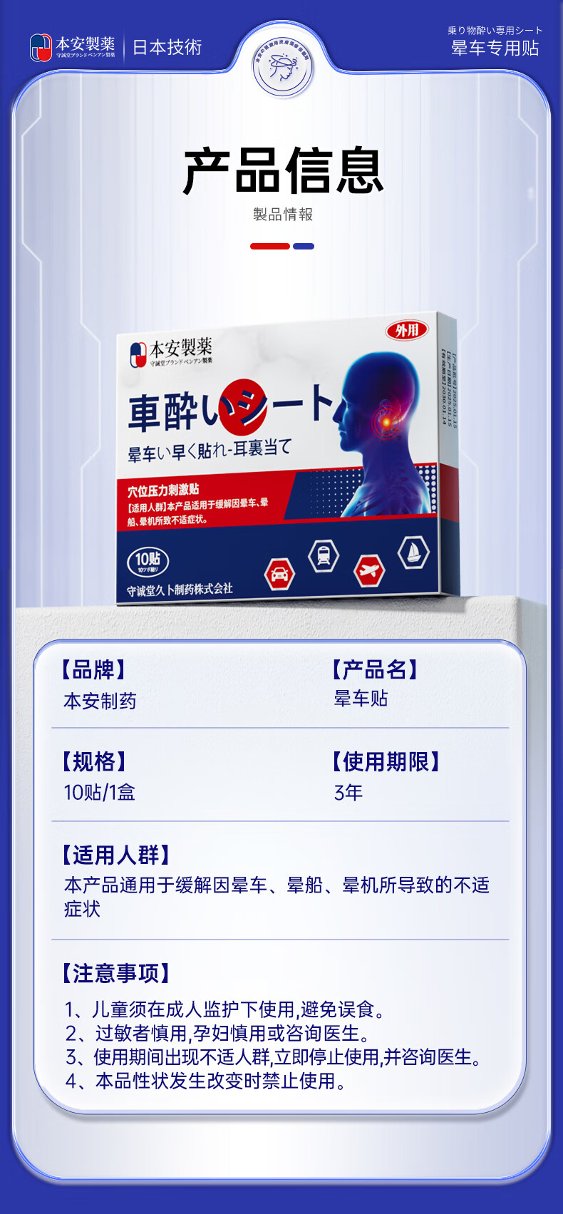 BENAN PHARMACEUTICAL晕车贴儿童老年人搭配晕车膏恶心呕吐专用重度晕车神器晕船10贴