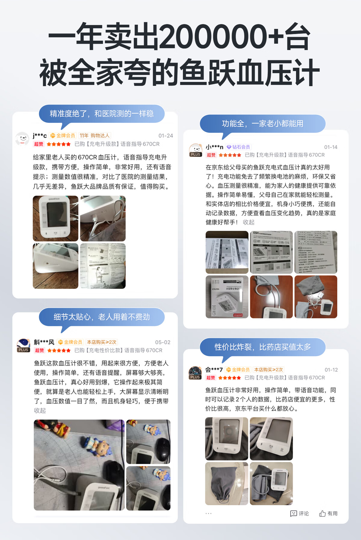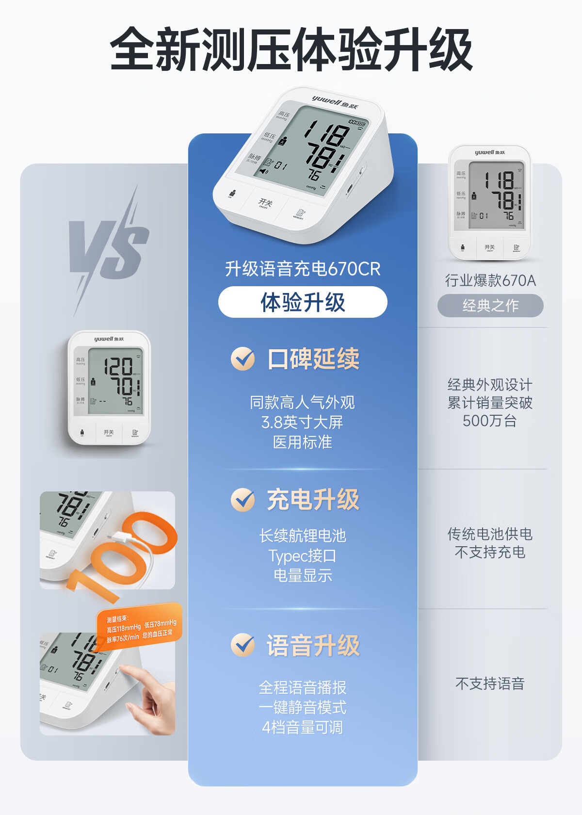 鱼跃(Yuwell)充电语音电子血压计670CR家用血压仪医用高精准血压测量年货老人