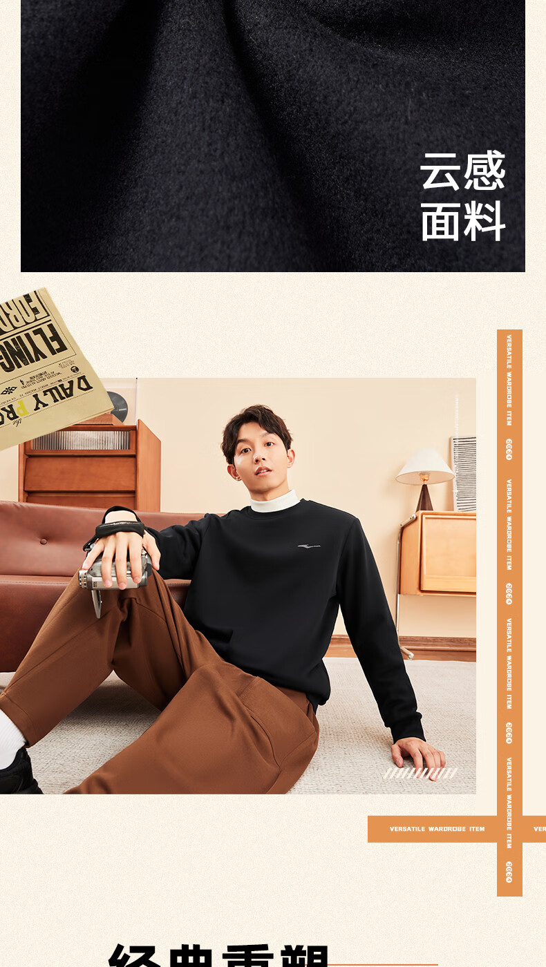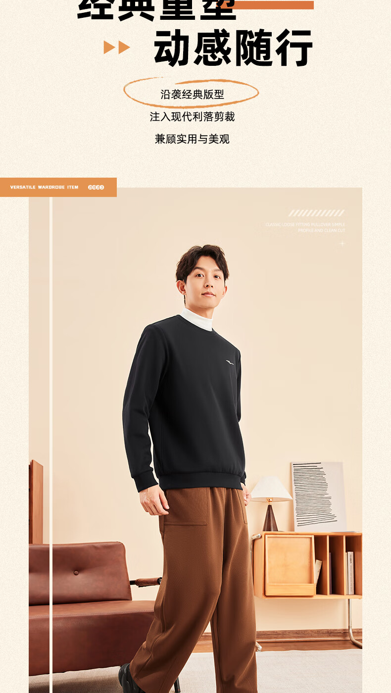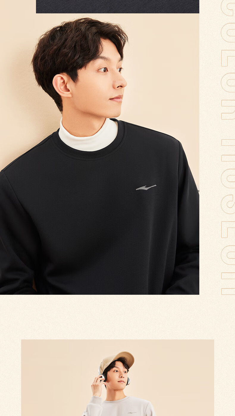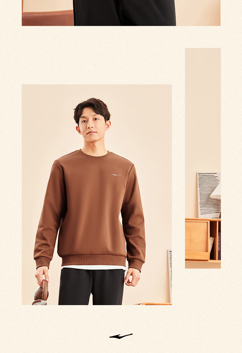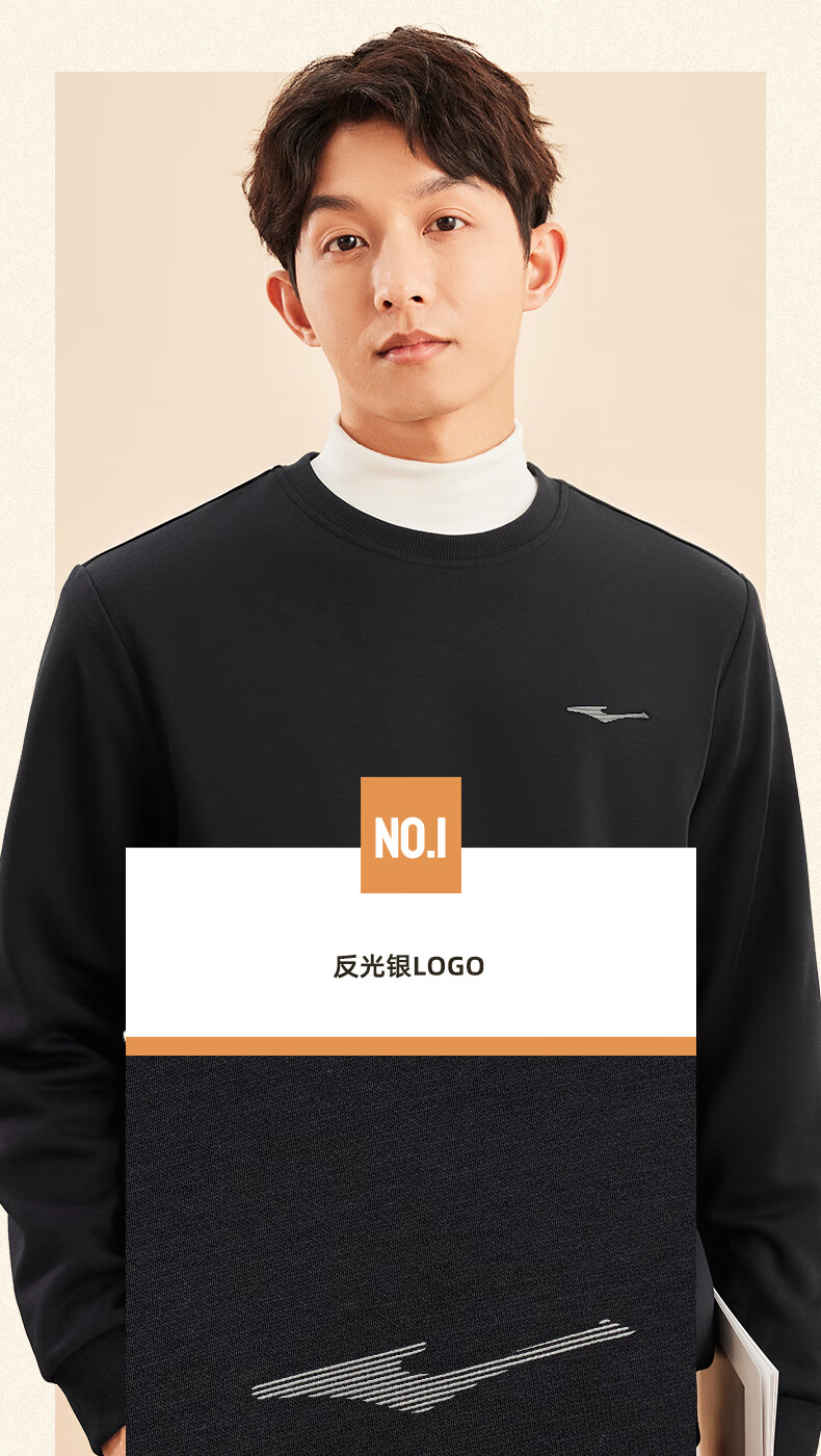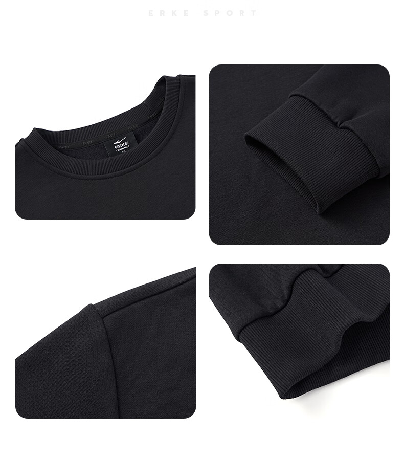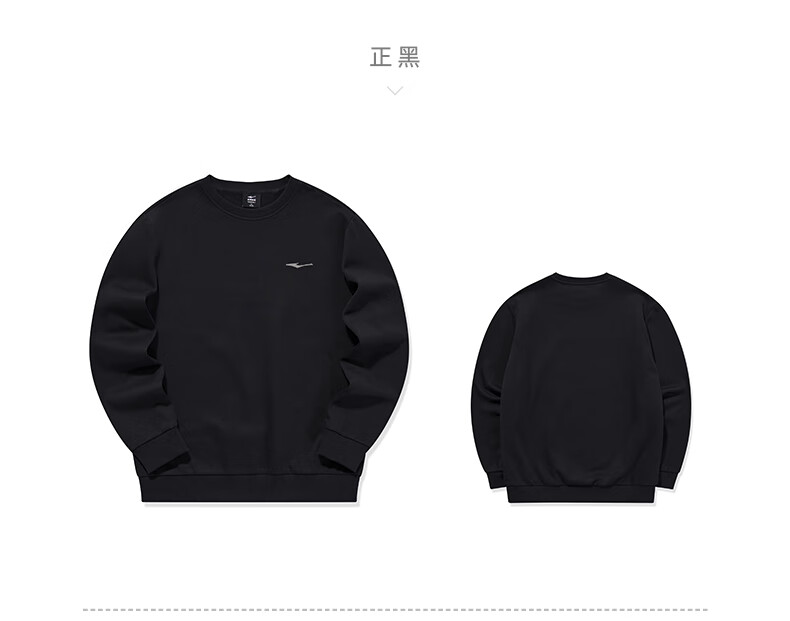 鸿星尔克舒暖绒|卫衣男秋冬新款加厚保暖休闲长袖套头衫运动服上衣男装 正黑 XL