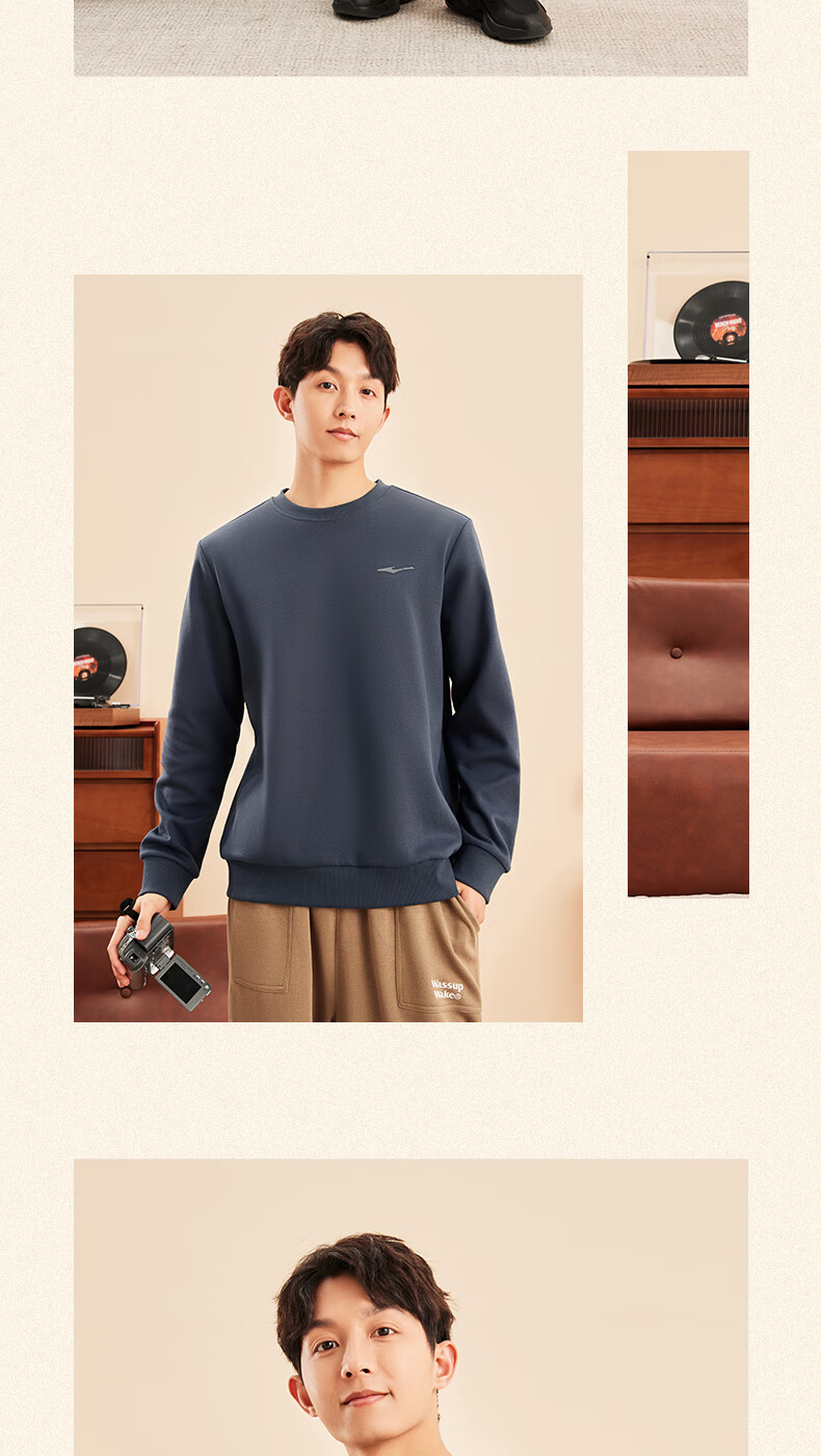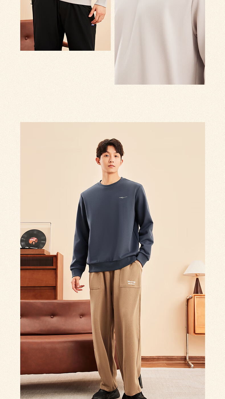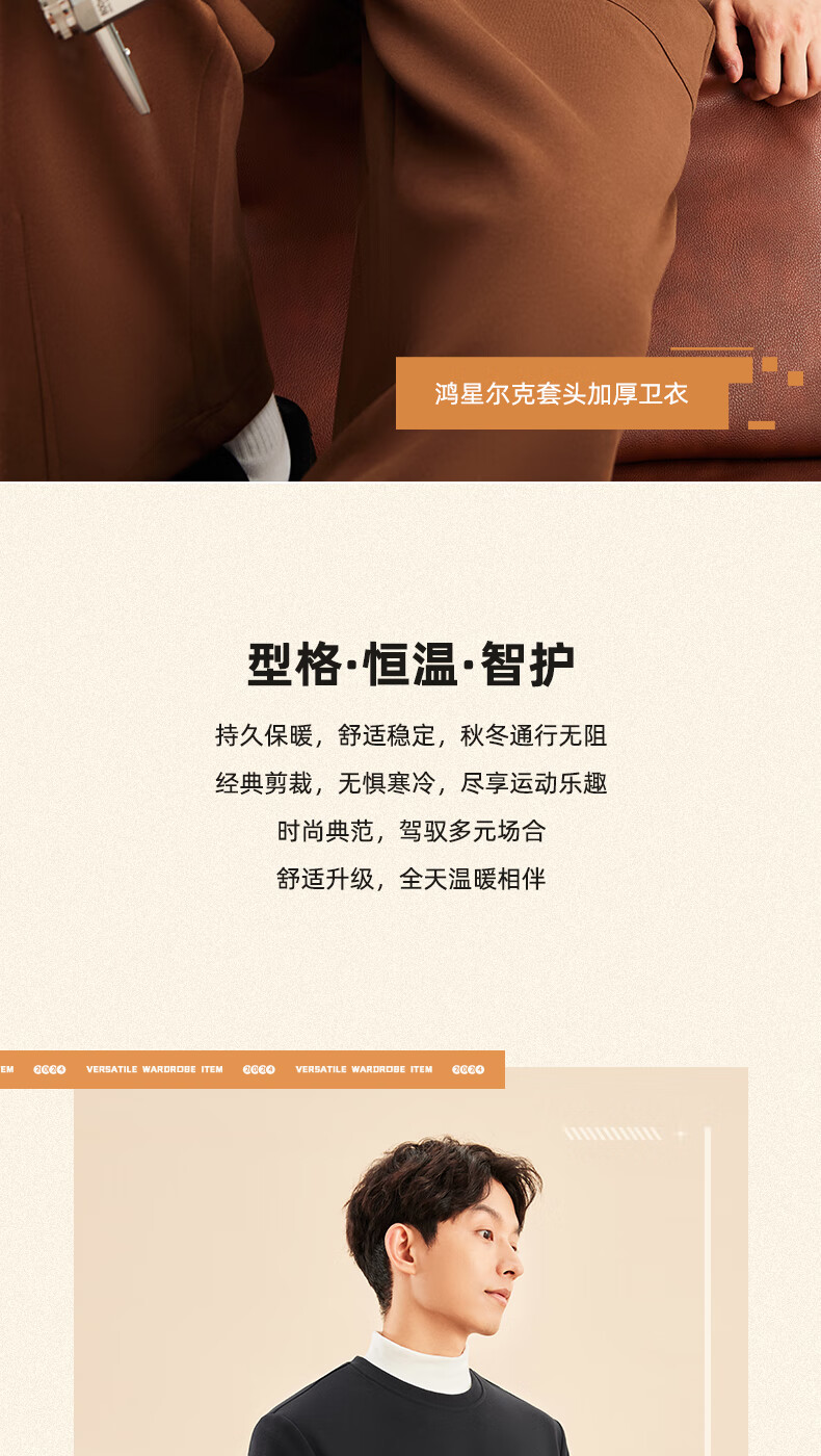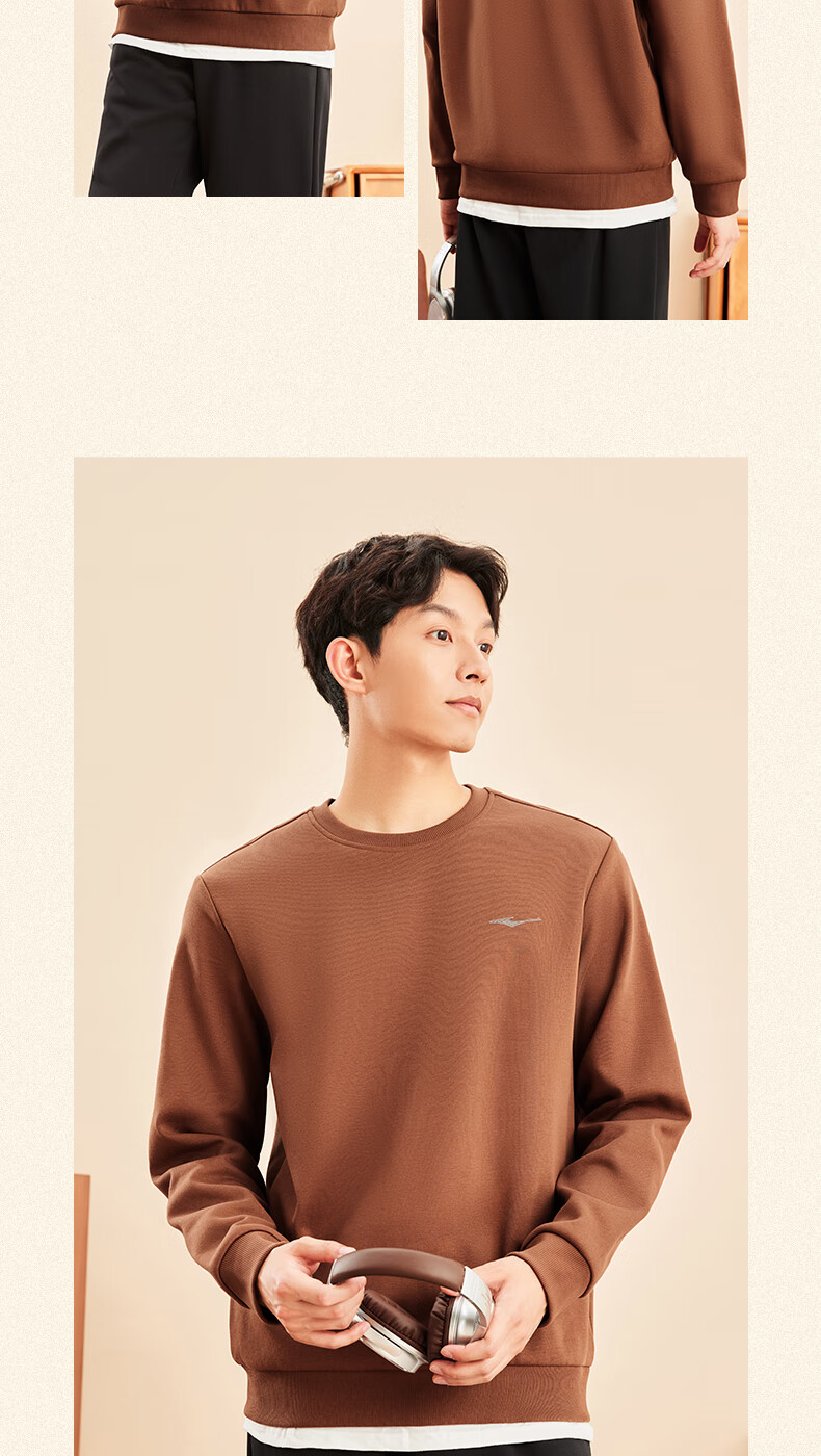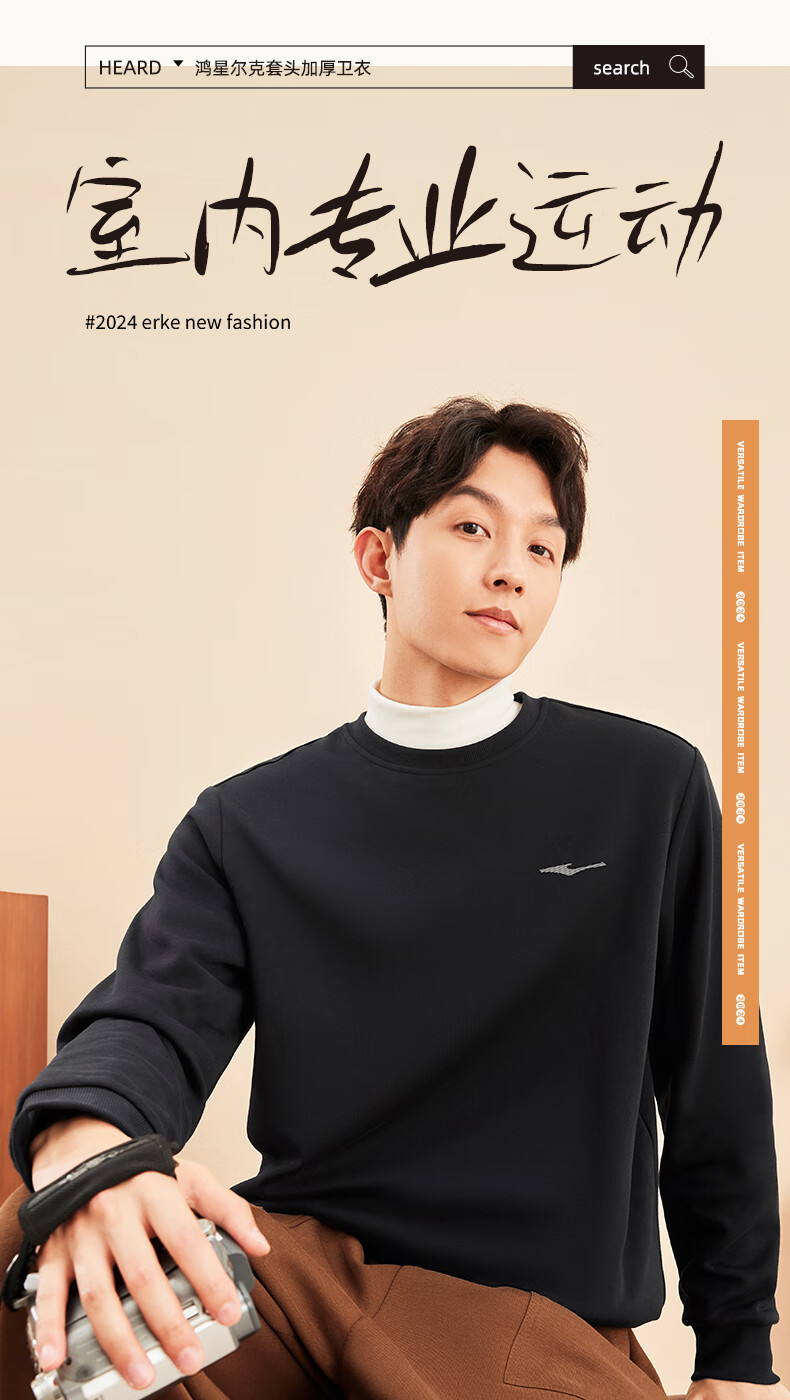 鸿星尔克舒暖绒|卫衣男秋冬新款加厚保暖休闲长袖套头衫运动服上衣男装 正黑 XL