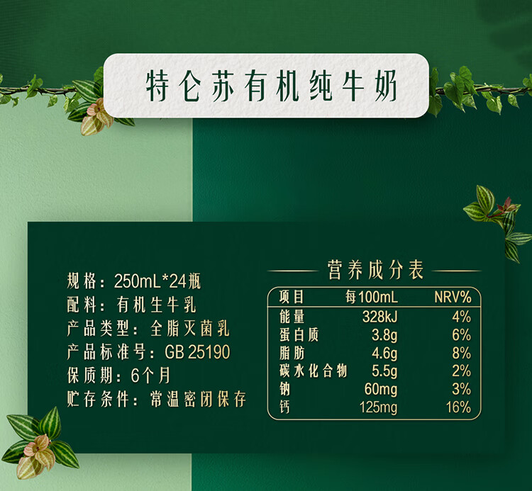蒙牛特仑苏有机纯牛奶梦幻盖250ml*24盒整箱 高钙3.8g蛋白质10-11月产 1箱