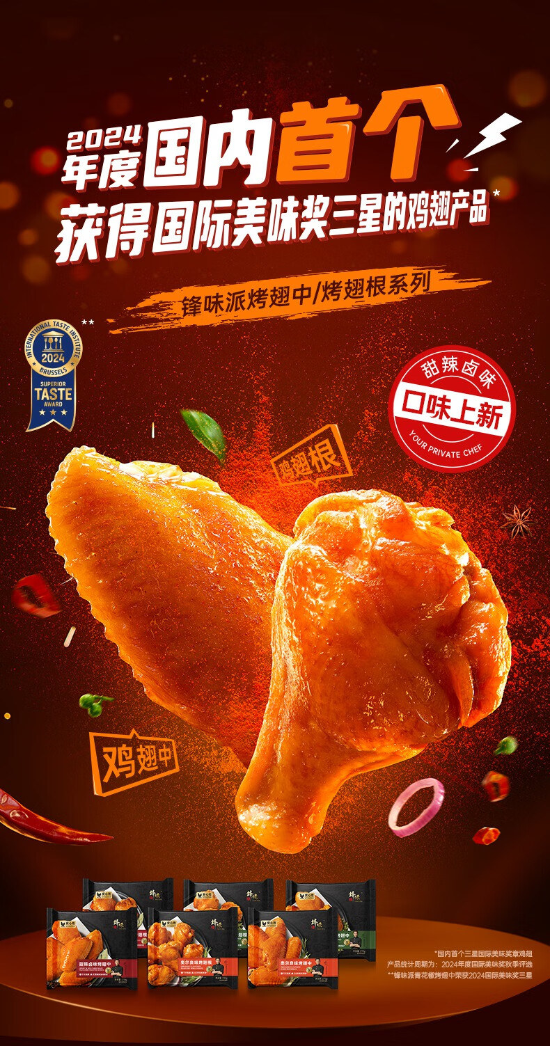 锋味派奥尔良烤鸡翅中翅 270g /袋 冷冻半成品烤翅嘟嘟翅空气炸锅食材