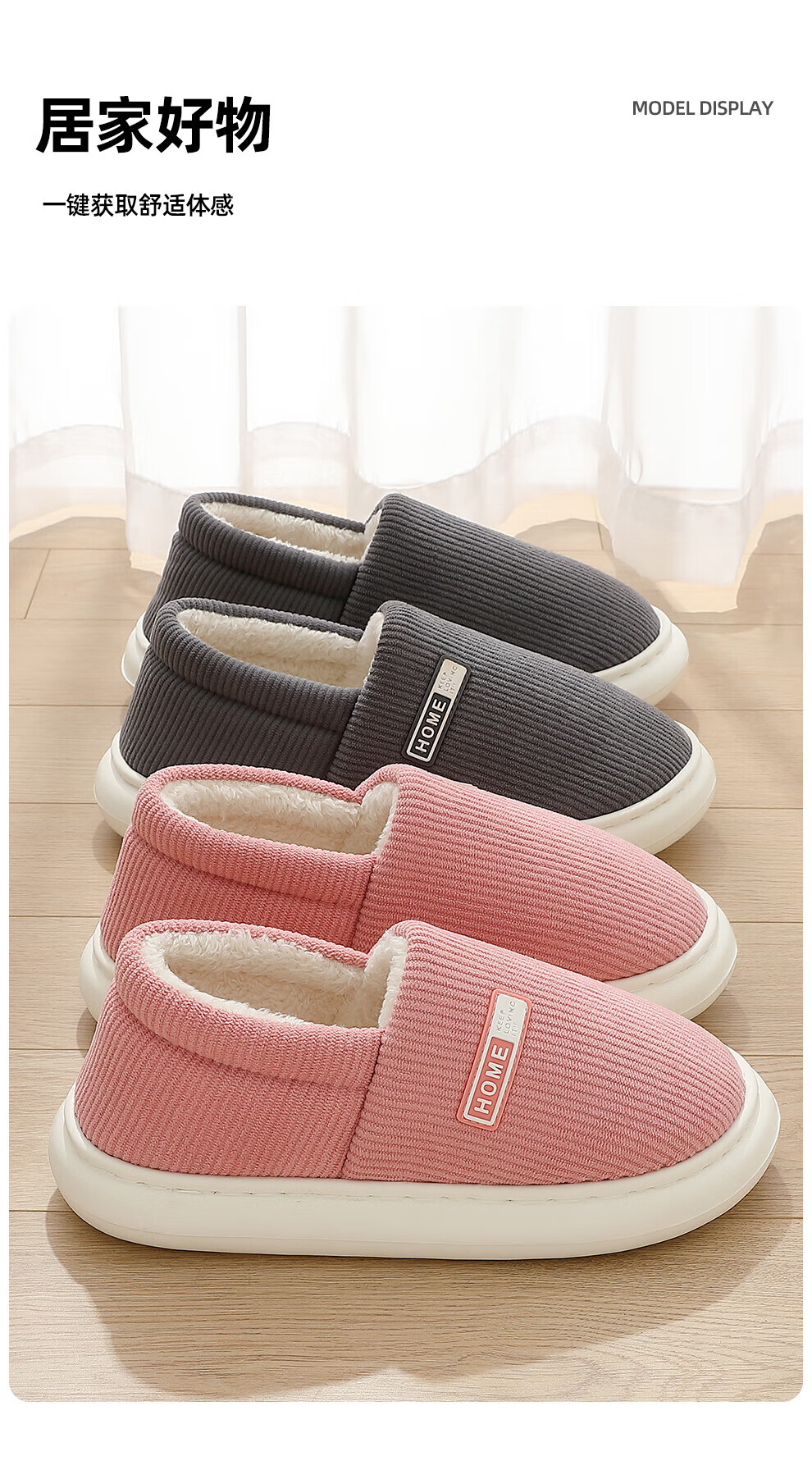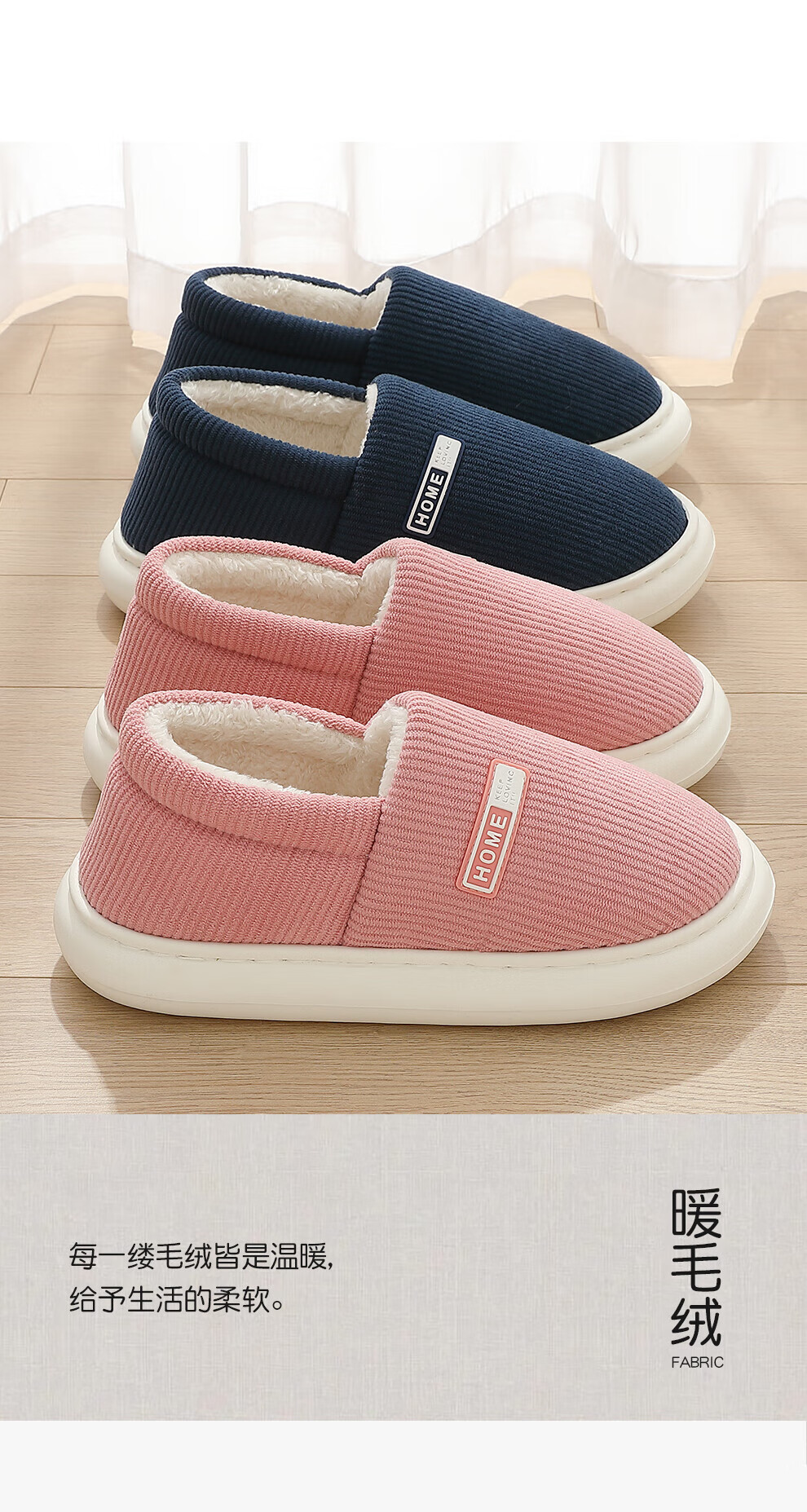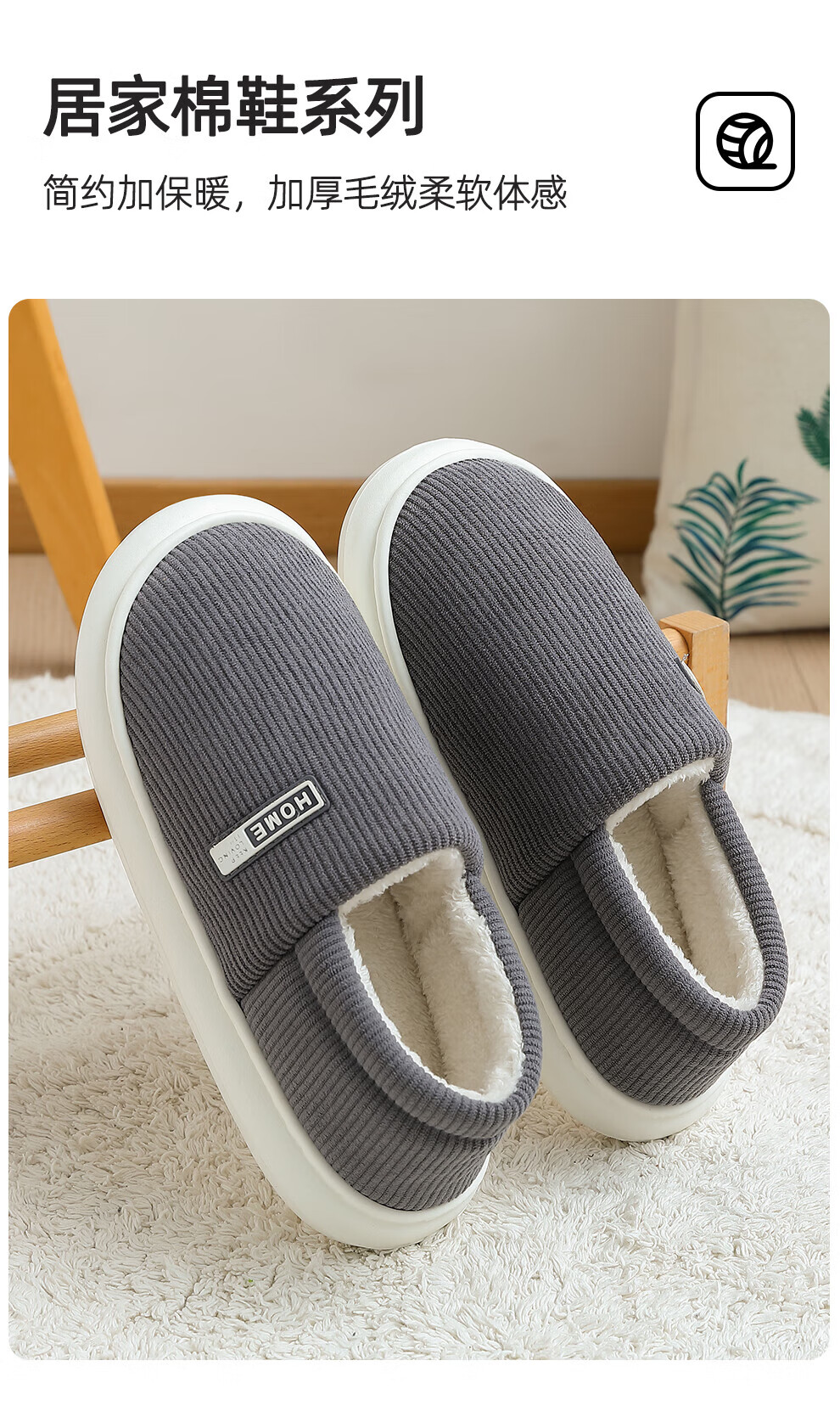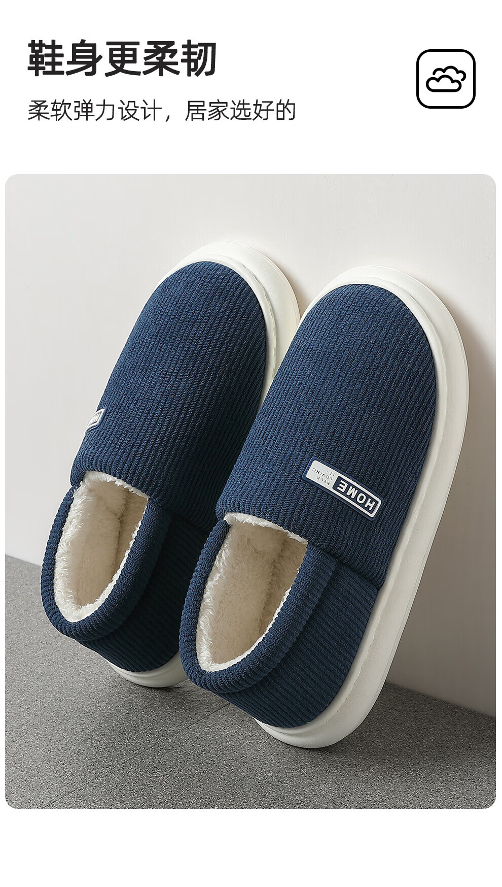 FZT包跟保暖棉拖鞋女士秋冬季2025新款居家加厚毛绒简约舒适感棉鞋男 藏青 36-37 正码