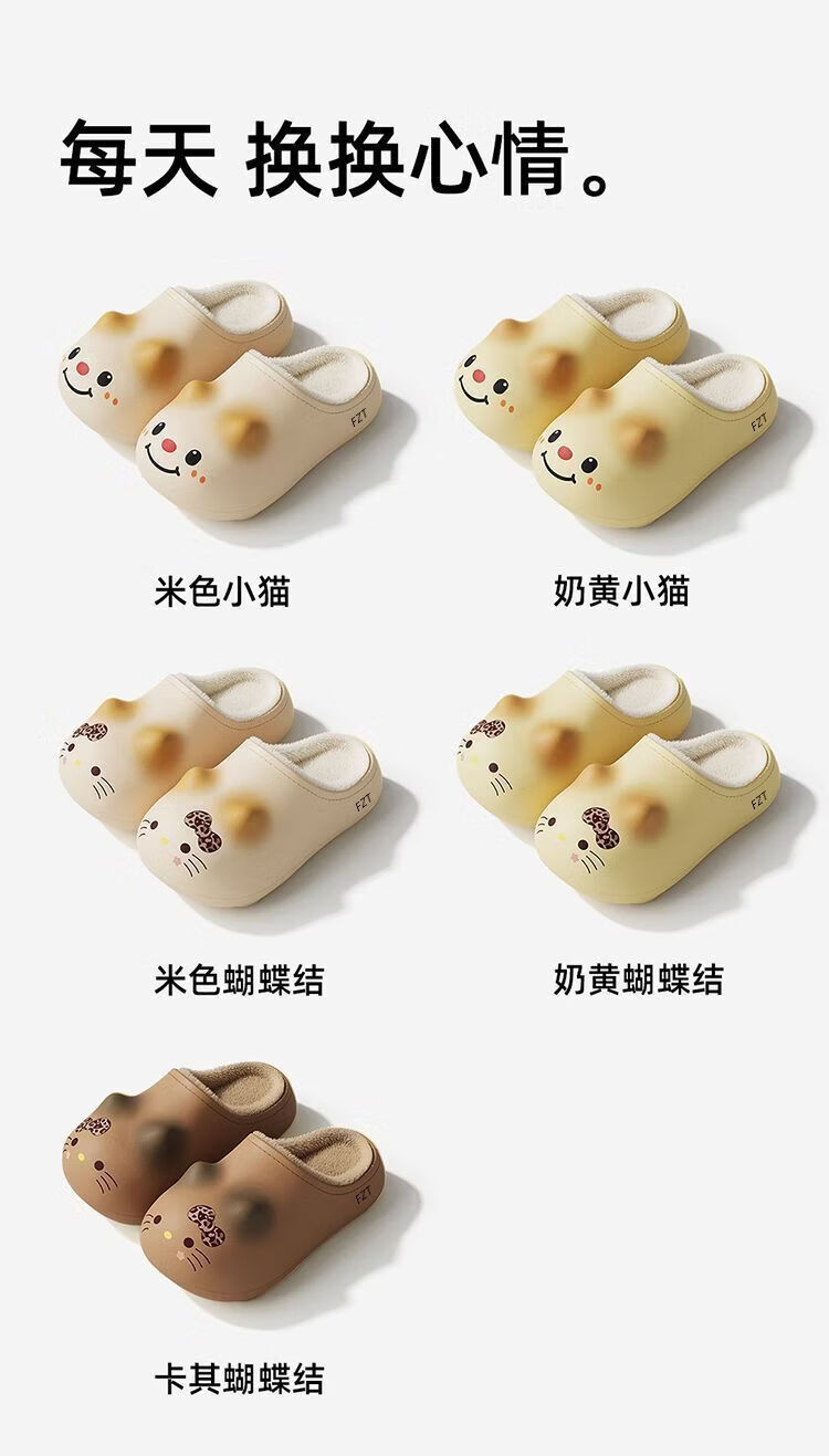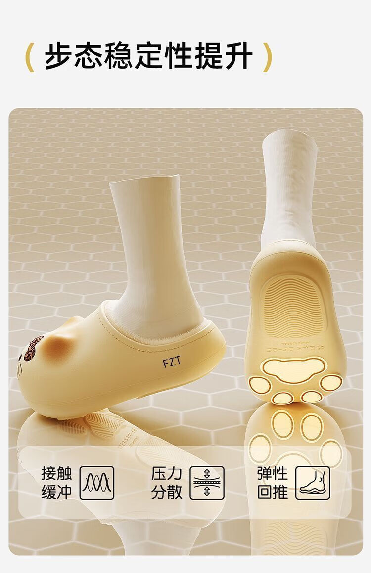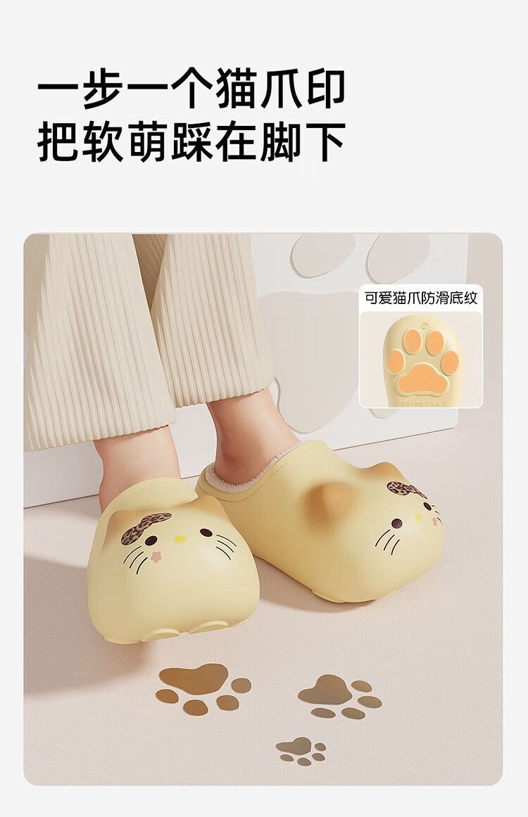 FZT可爱猫爪棉拖鞋女款2025冬季加绒保暖防滑室内居家毛绒绒棉拖鞋男 白色豹纹 36-37 标准码【内长225mm】