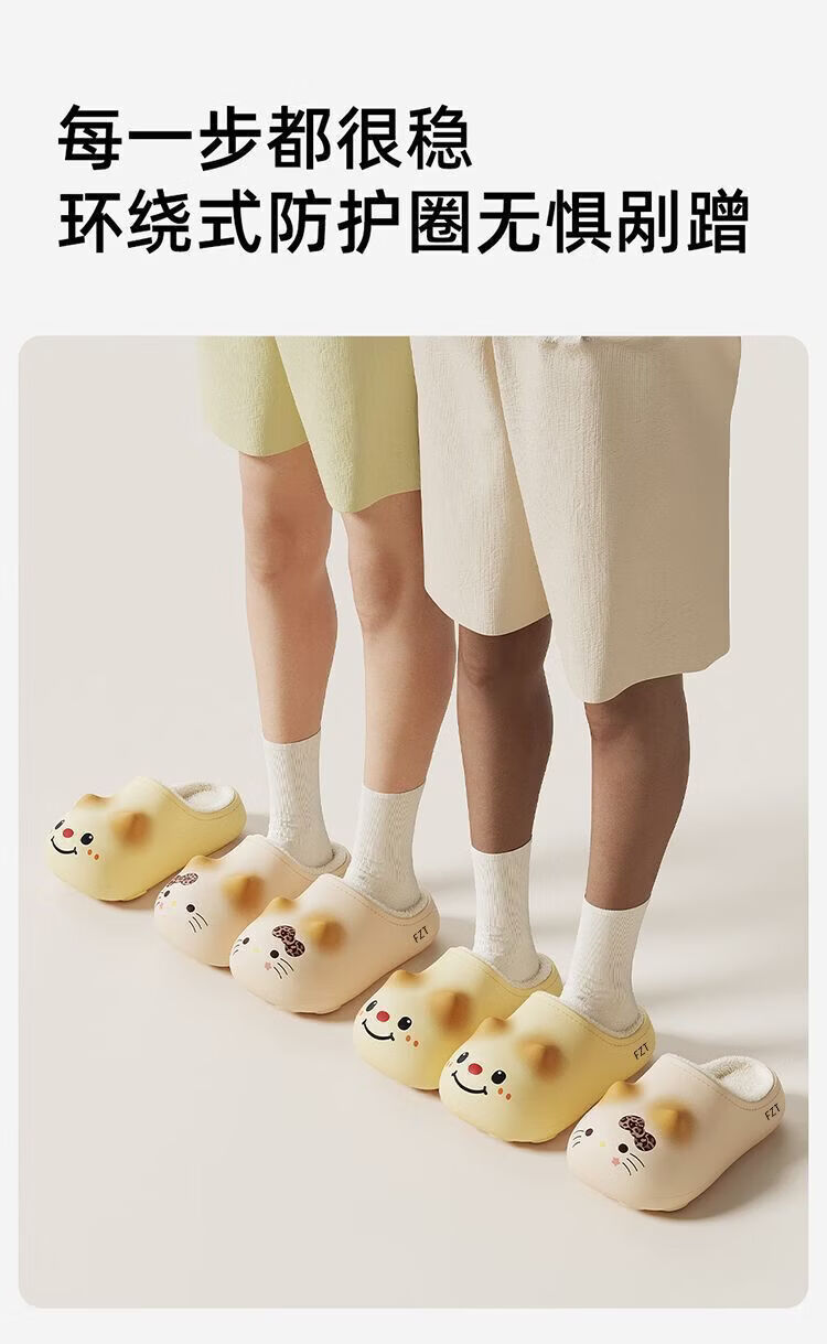 FZT禁音棉拖鞋女士2025秋冬季新款室内家居防滑加绒保暖地板棉拖鞋男 白色 36-37 标准码