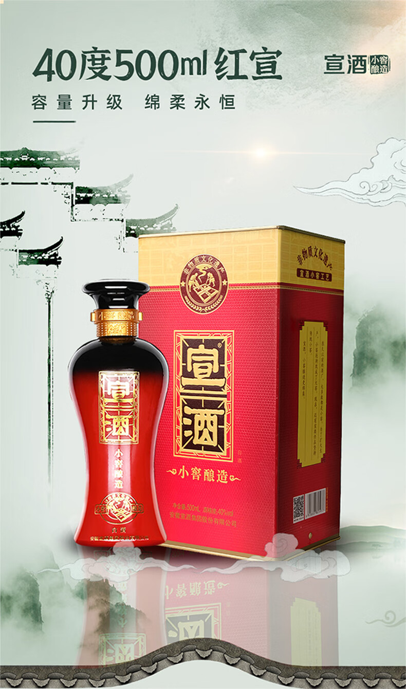 宣酒 红宣 浓香型白酒 40度 500ml*4瓶 整箱装 小窖酿造 年货节送礼