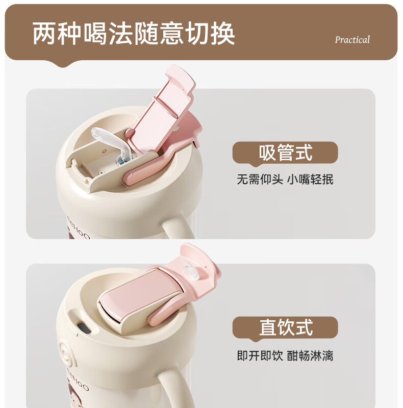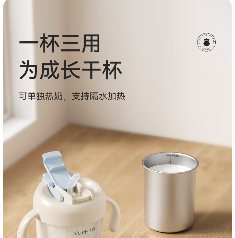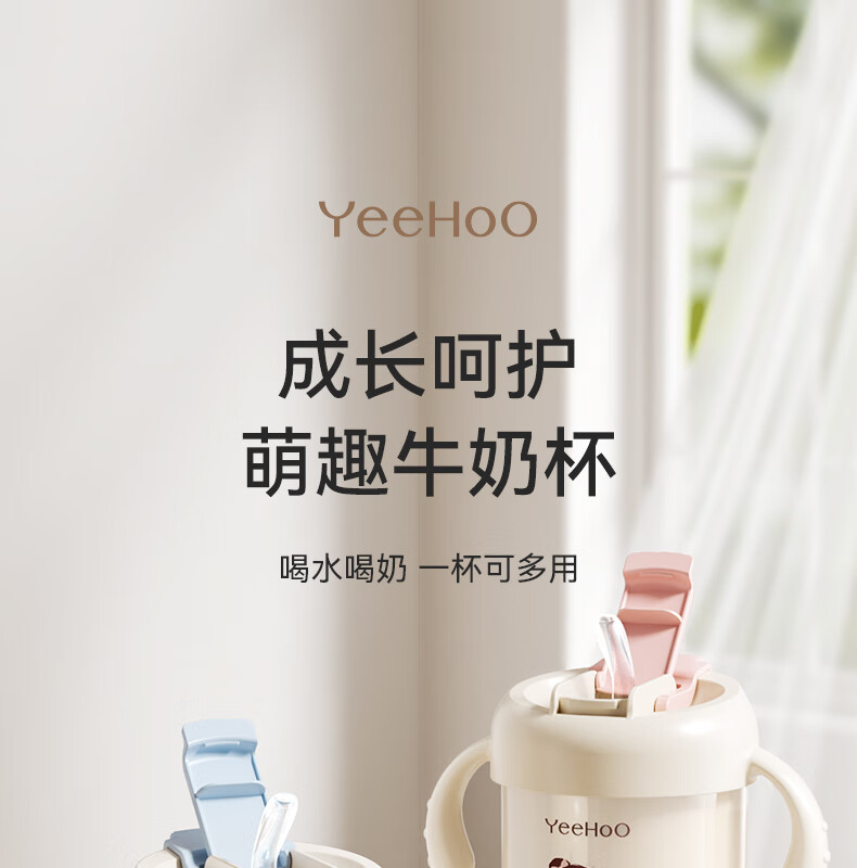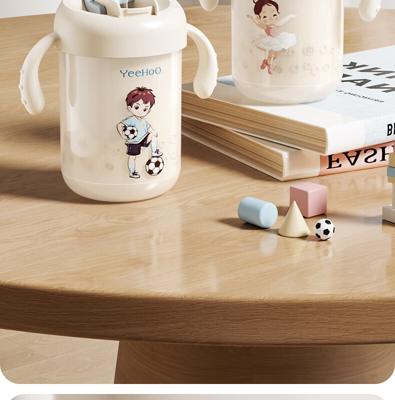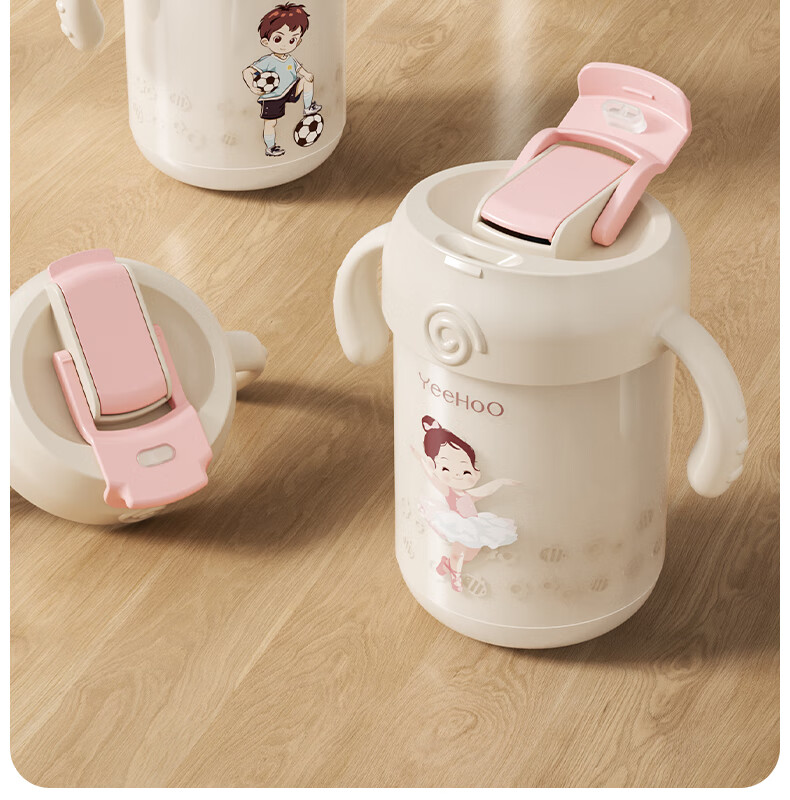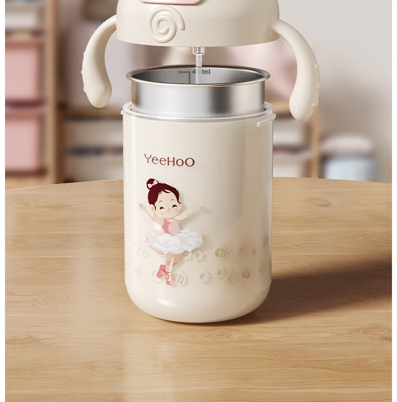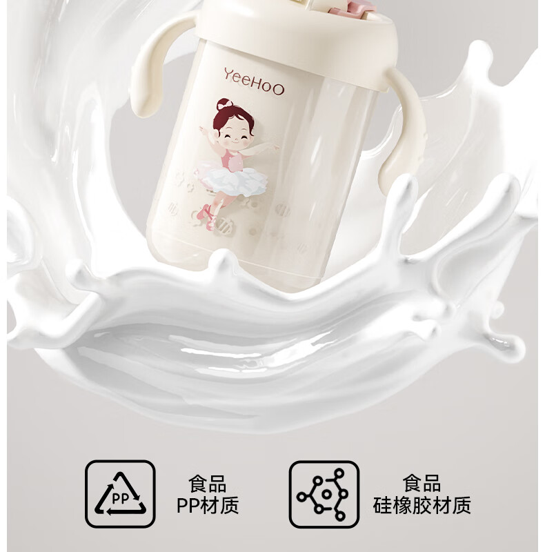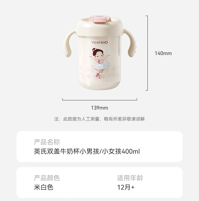 英氏(YEEHOO)儿童水杯牛奶杯双盖吸管杯幼儿园学饮水杯大容量夏天牛奶杯 牛奶杯-芭蕾公主
