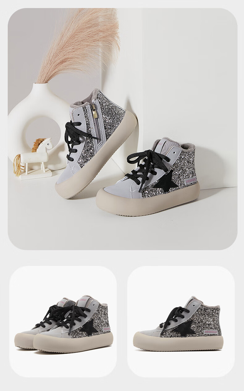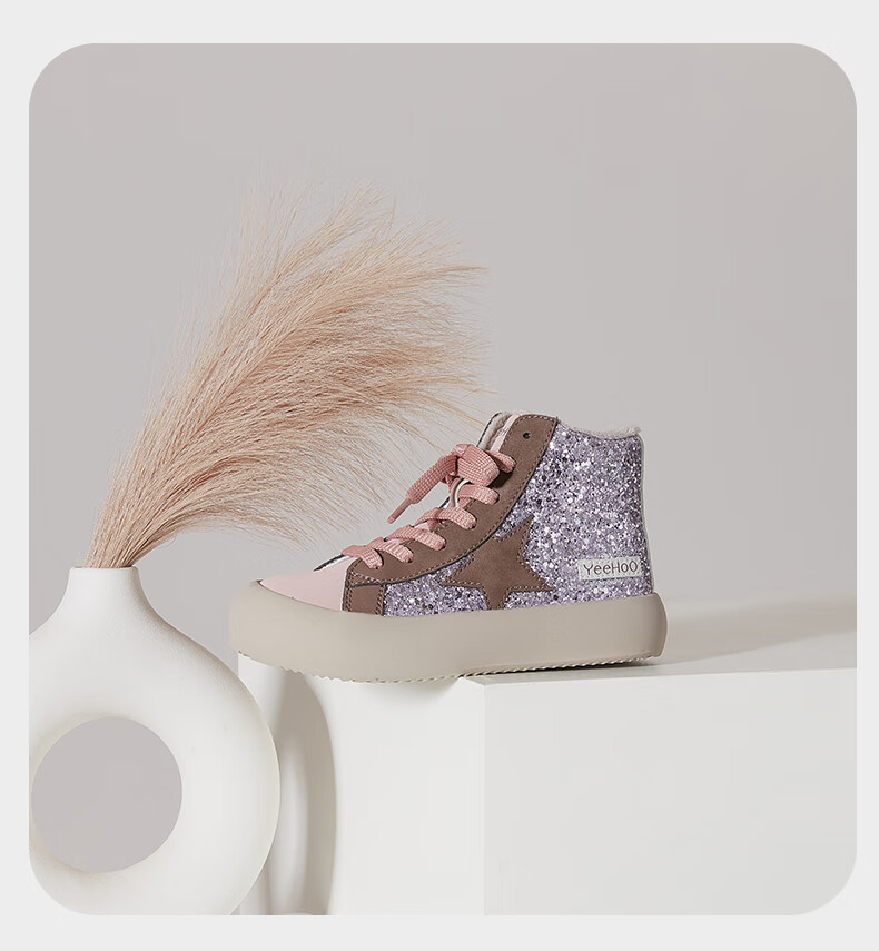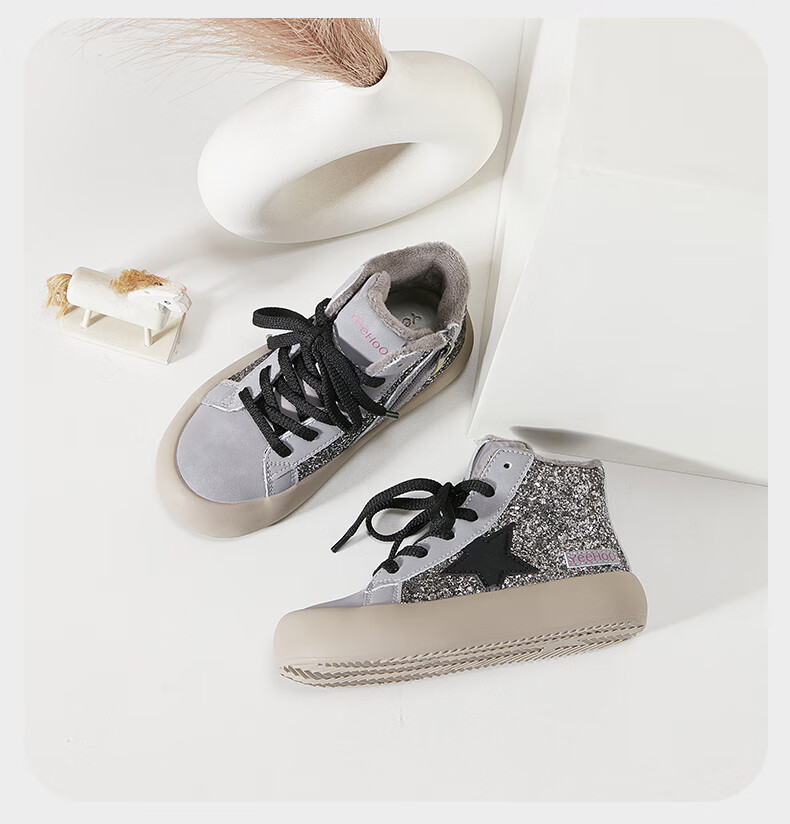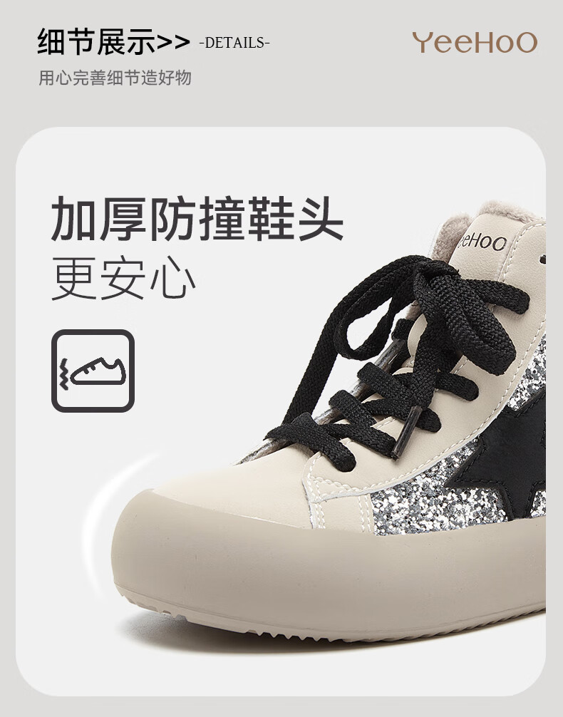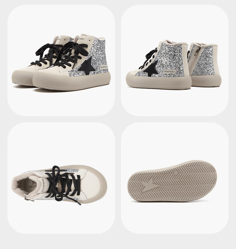 英氏(YEEHOO)童鞋儿童秋冬季轻便加绒保暖软底帆布鞋中大童运动鞋子板鞋男女童 银色 33