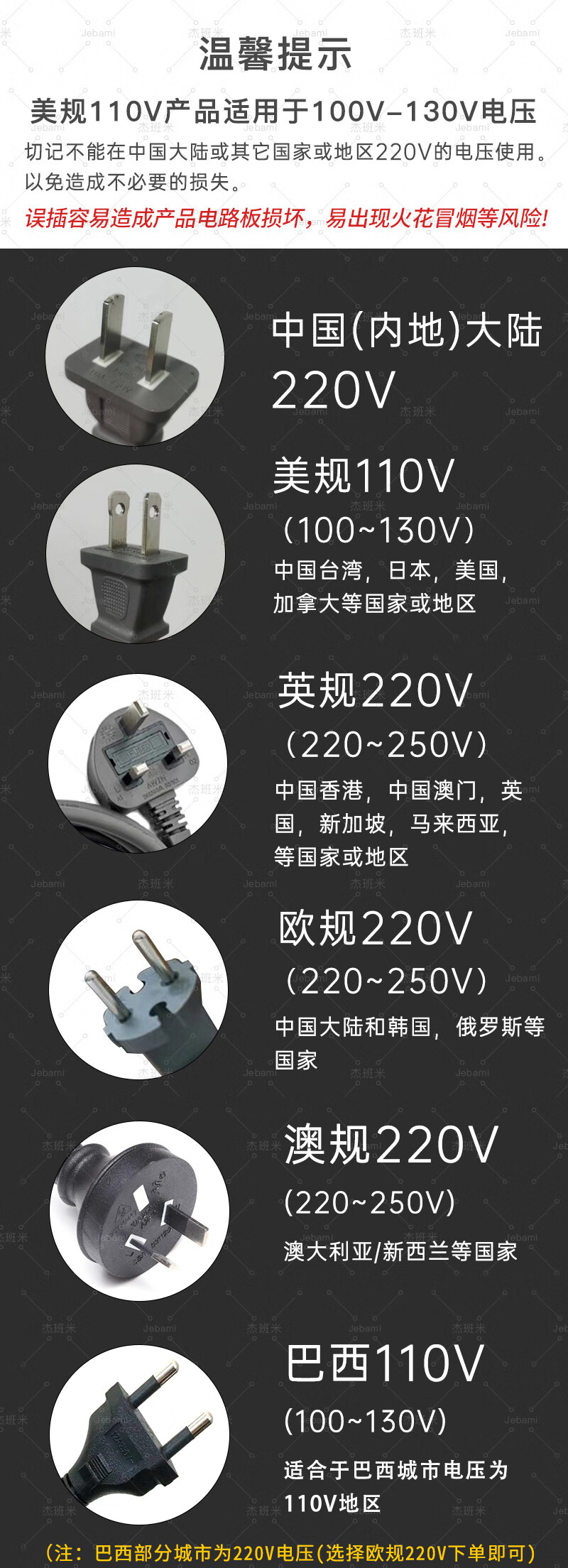 杰班米香港英规220V吹风机负离子护发家用静音英国三脚插头风筒出国专用 美规110V-玫红色五风嘴-国内禁用