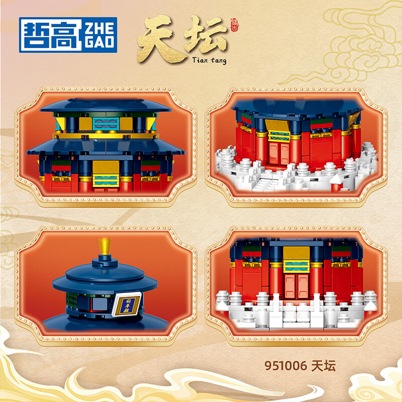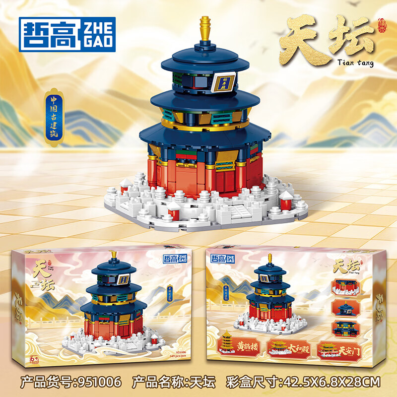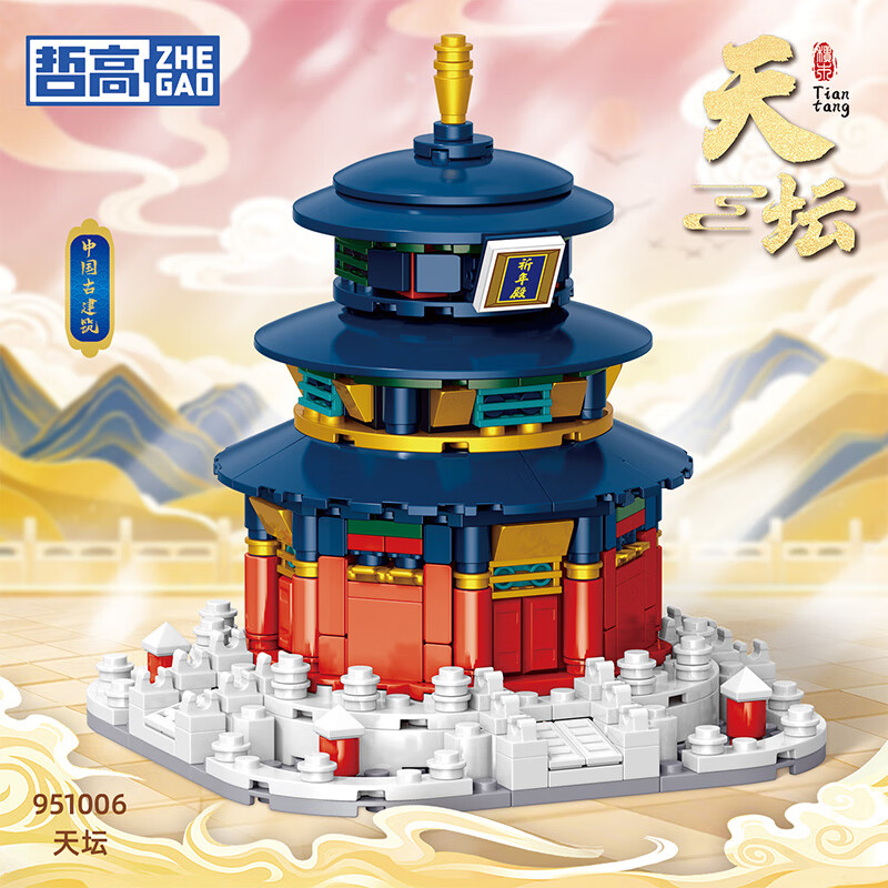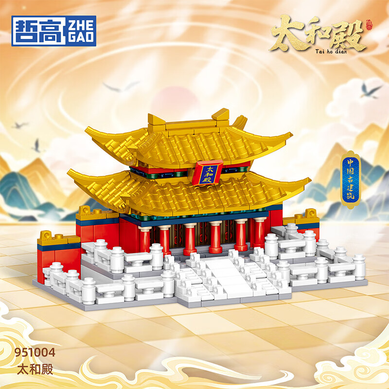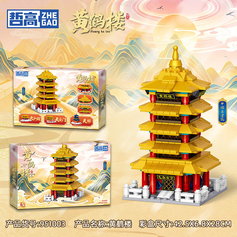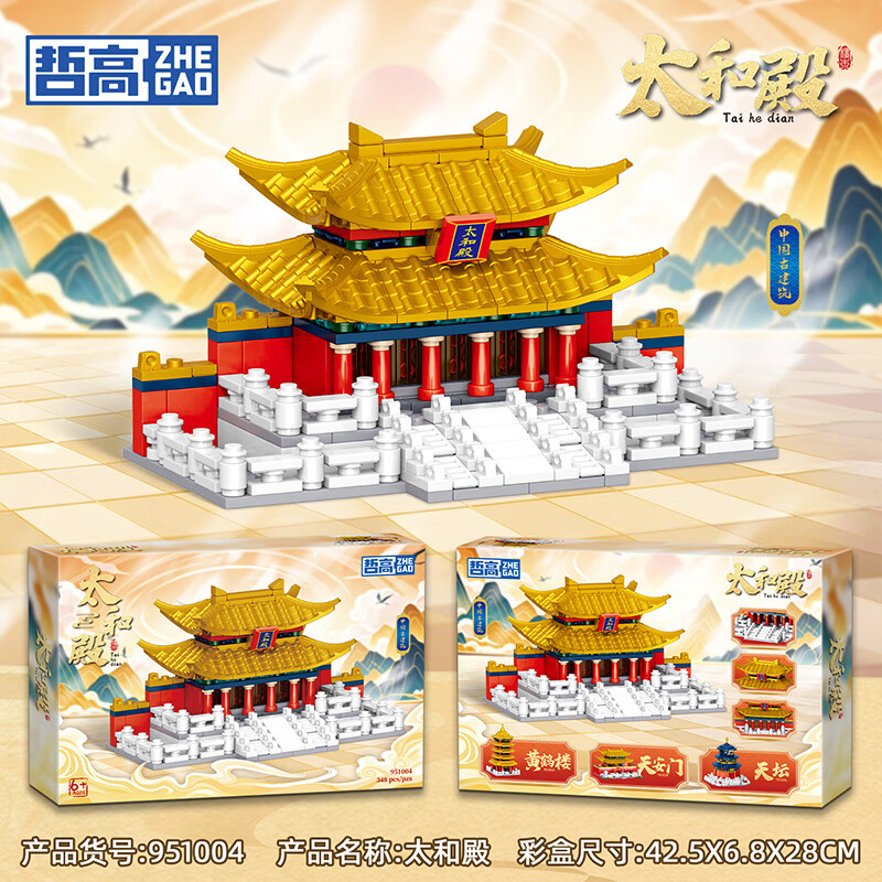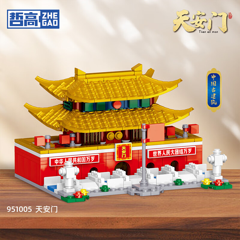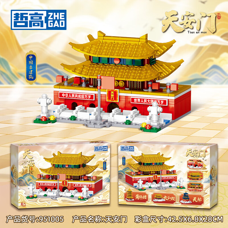 哲高古建筑黄鹤楼天安门太和殿天坛中华著名建筑古风拼装积木模型 【天安i门礼盒装350颗粒】951005