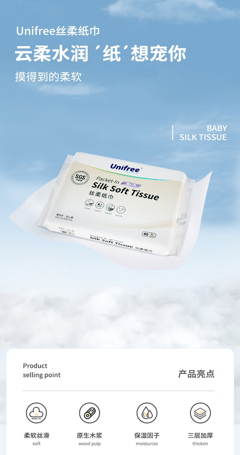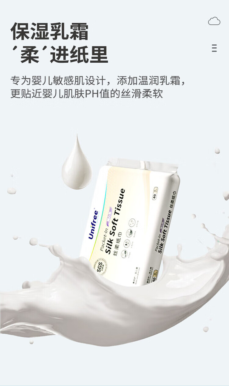 unifree婴儿乳霜纸云柔巾云柔纸巾三层新生儿婴儿敏感肌可用保湿抽纸 【家庭款】乳霜纸 3层 40抽*35包