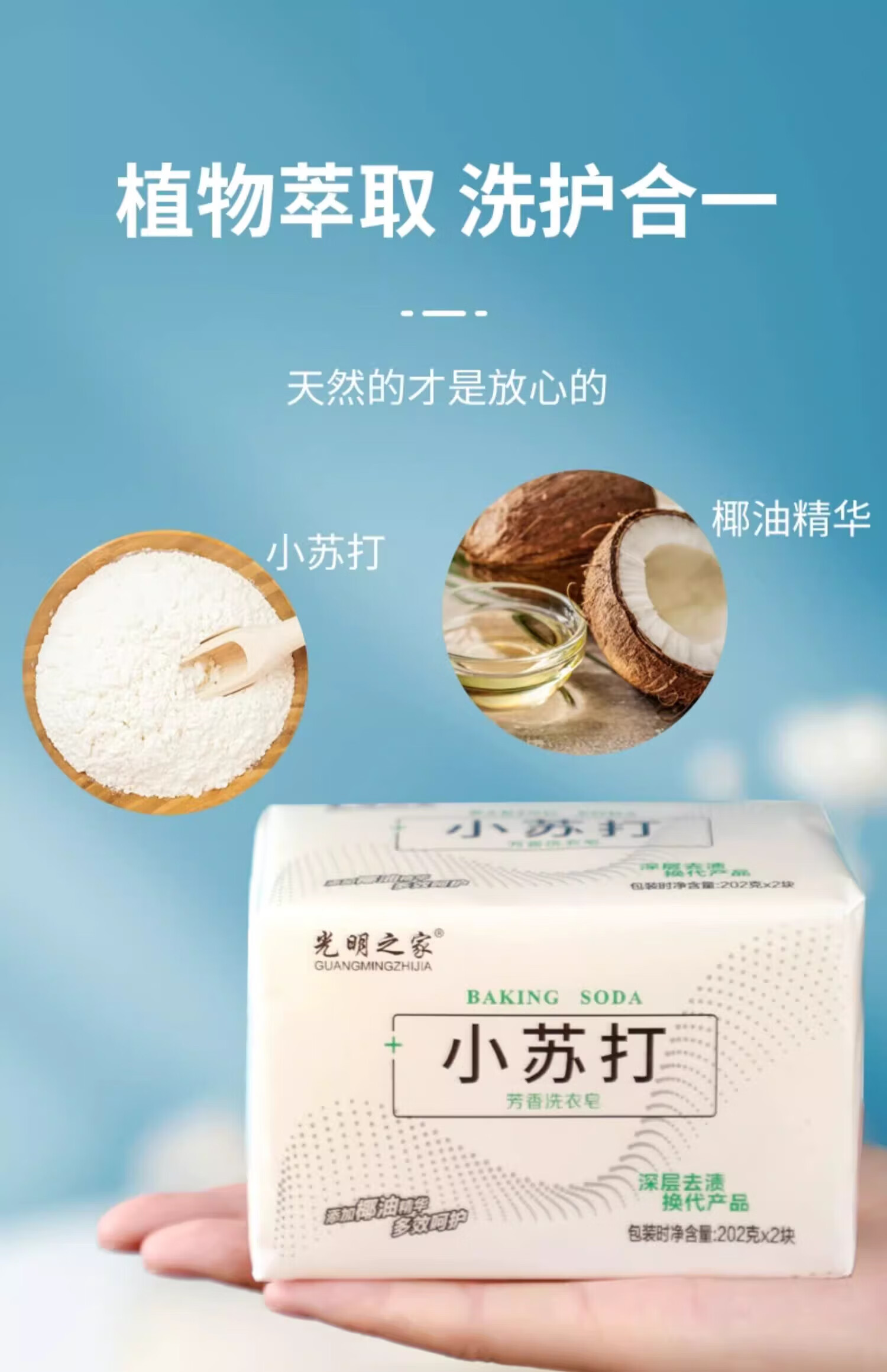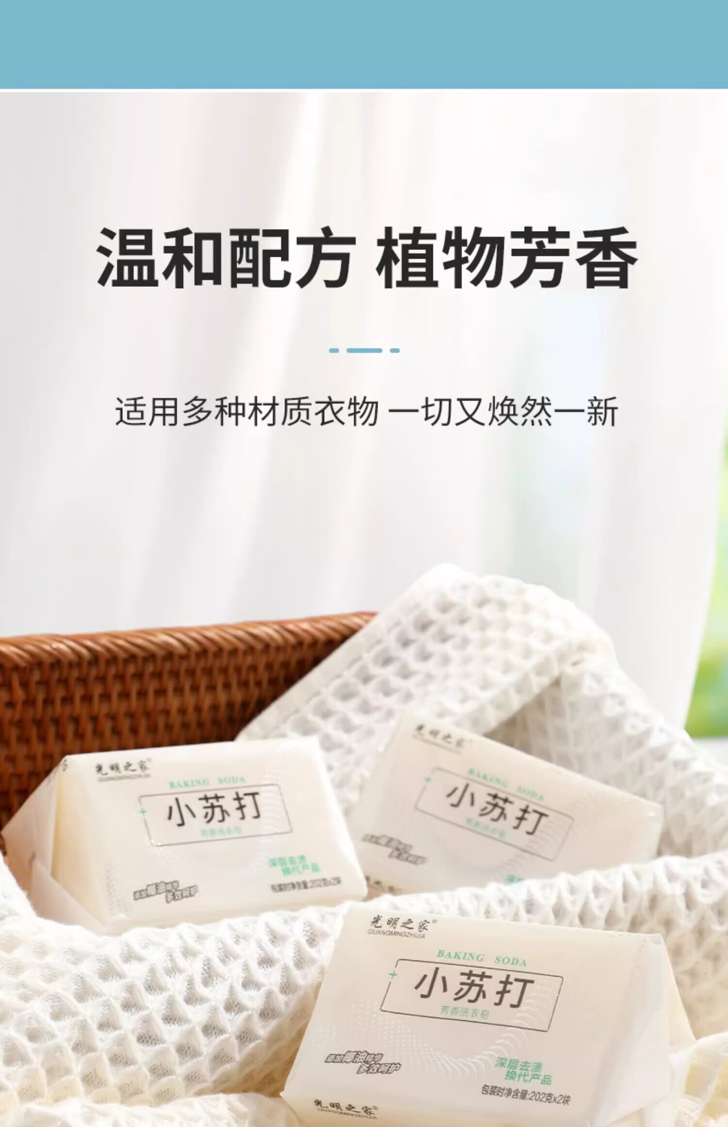 凯桑【甄选好物】小苏打洗衣皂去污洗衣服内衣内裤专用透明儿童肥皂家 202g 4块