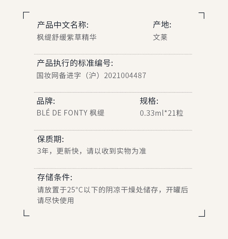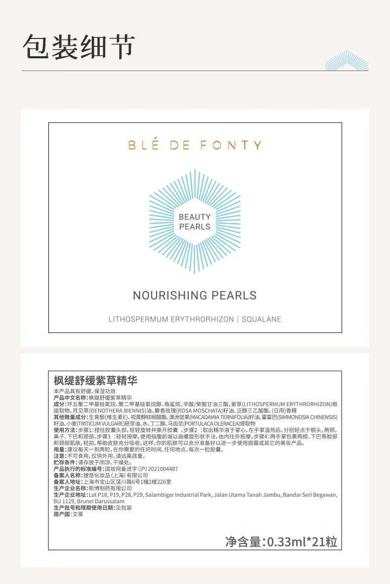 枫缇(Ble de Fonty)紫草精华 保湿水润舒缓屏障角鲨烷 面部精华油胶囊 21粒/盒 枫缇舒缓紫草精华