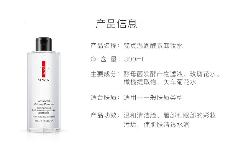 梵贞温润酵素卸妆水深层清洁补水保湿细腻肌肤卸妆液化妆品卸妆水 300ml