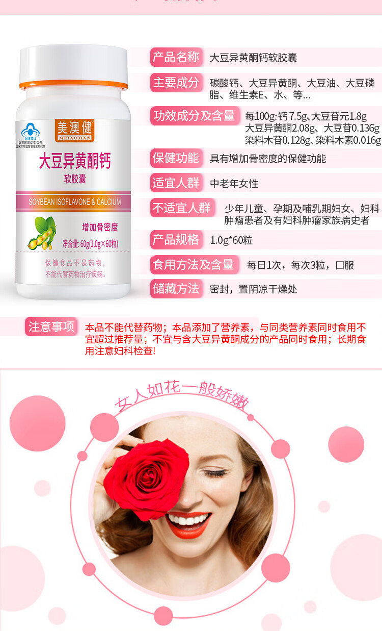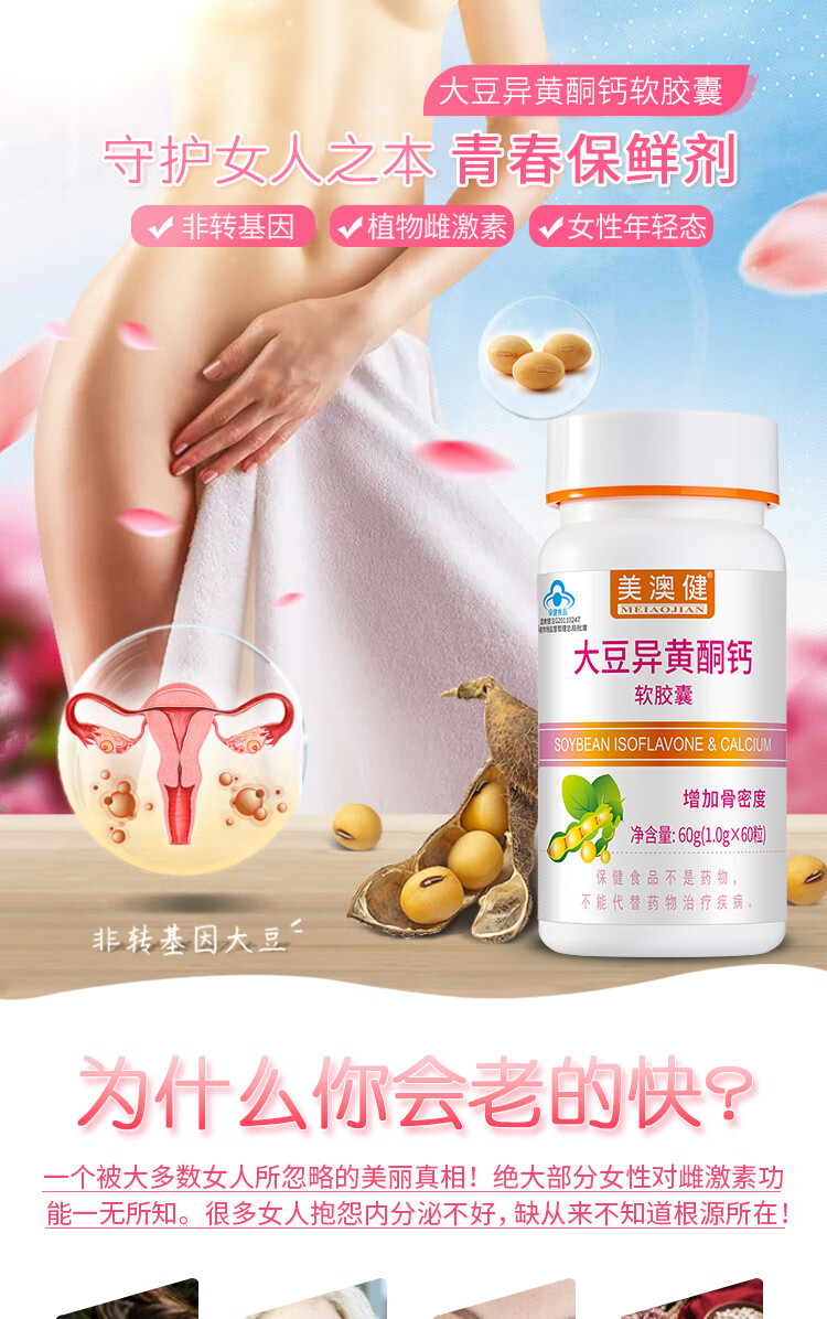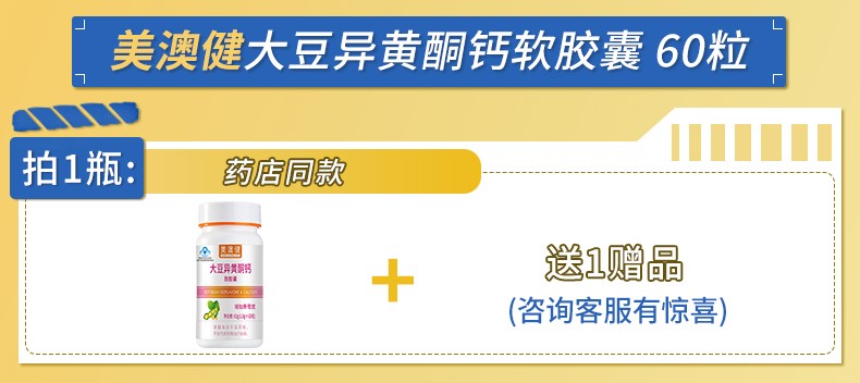 美澳健(MEIAOJIAN)大豆异黄酮钙软胶囊60粒 女性中老年补充帮助缓解更年期 药店同款 专柜大豆异黄酮钙胶囊 60粒*1瓶 送1礼
