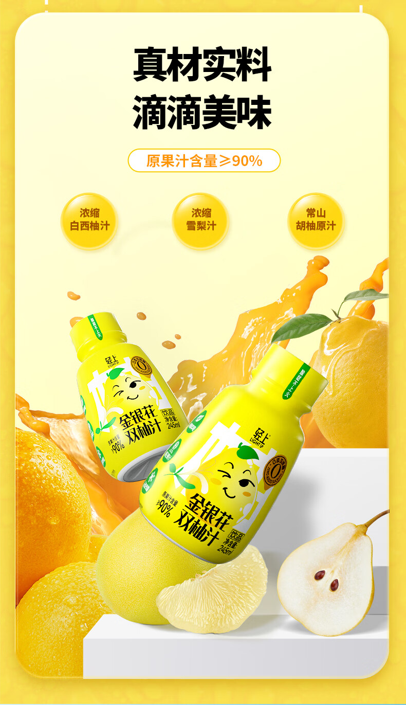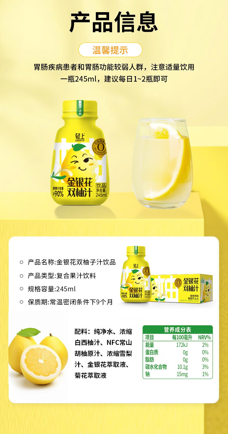 轻上金银花双柚汁儿童成人宝宝营养健康饮料维C果汁年货植物饮品 0糖生椰1L*4瓶