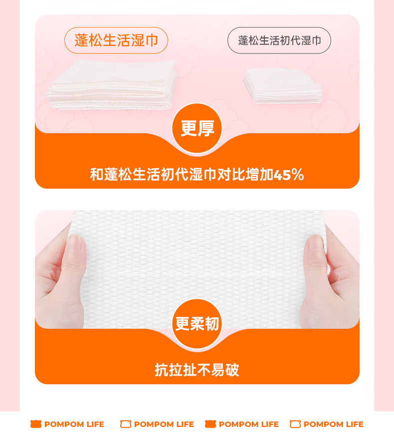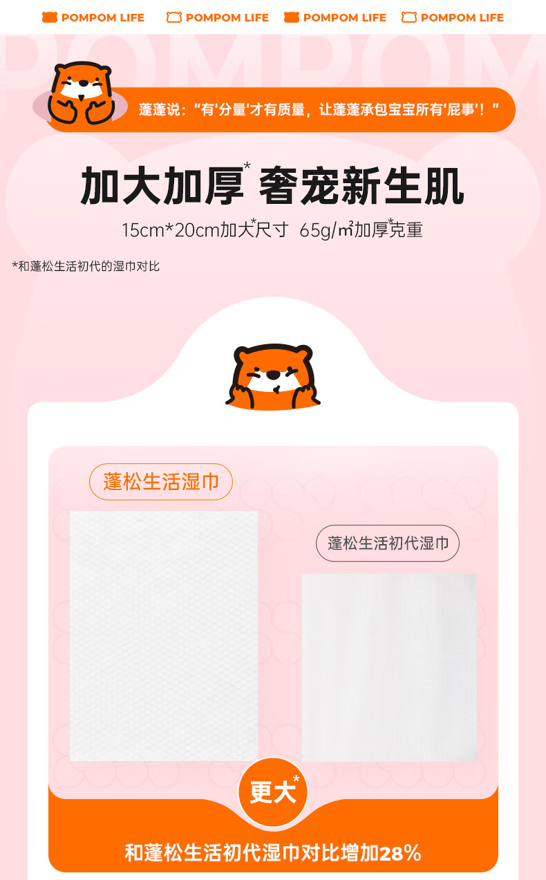 蓬松生活EDI纯水一次性湿巾 大包珍珠纹大尺寸 擦手护理产妇湿巾 蓝色经典款 80抽10包